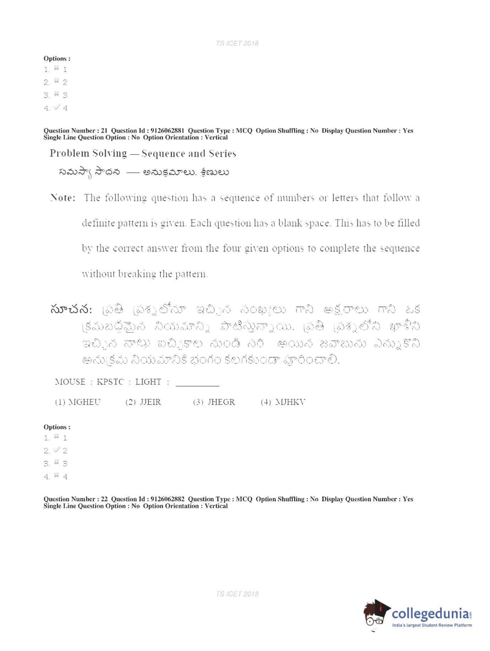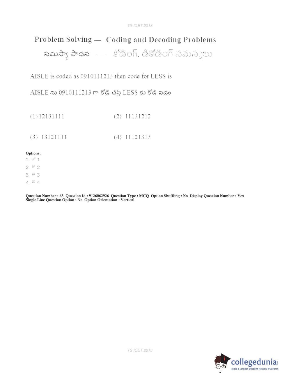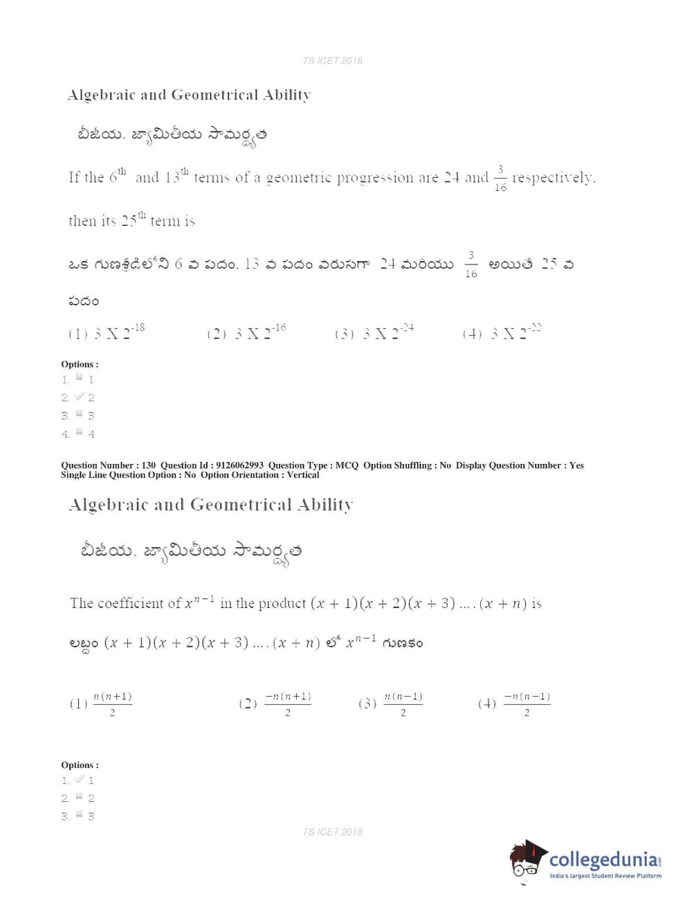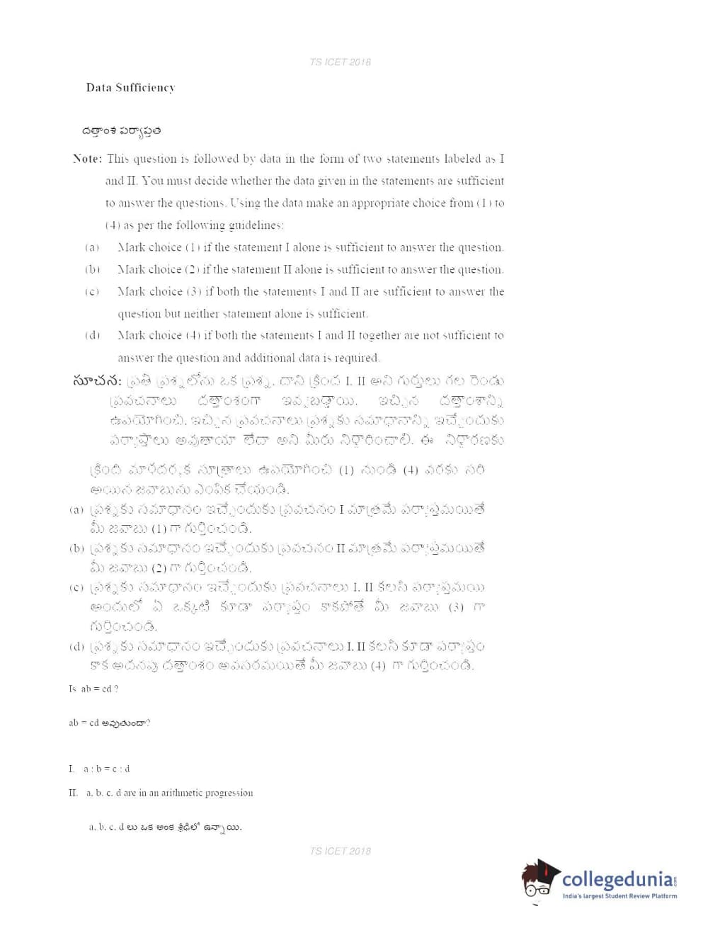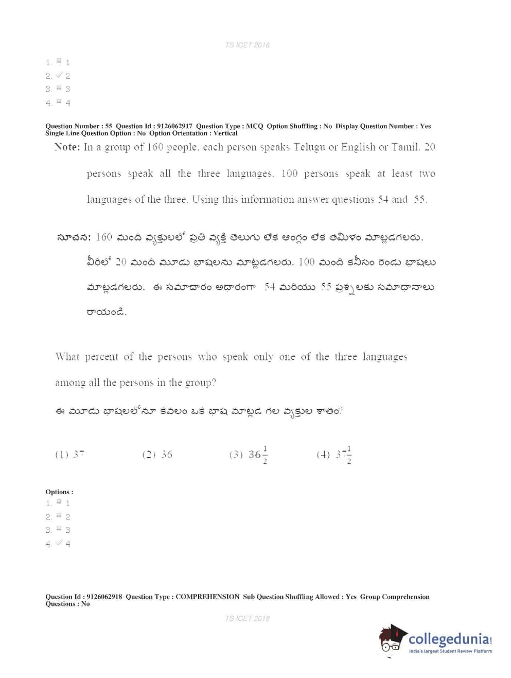 TSICET 2018 Question Paper with Answer Key PDFs Shift 2