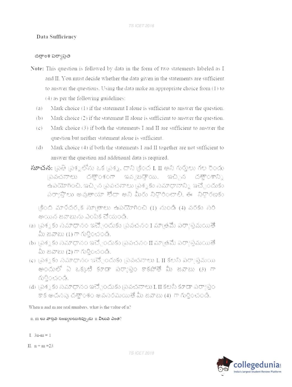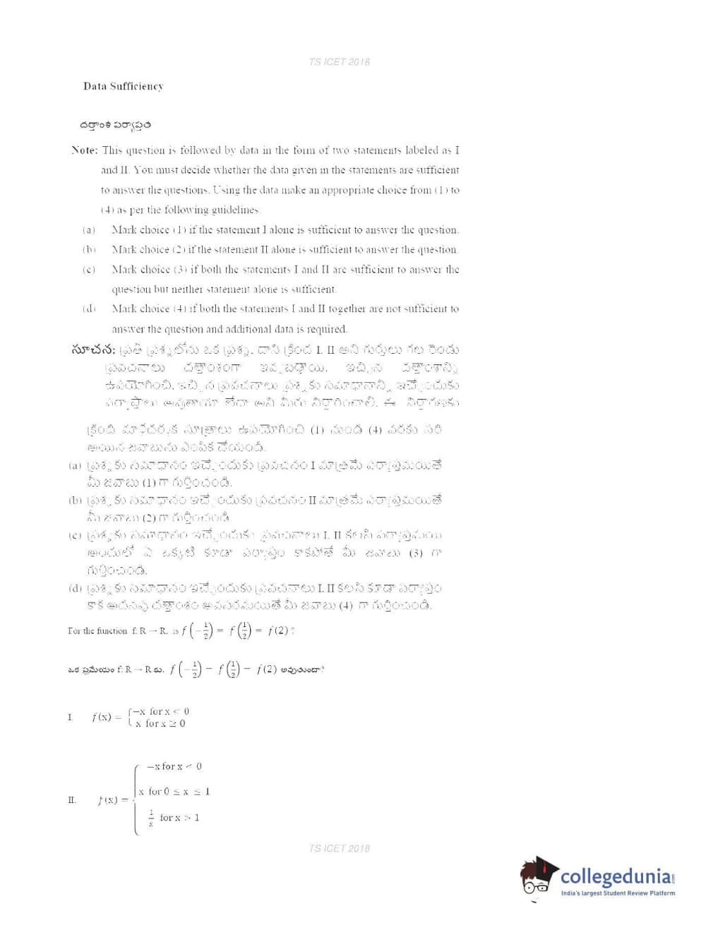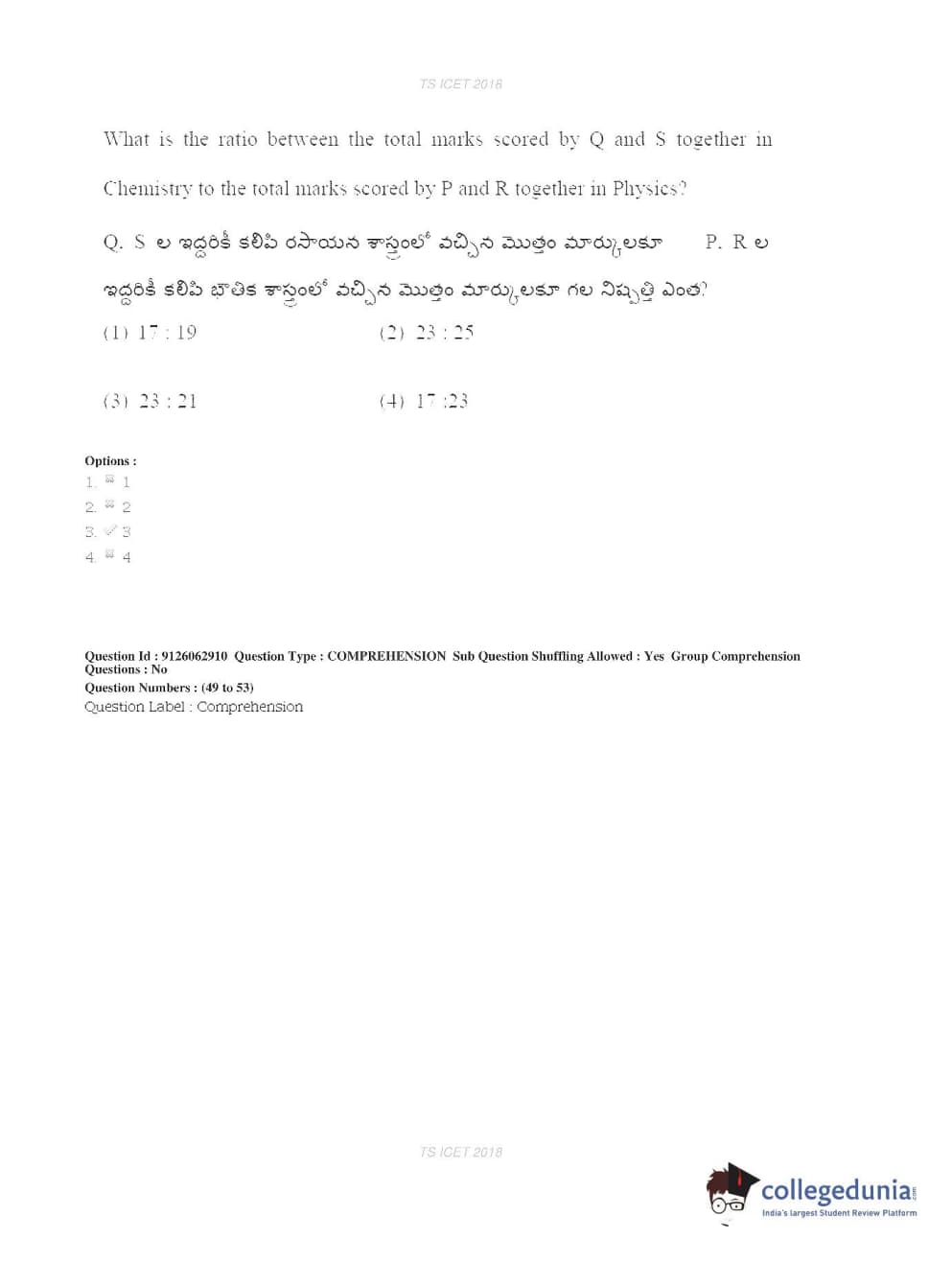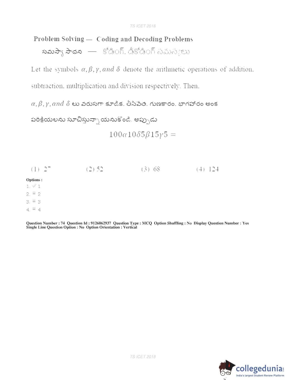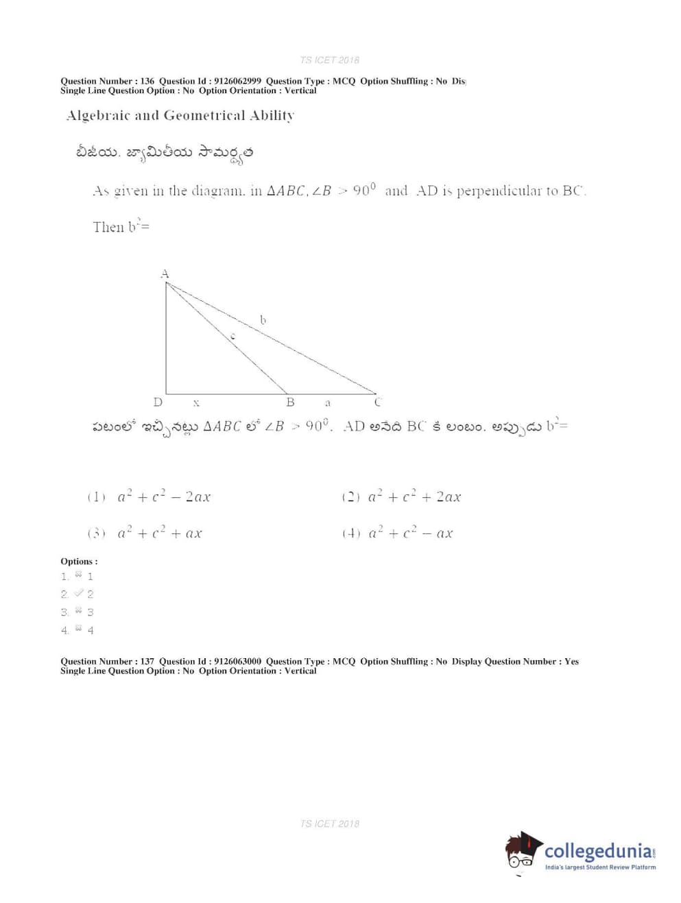 TSICET 2018 Question Paper with Answer Key PDFs Shift 2