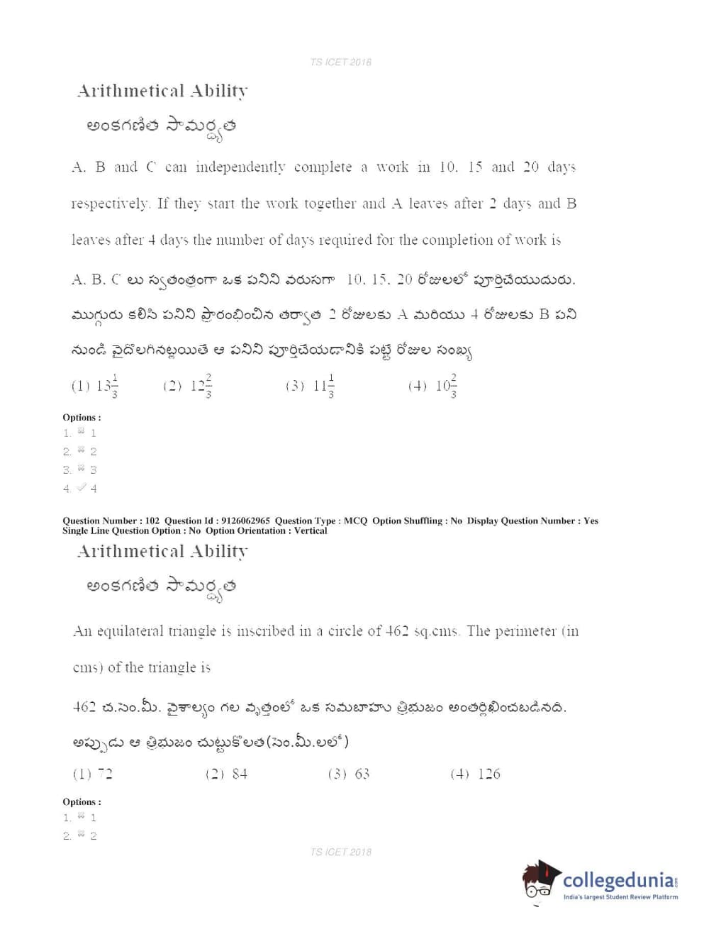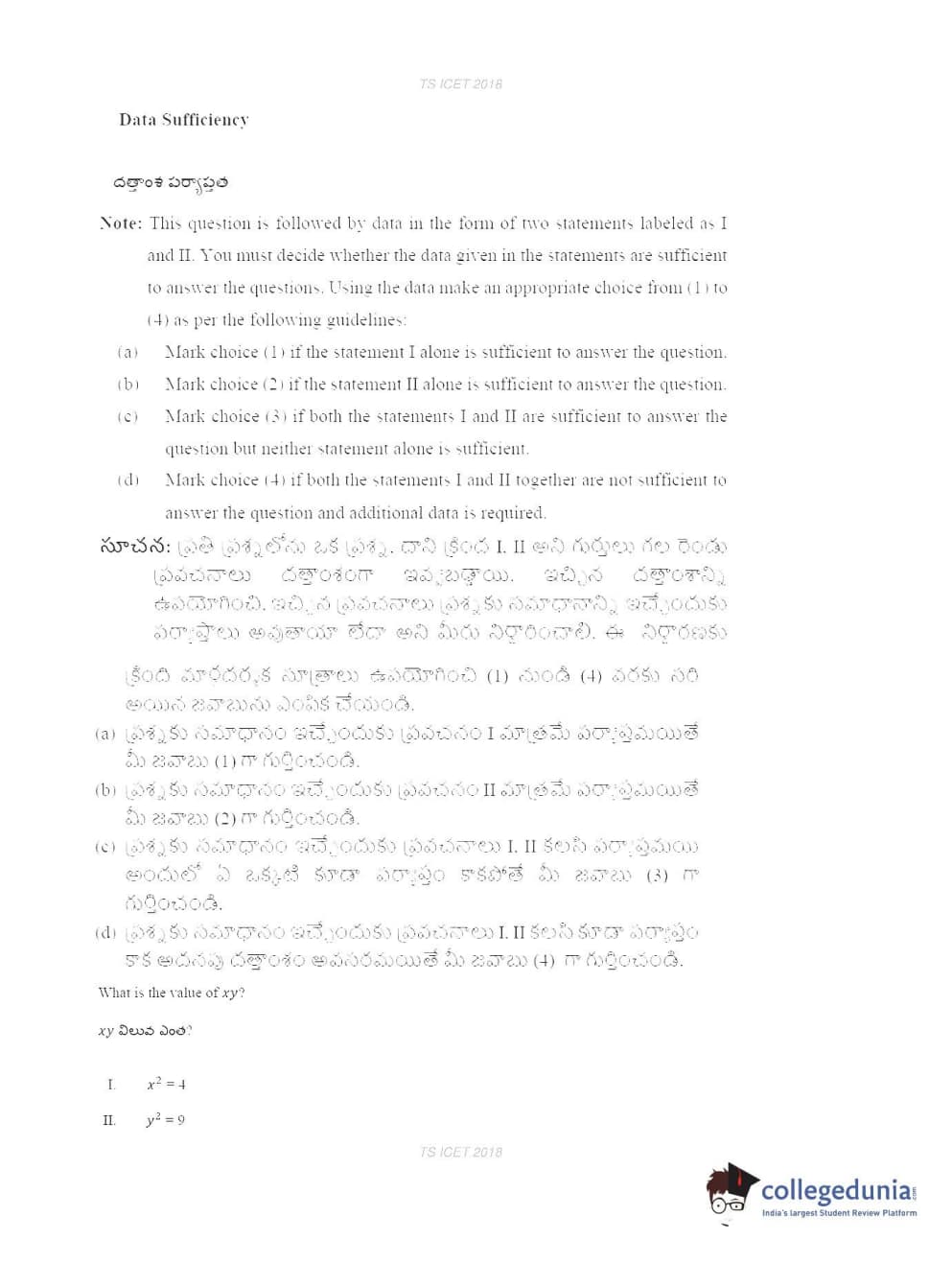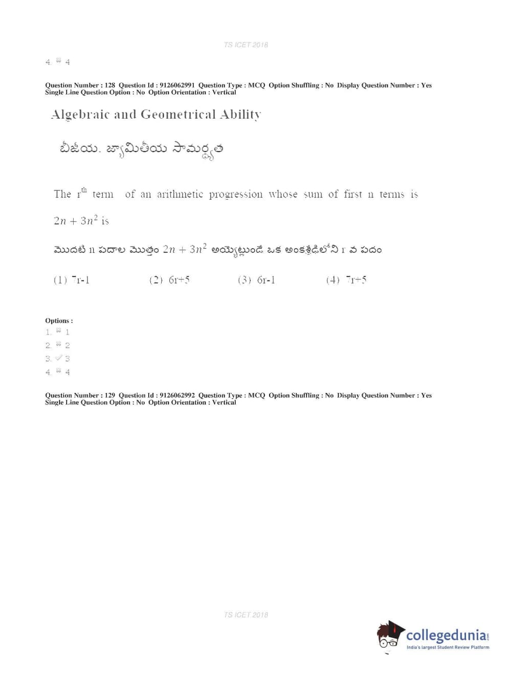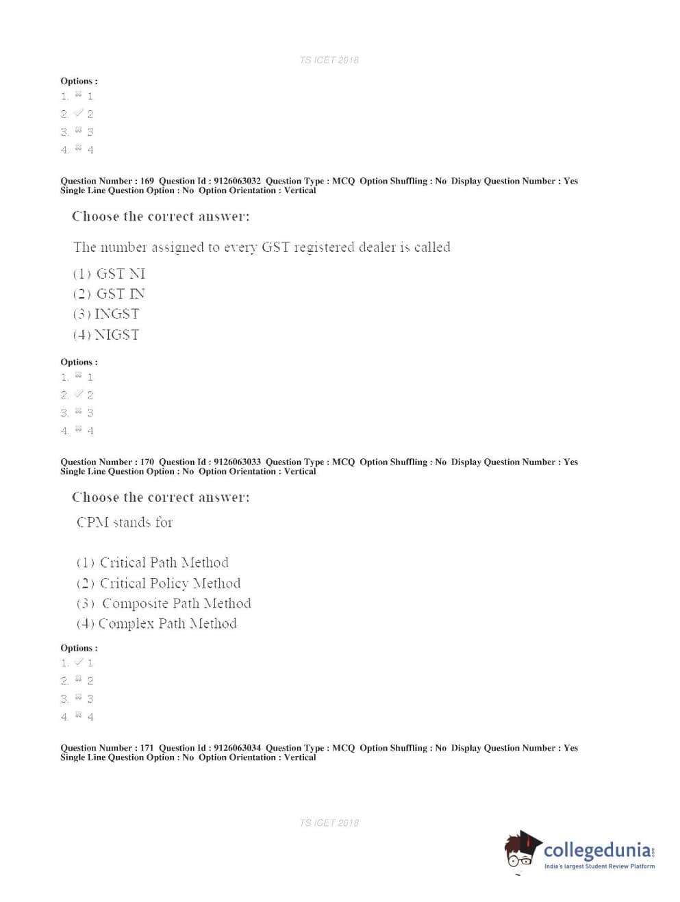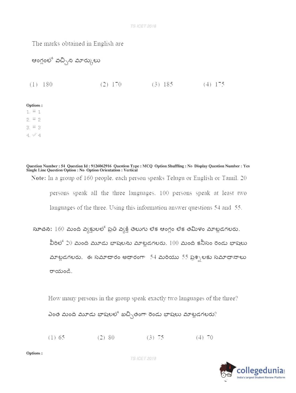TSICET 2018 Question Paper with Answer Key PDFs Shift 2