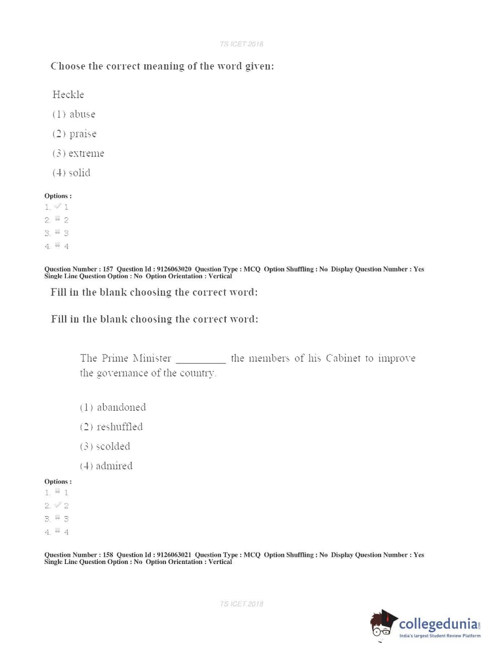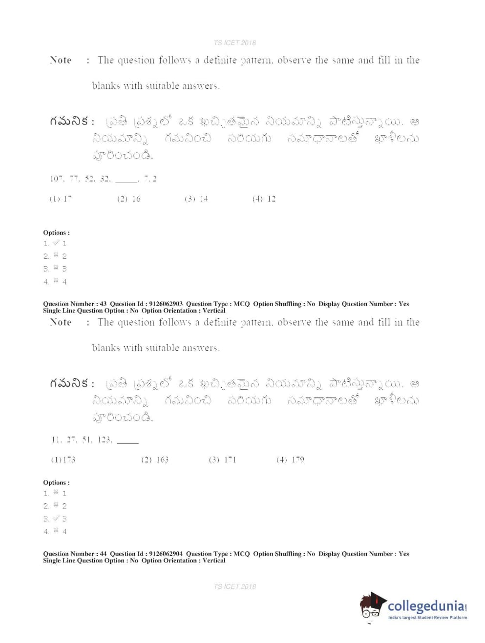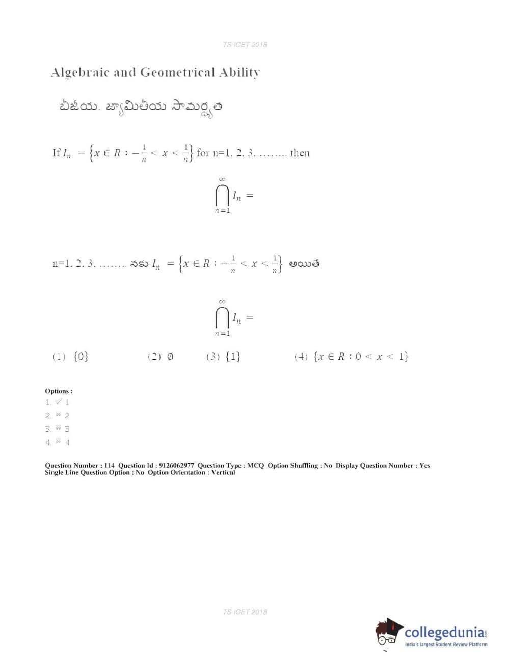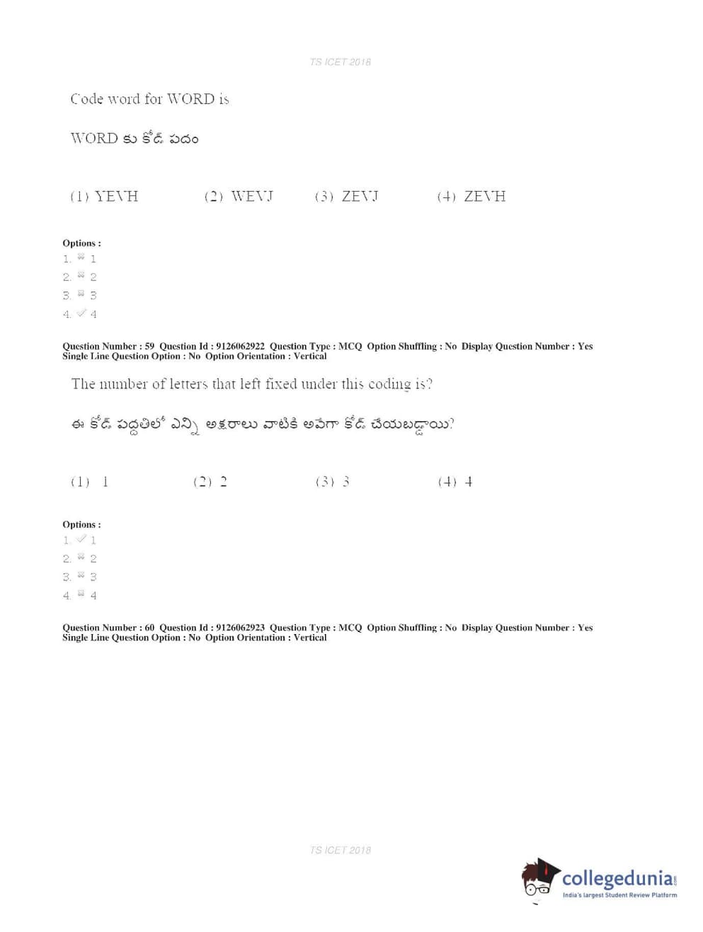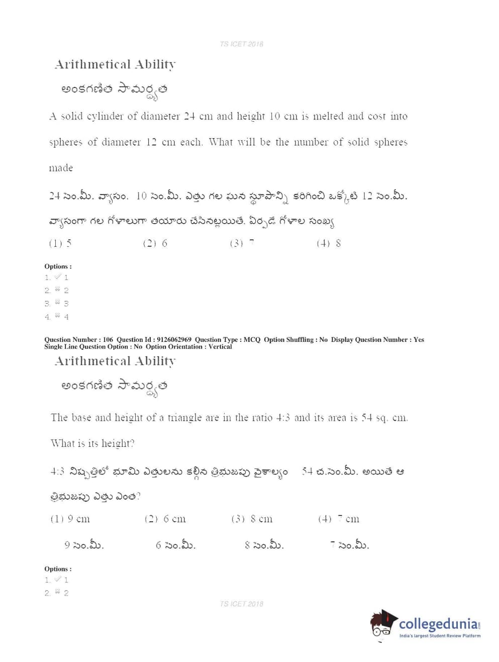 TSICET 2018 Question Paper with Answer Key PDFs Shift 2