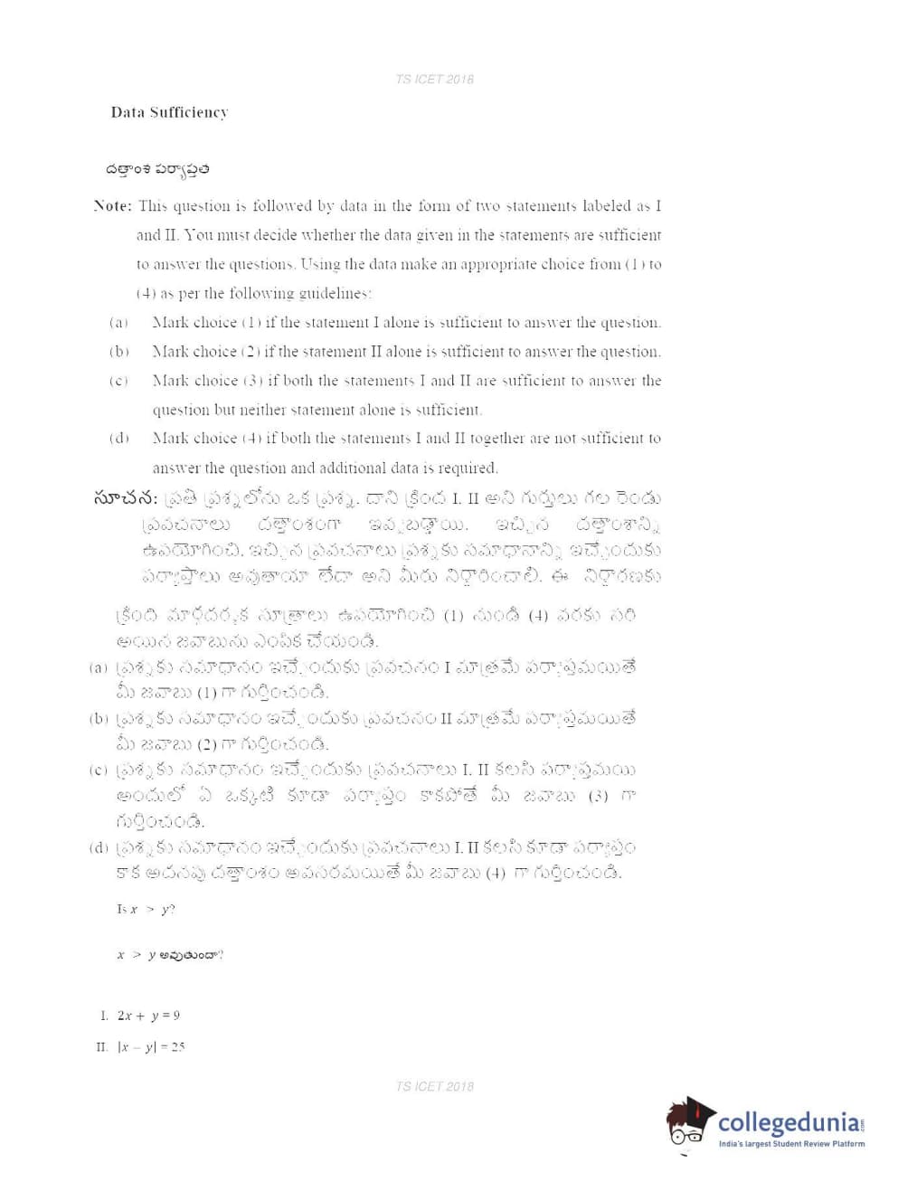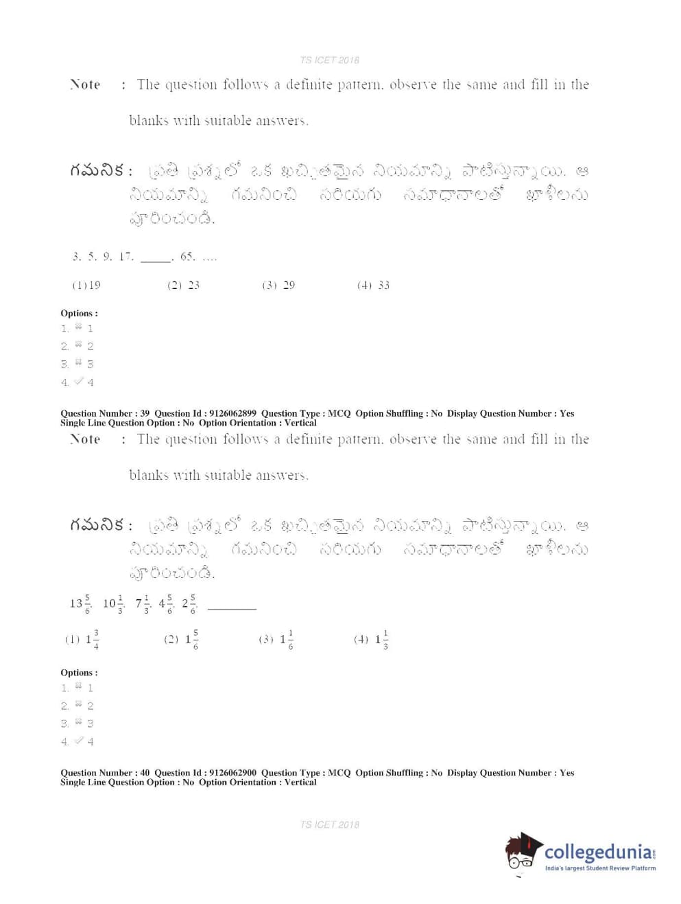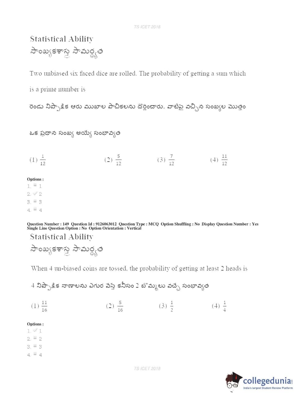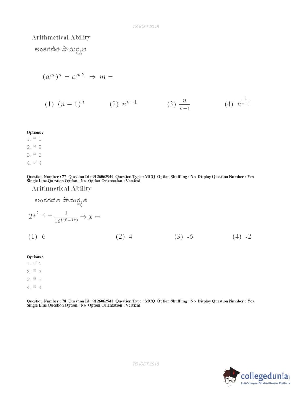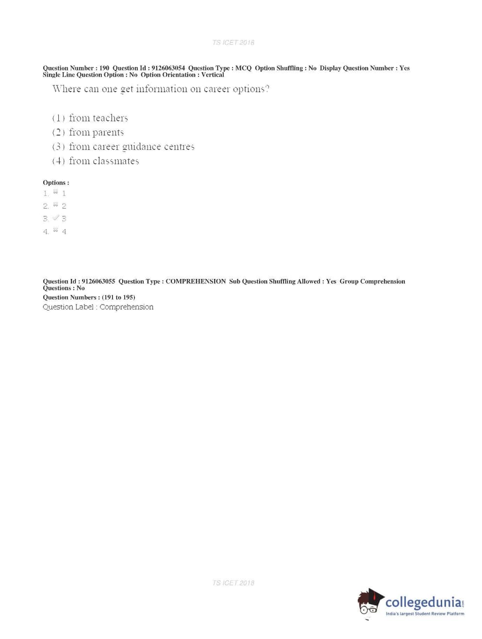 TSICET 2018 Question Paper with Answer Key PDFs Shift 2