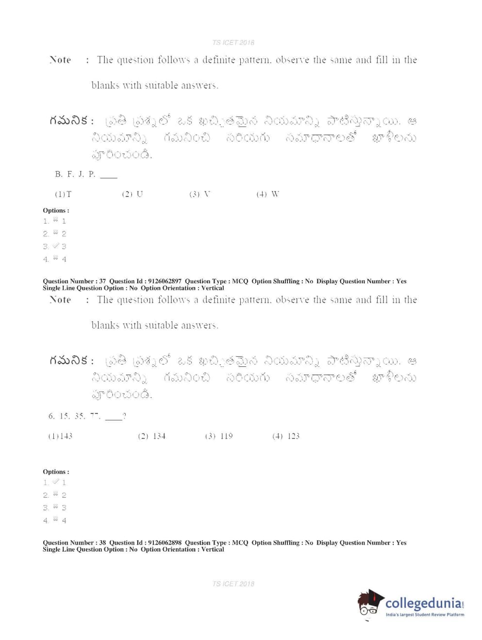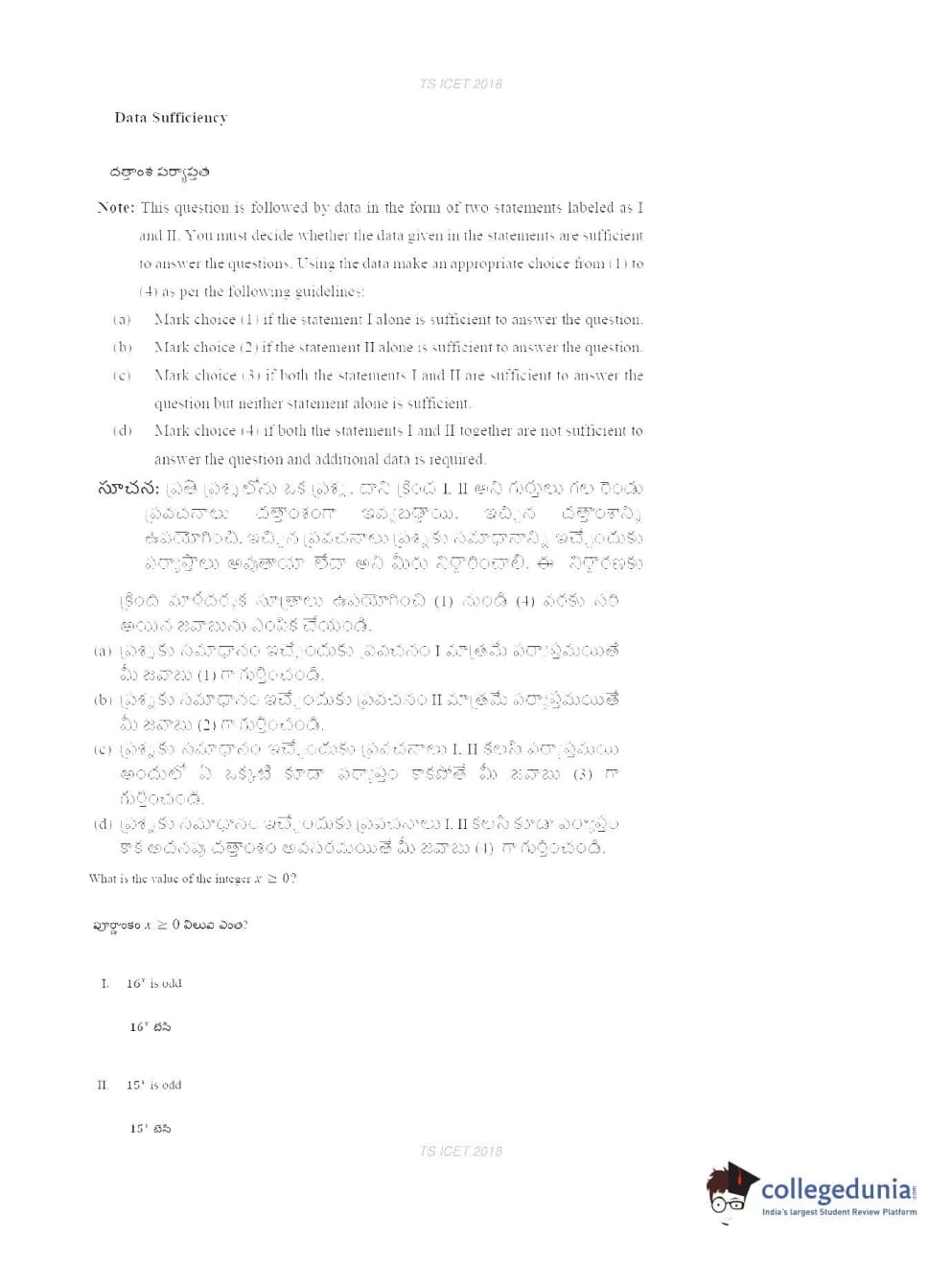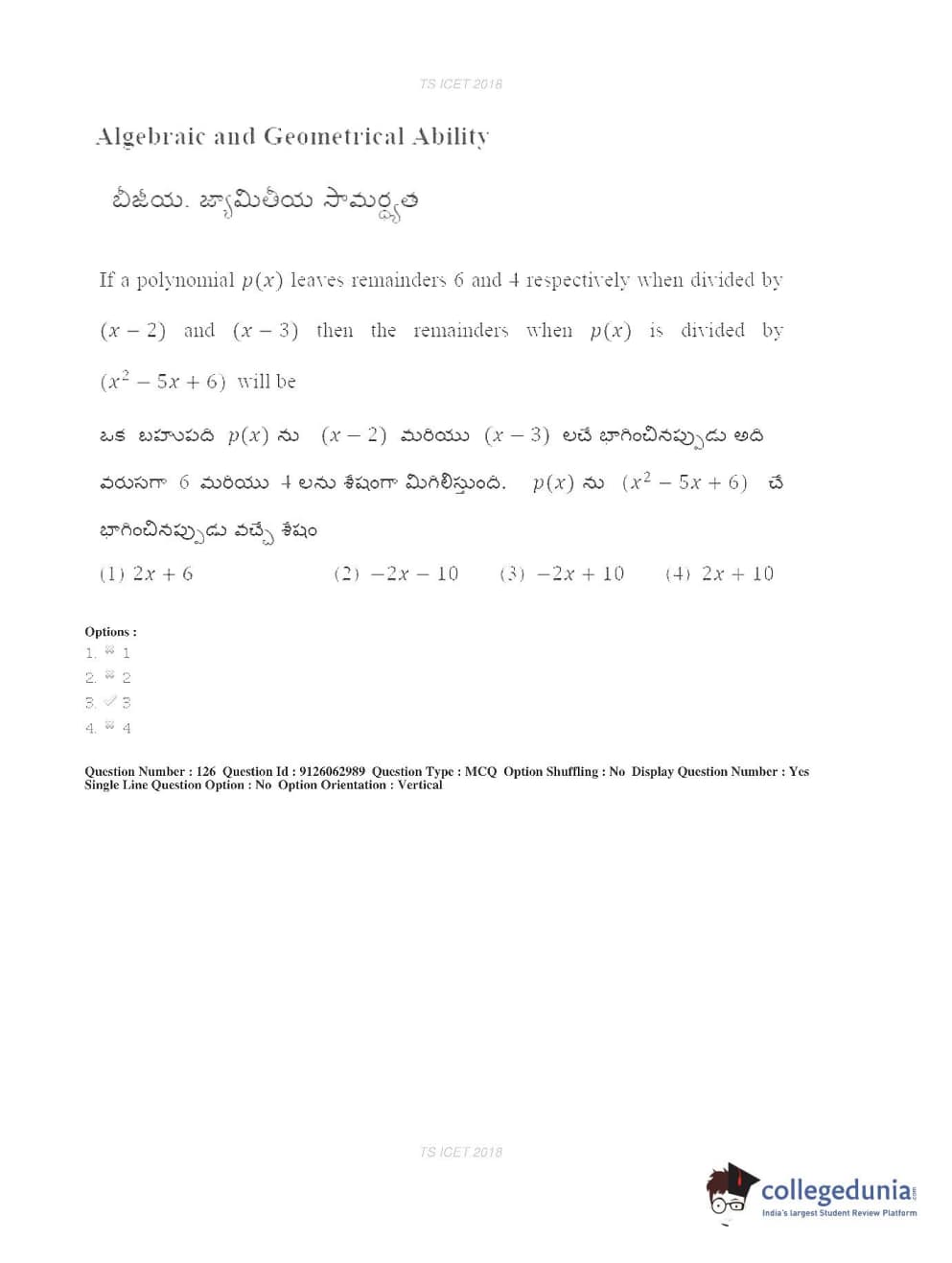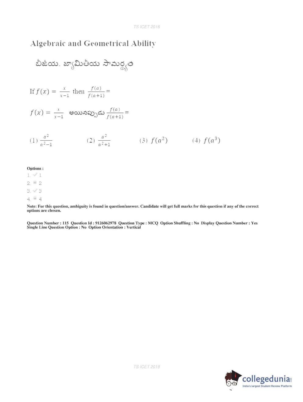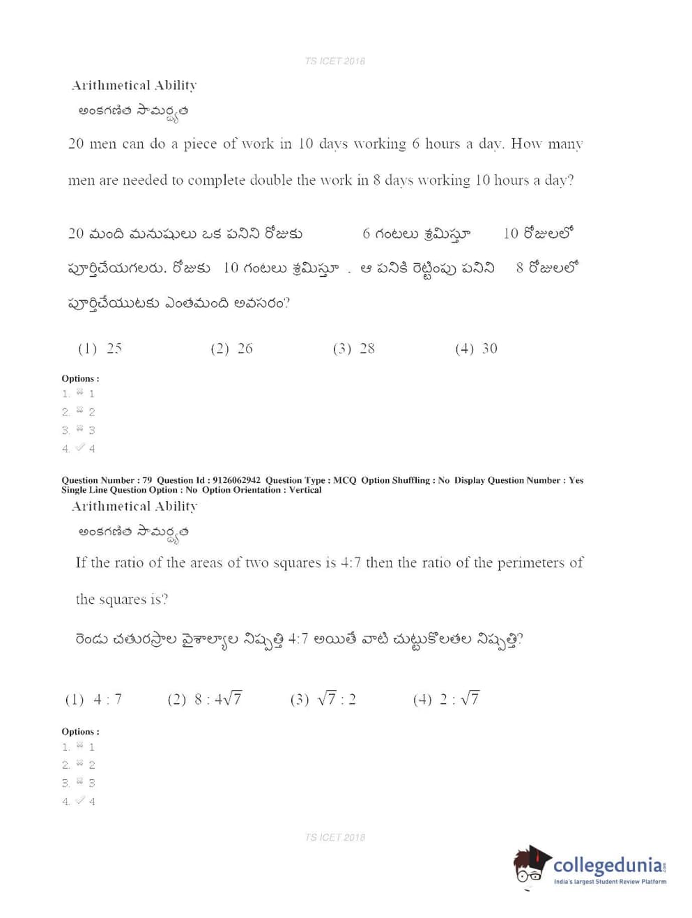 TSICET 2018 Question Paper with Answer Key PDFs Shift 2