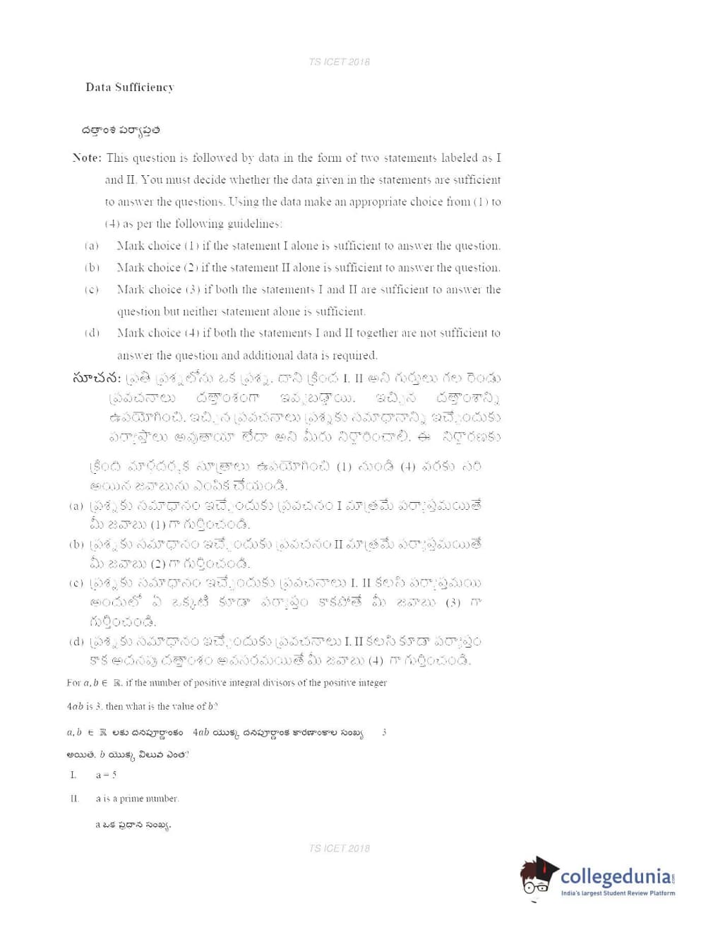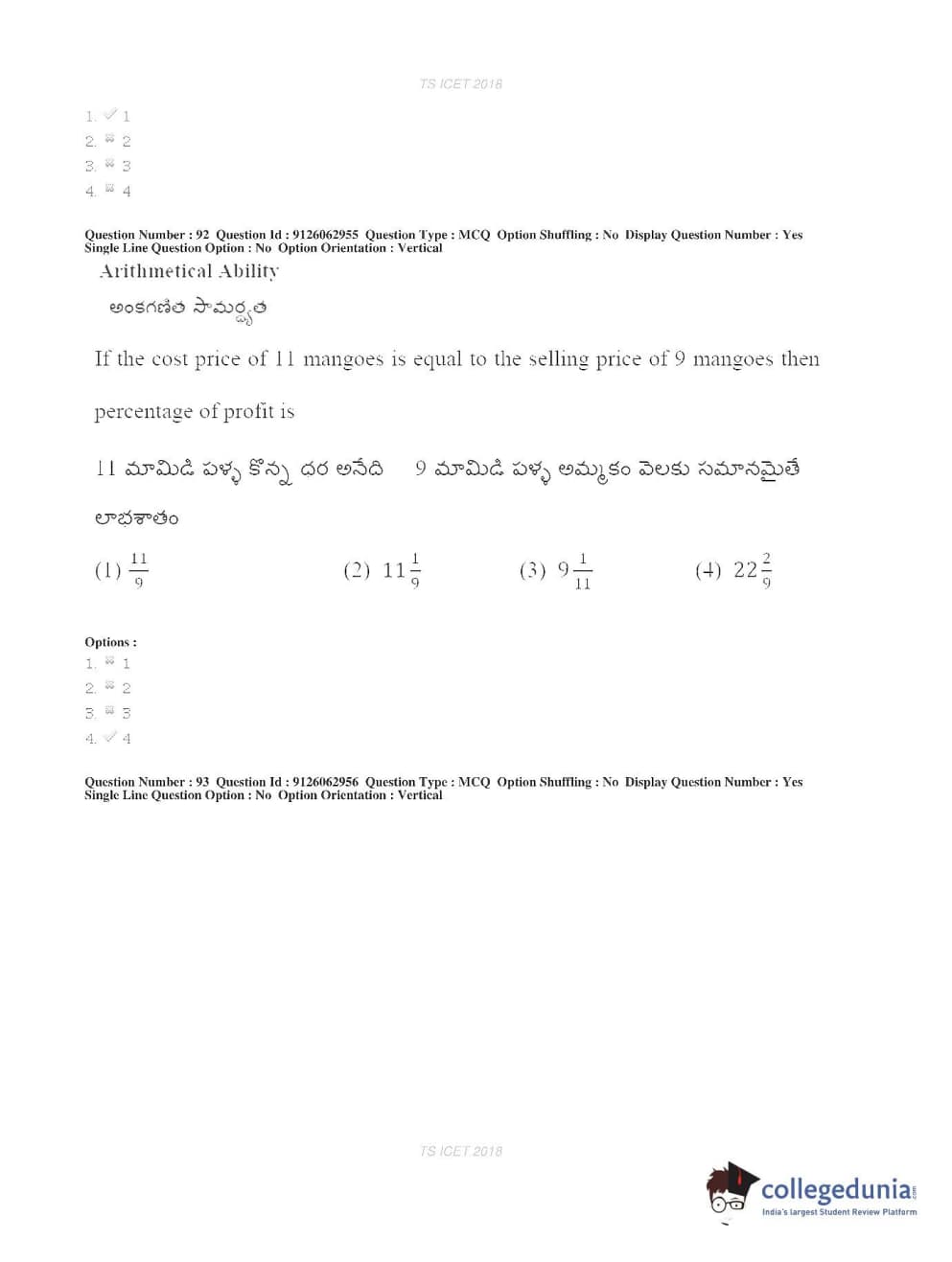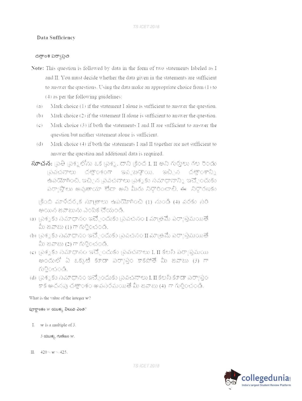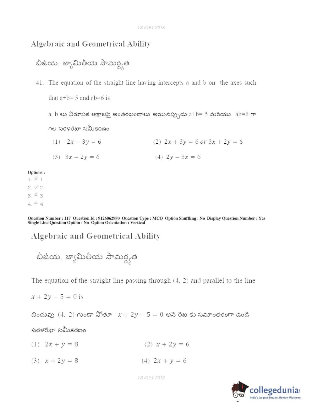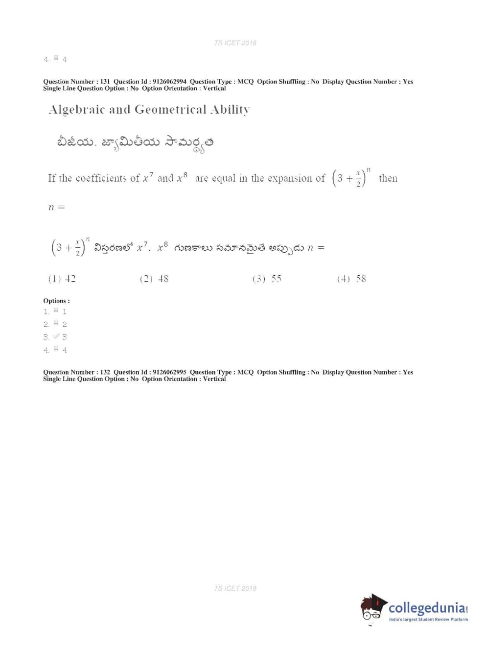 TSICET 2018 Question Paper with Answer Key PDFs Shift 2