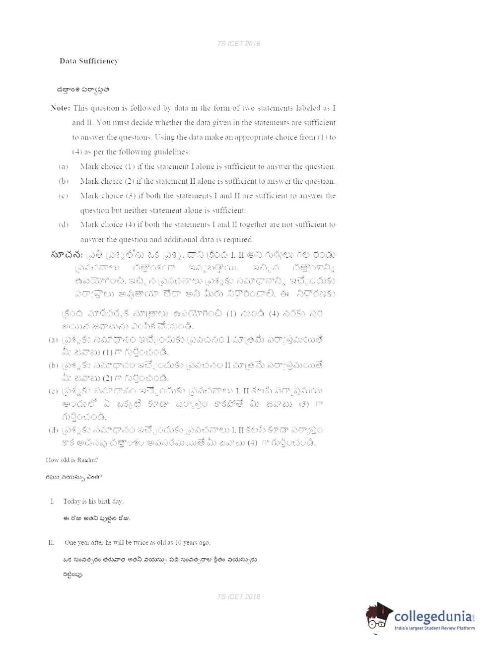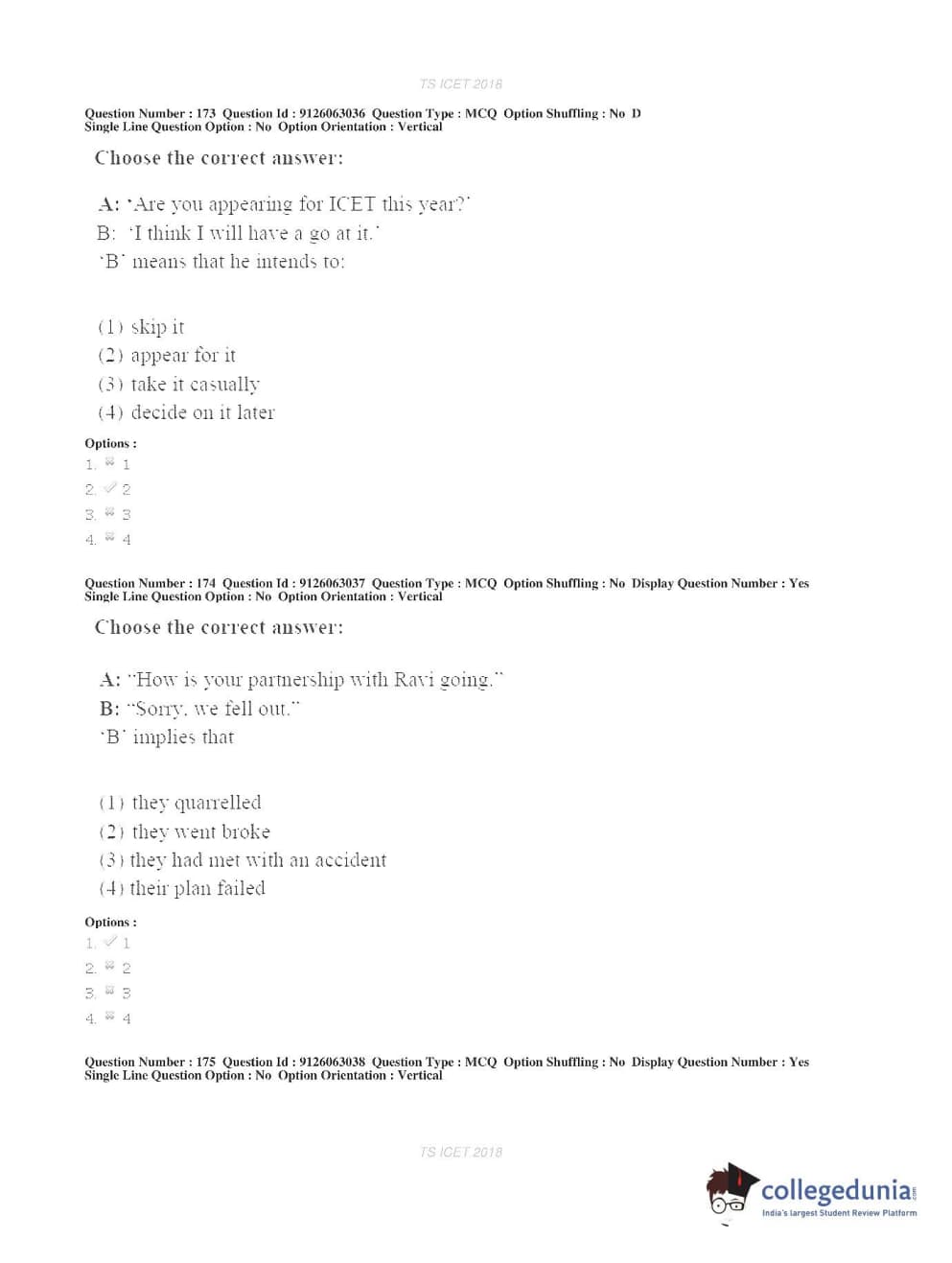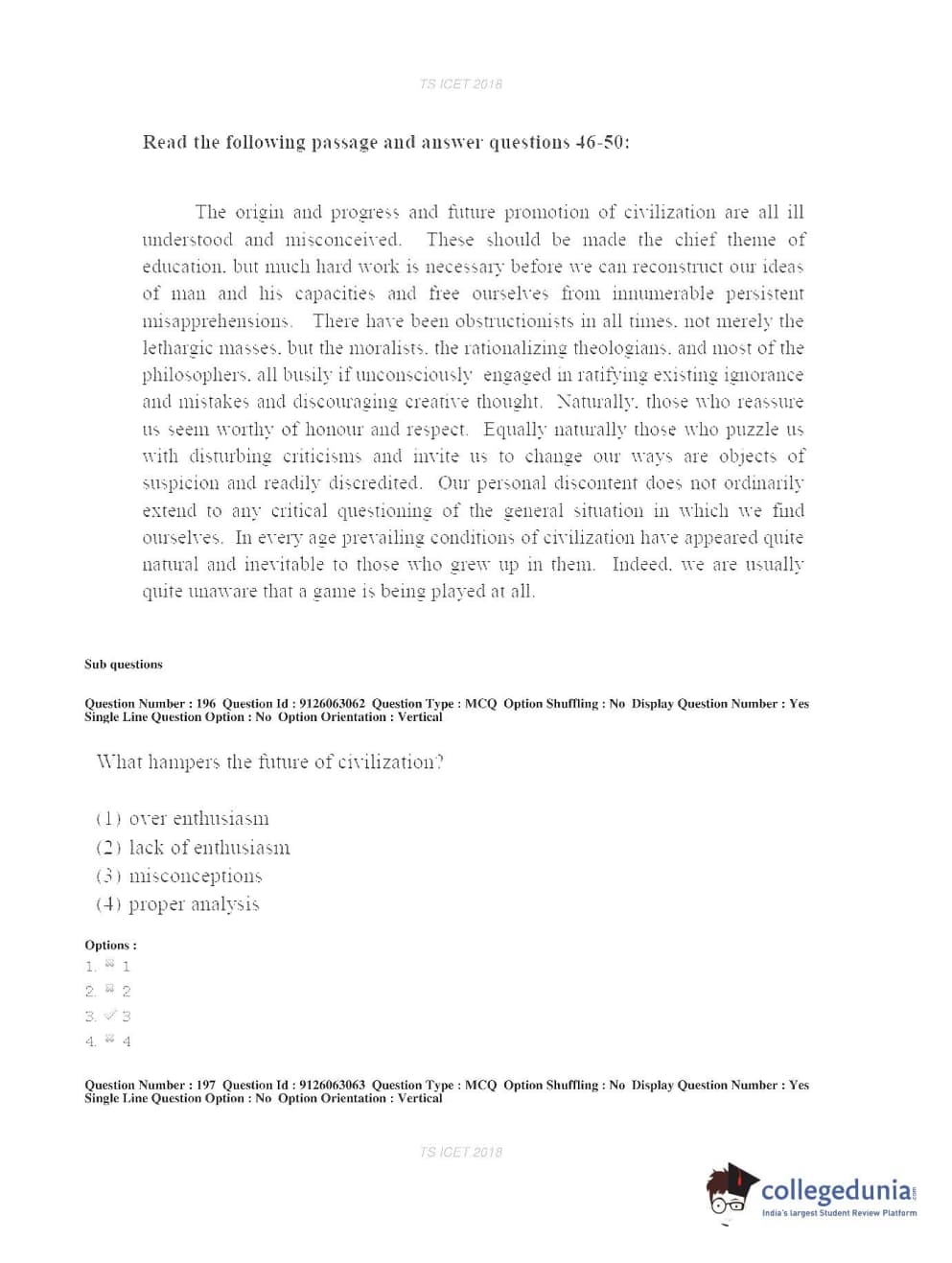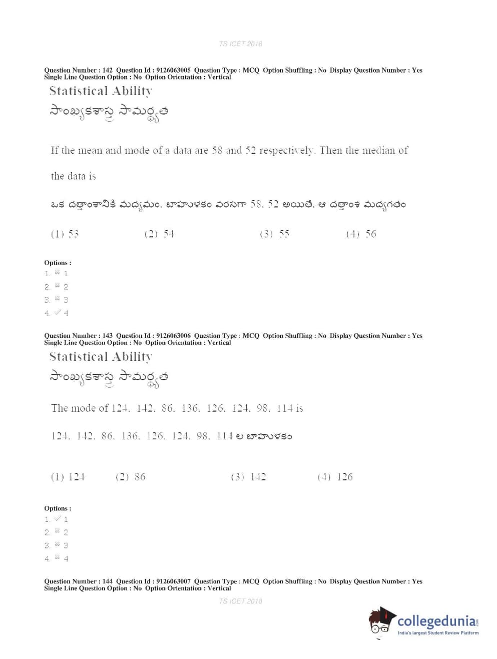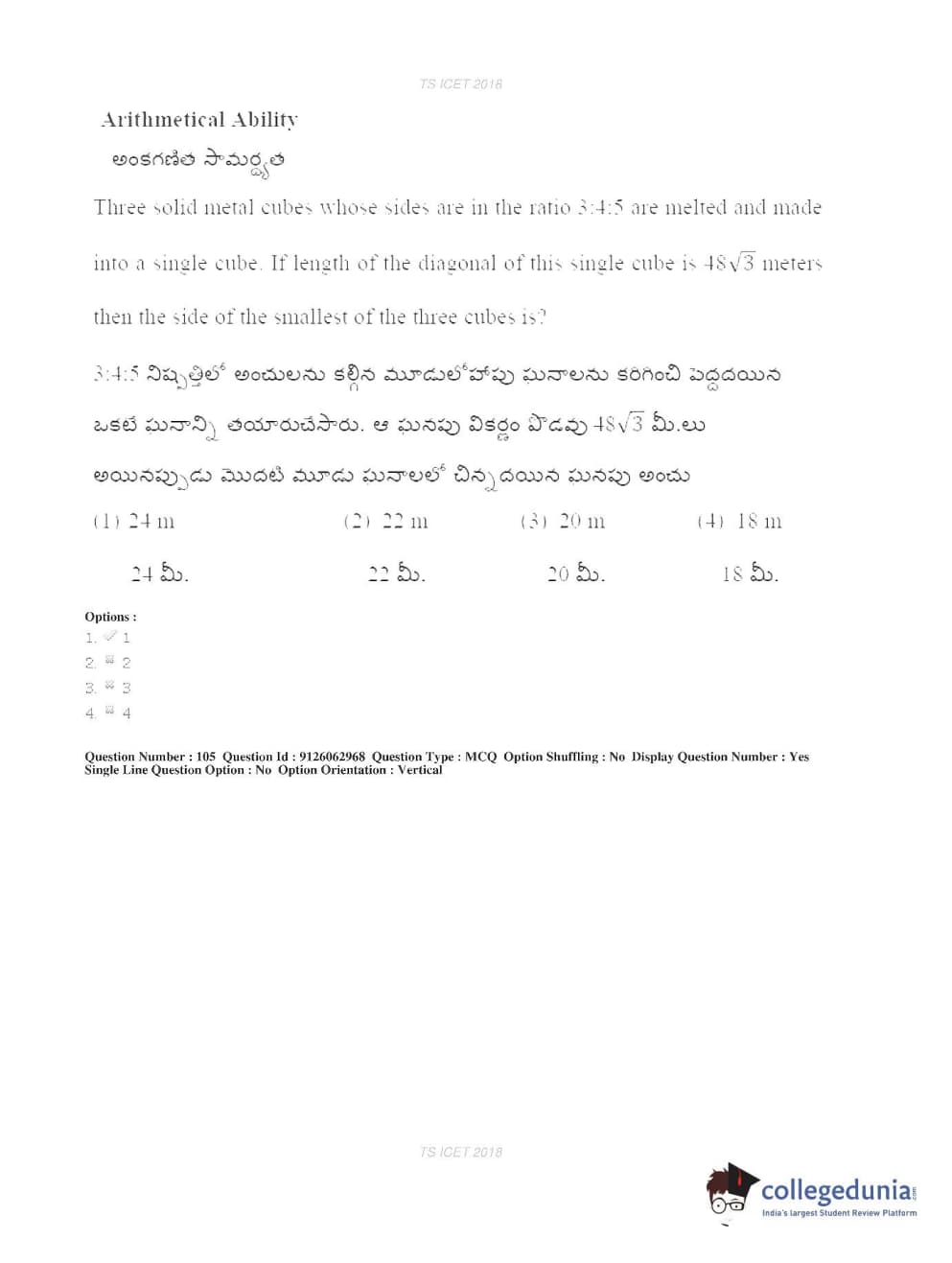 TSICET 2018 Question Paper with Answer Key PDFs Shift 2