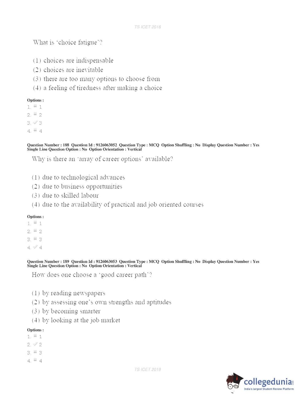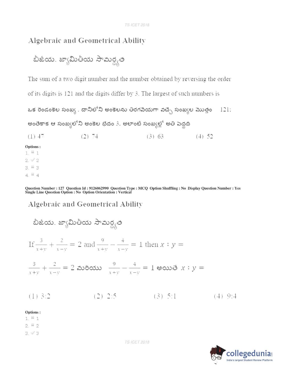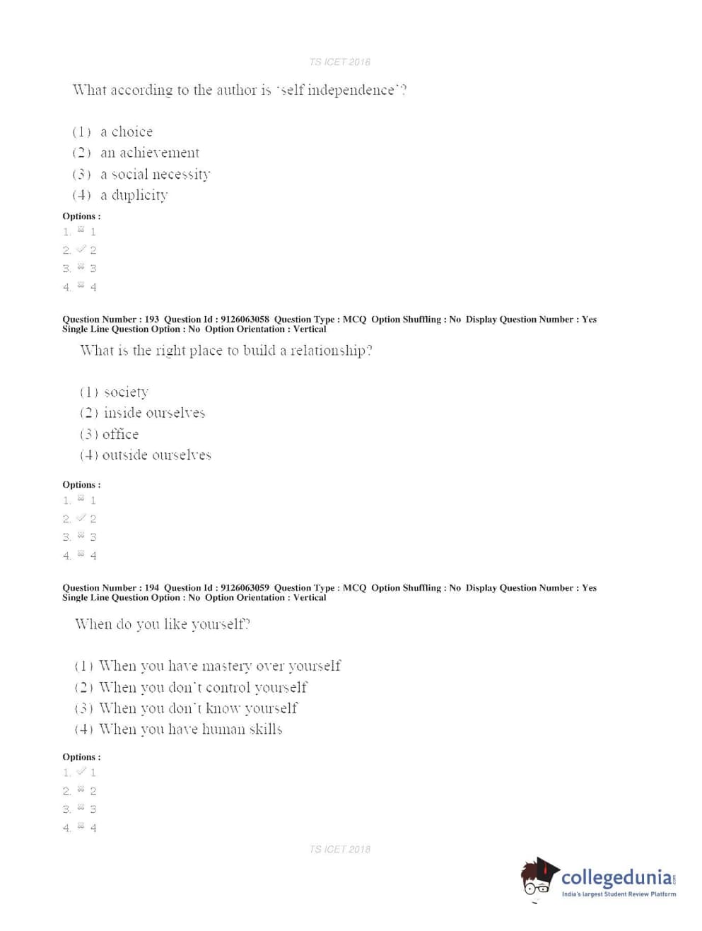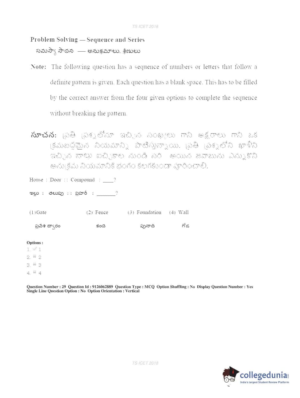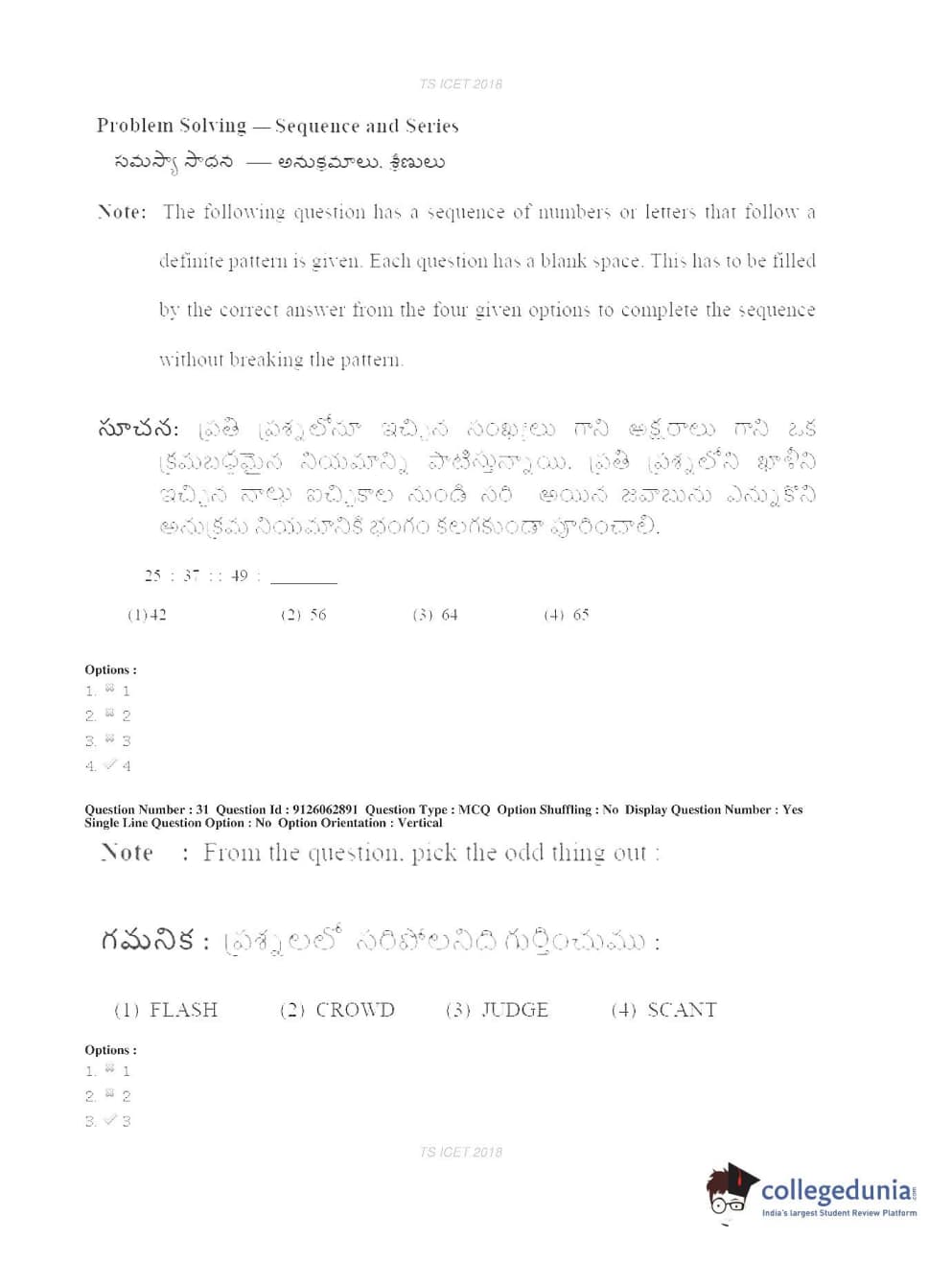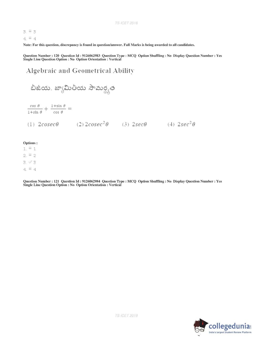 TSICET 2018 Question Paper with Answer Key PDFs Shift 2