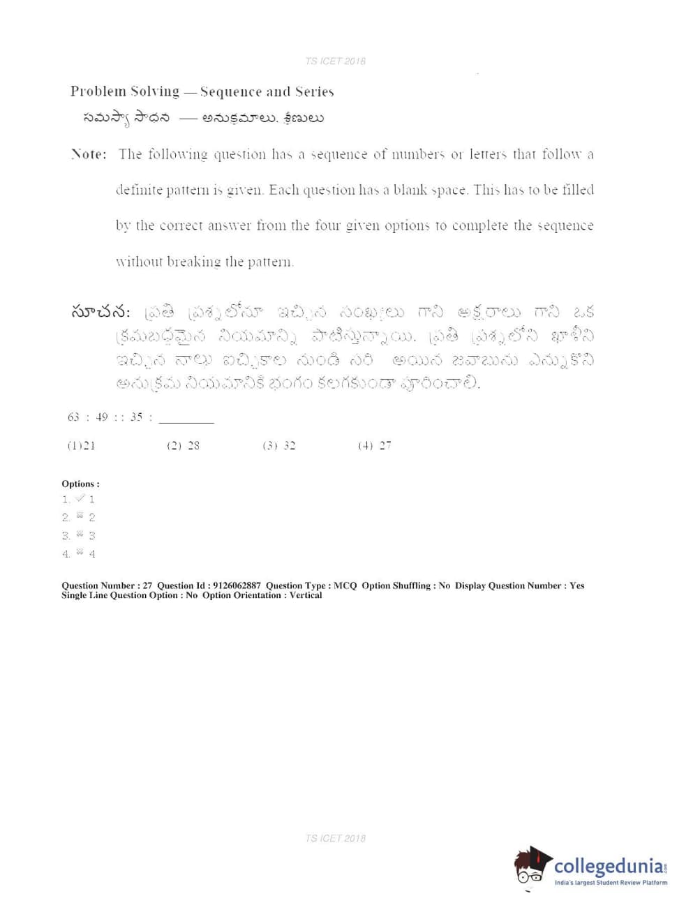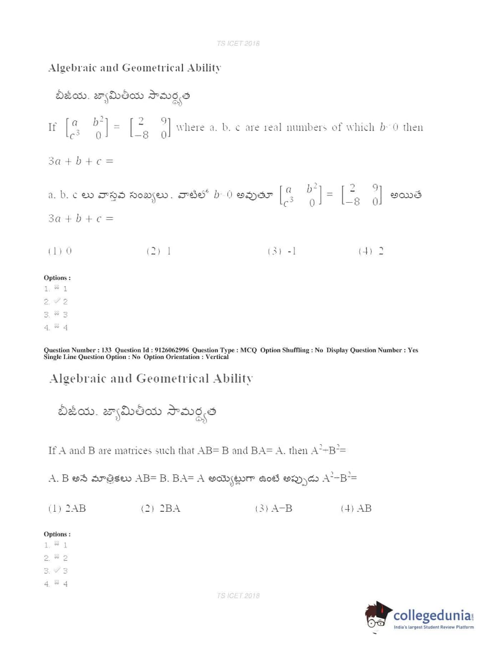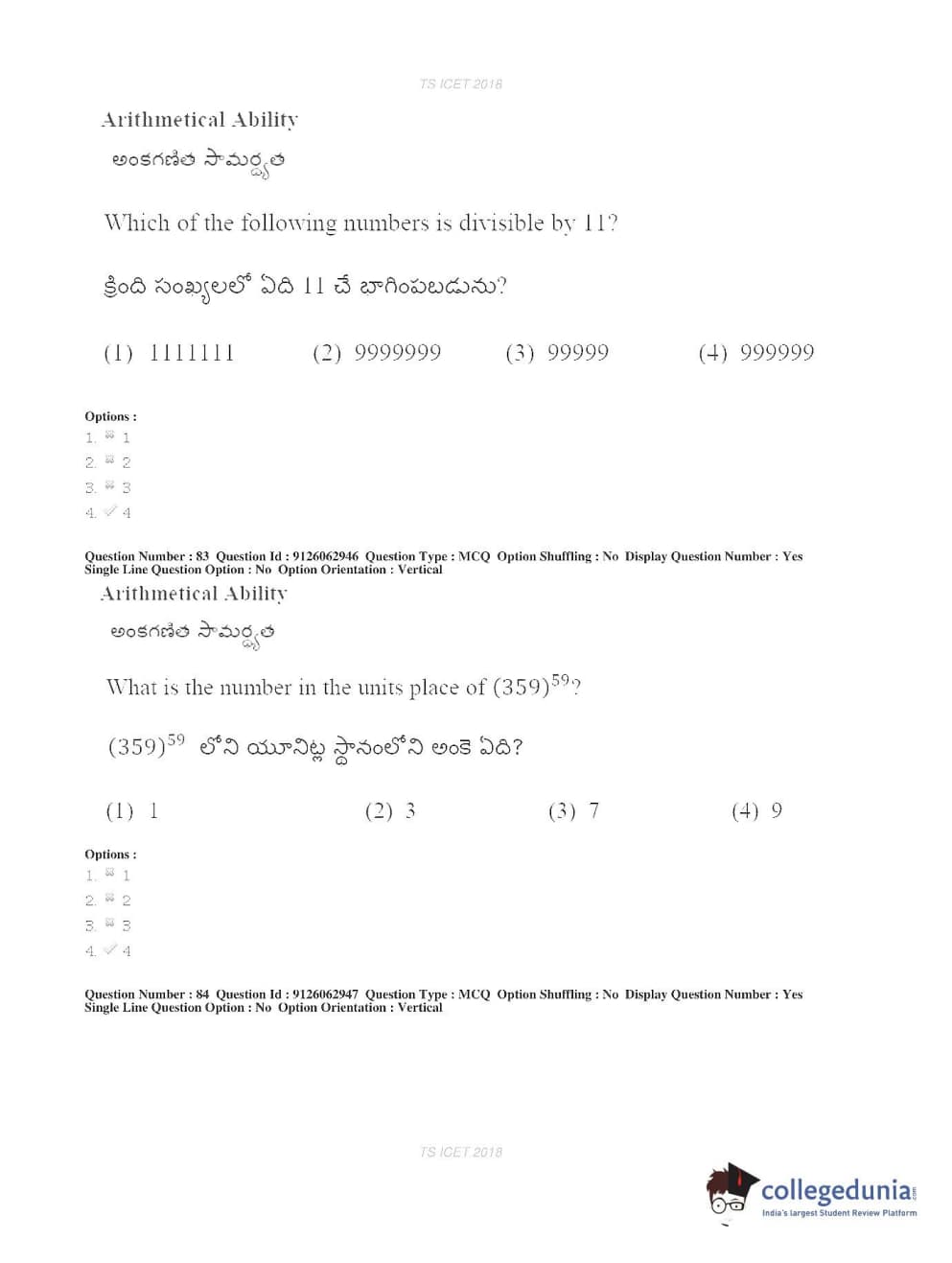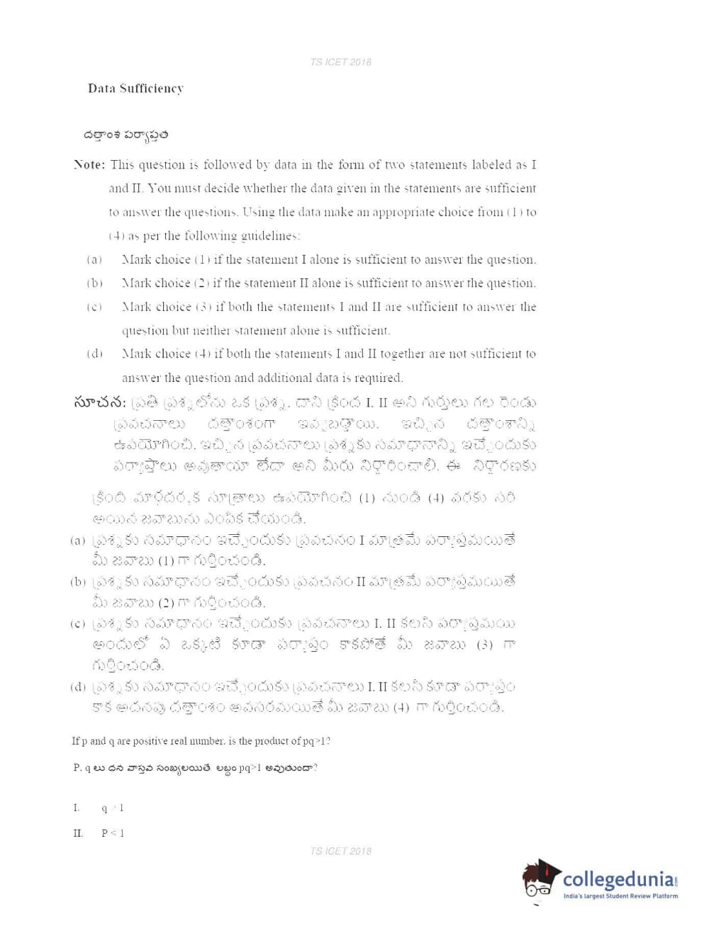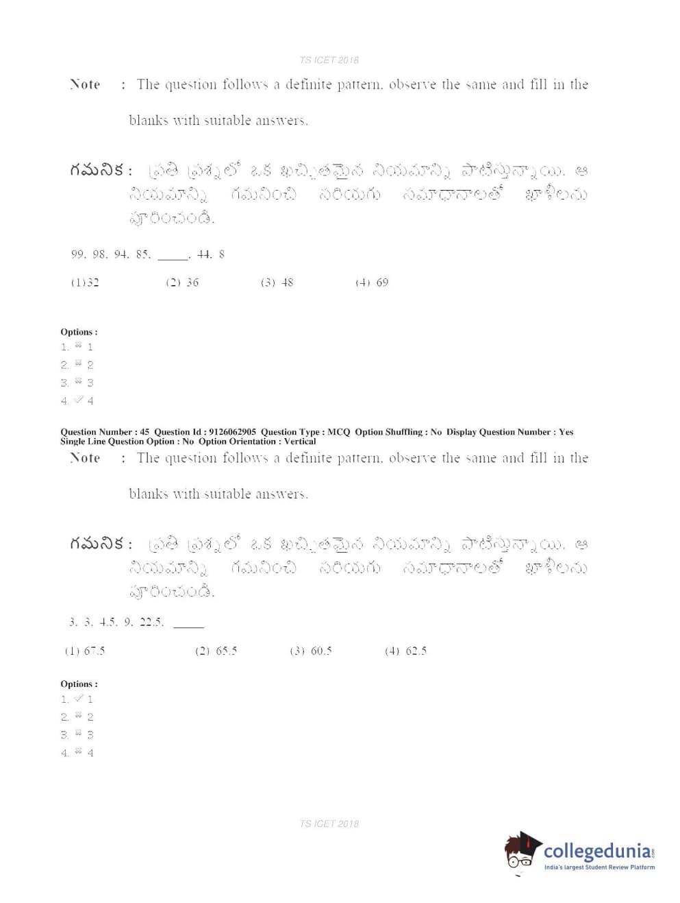 TSICET 2018 Question Paper with Answer Key PDFs Shift 2