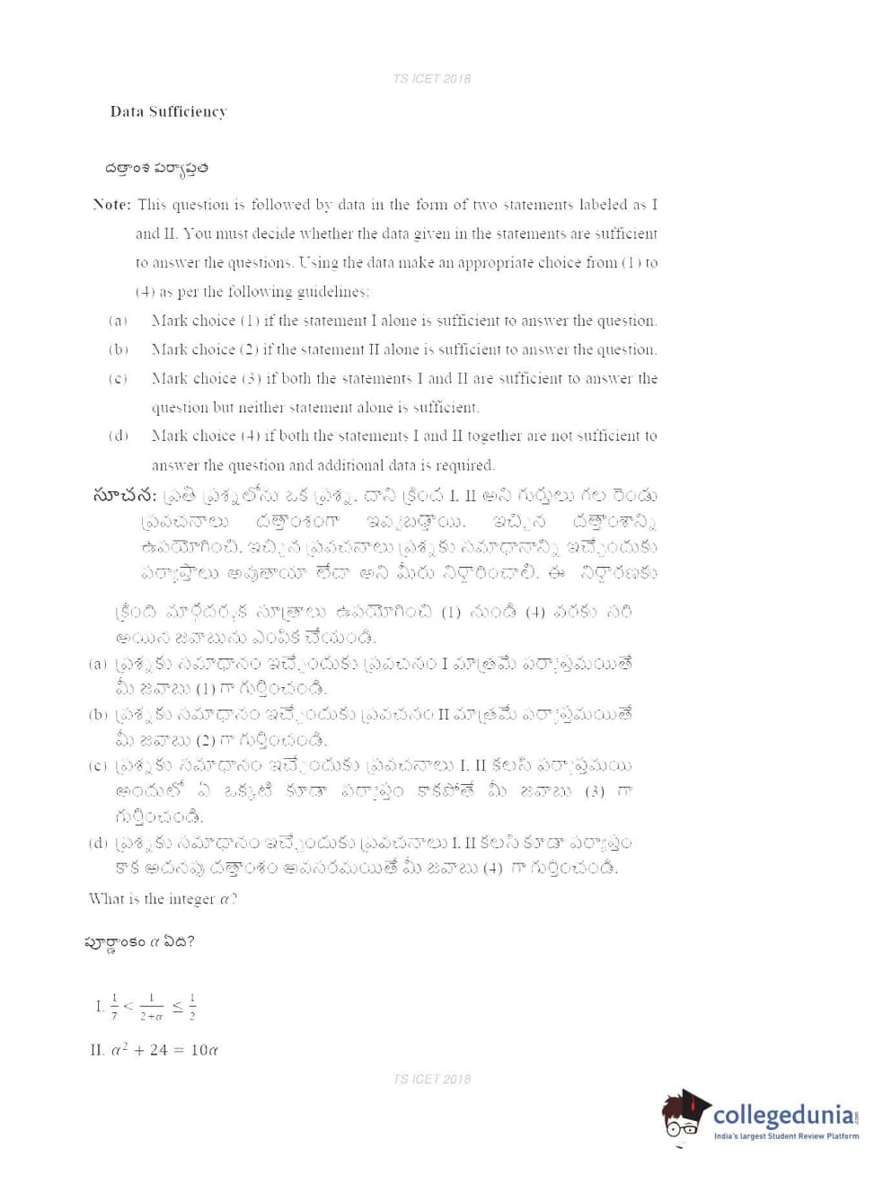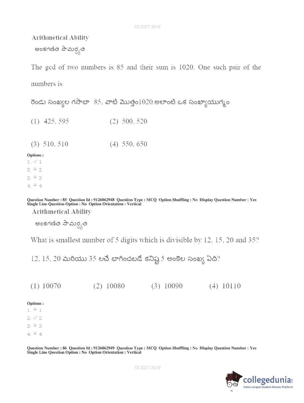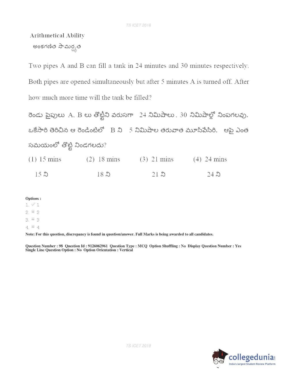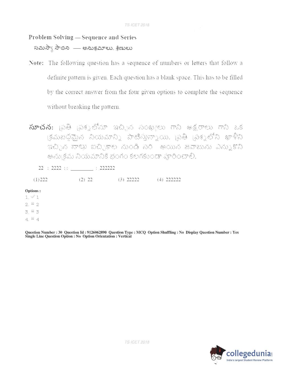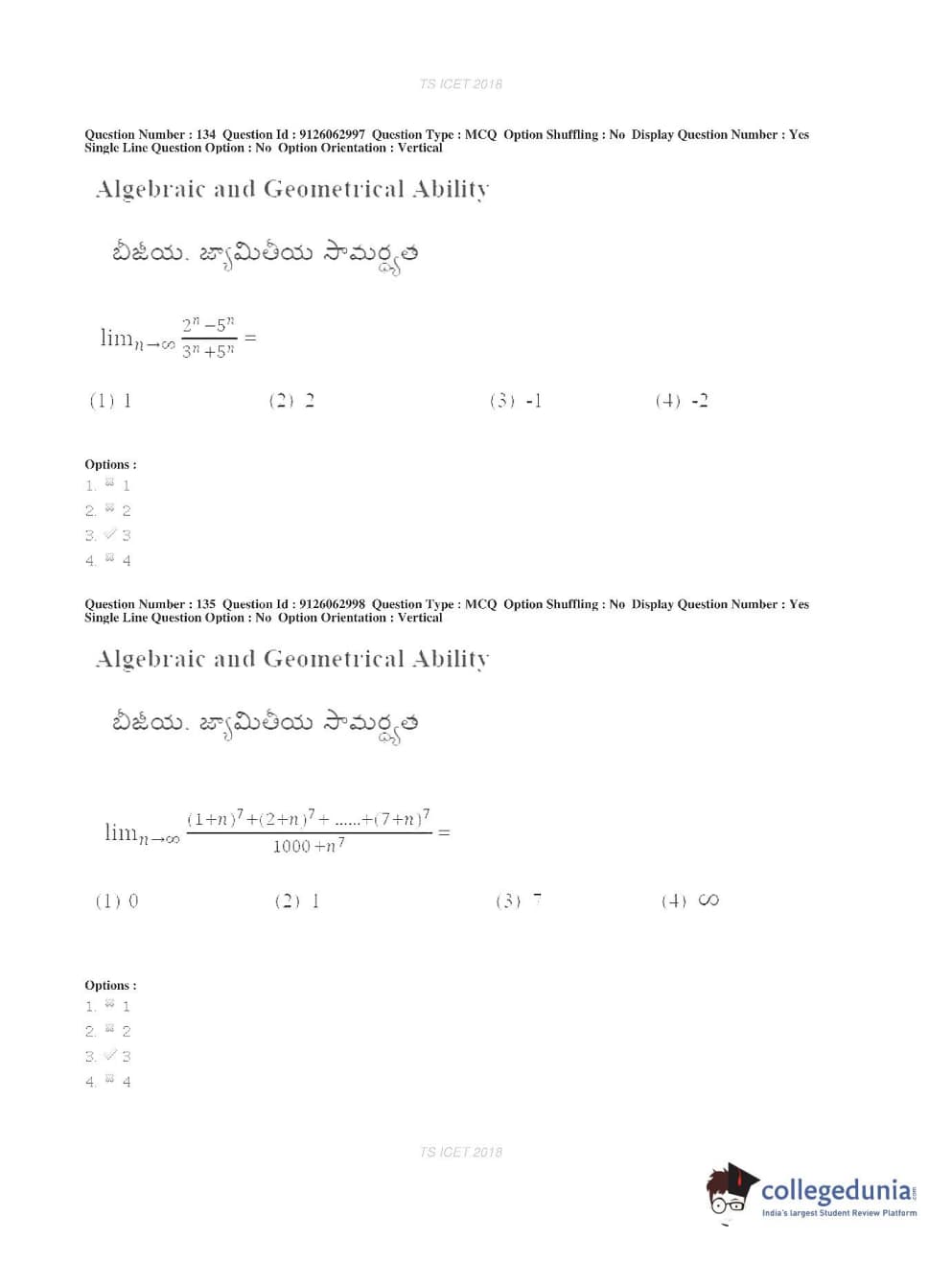 TSICET 2018 Question Paper with Answer Key PDFs Shift 2