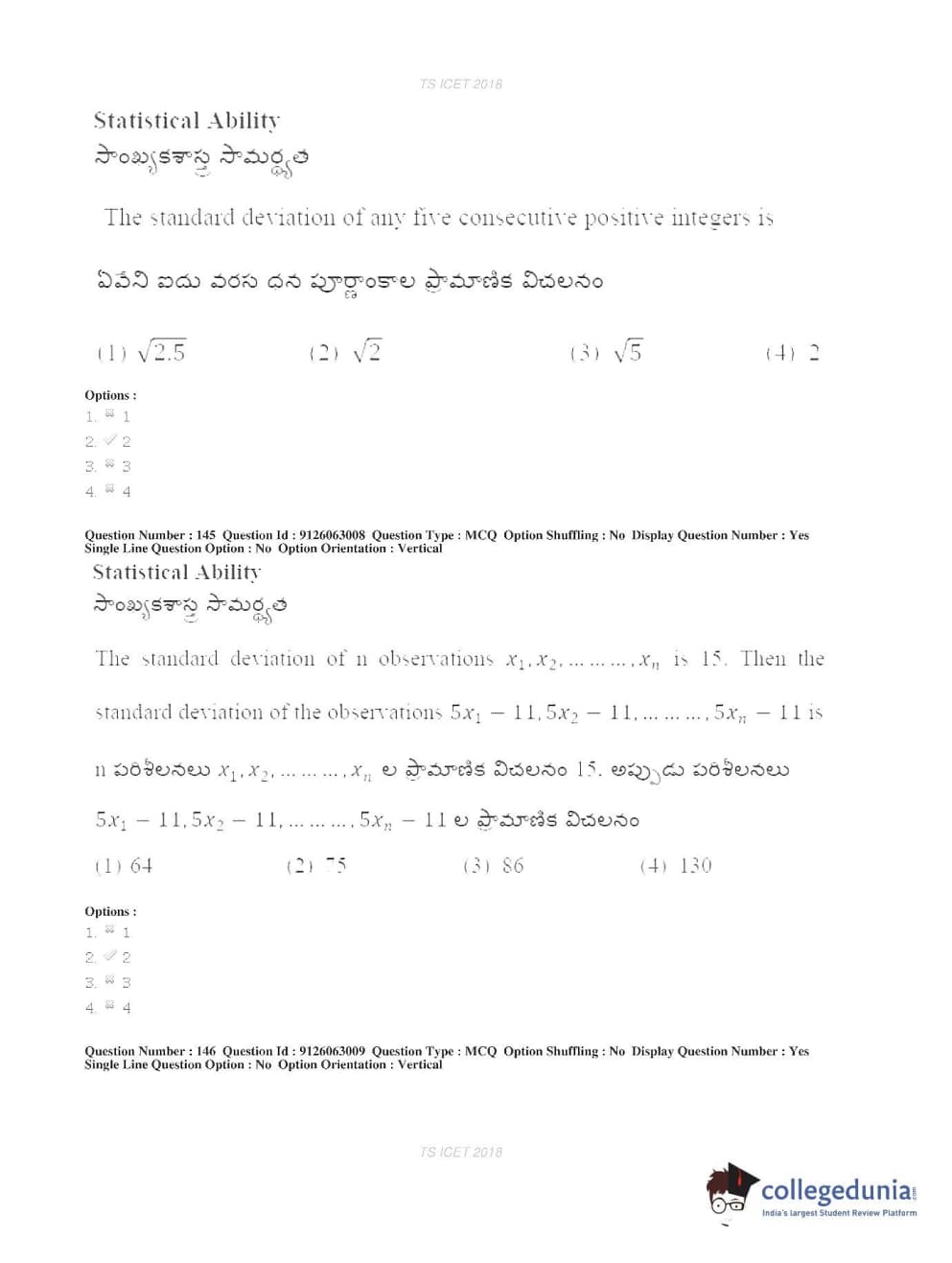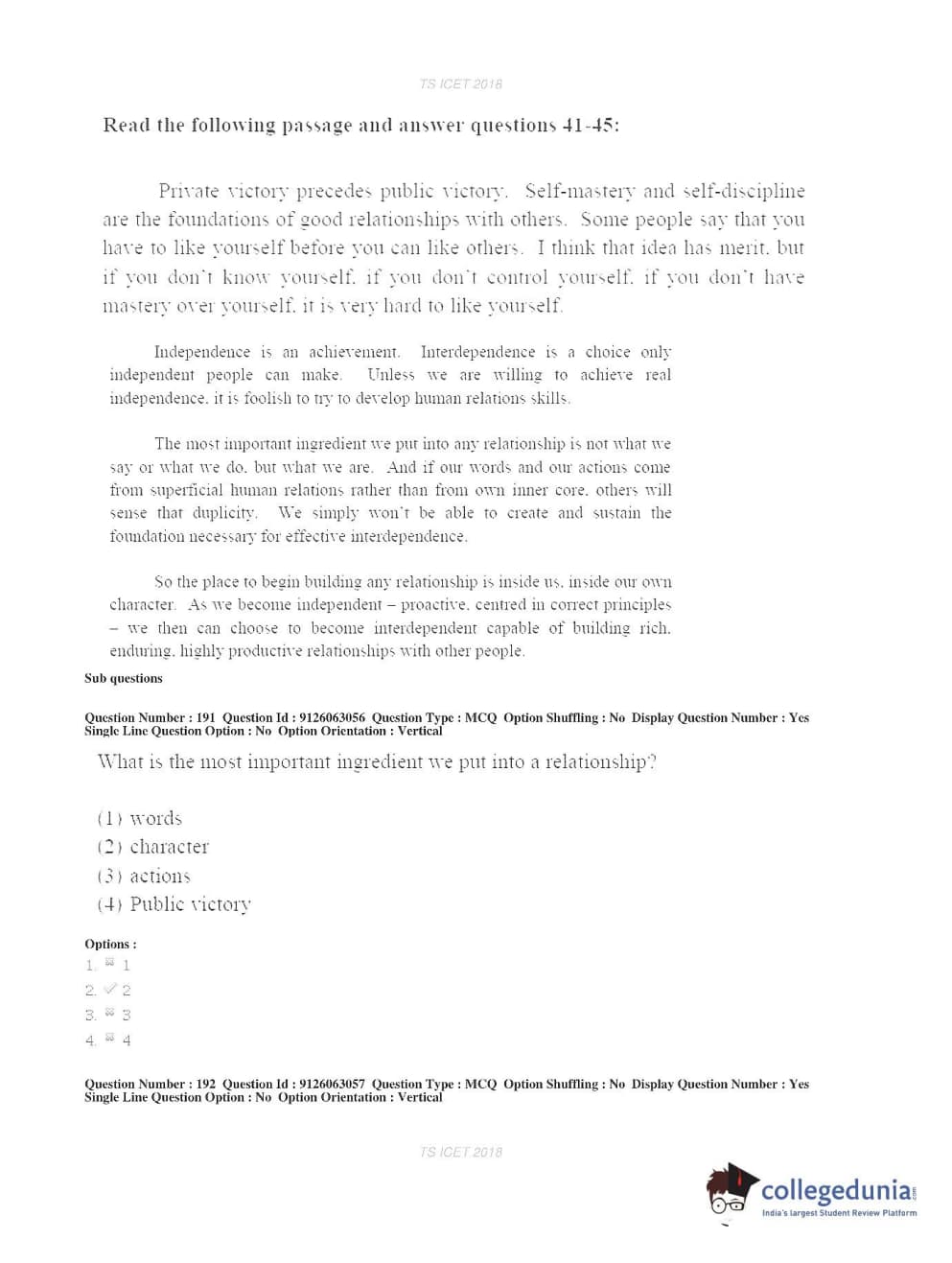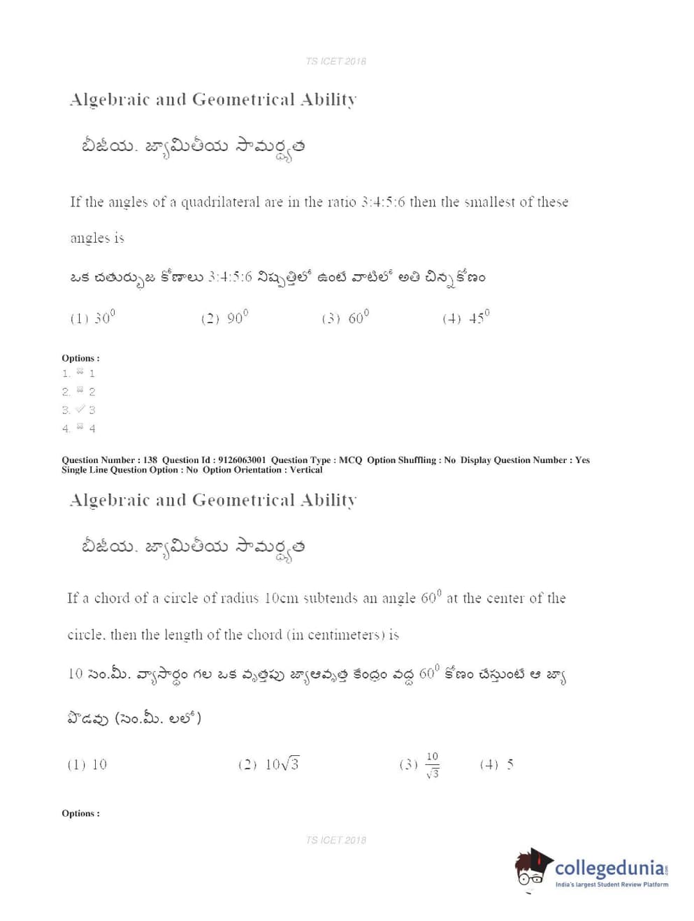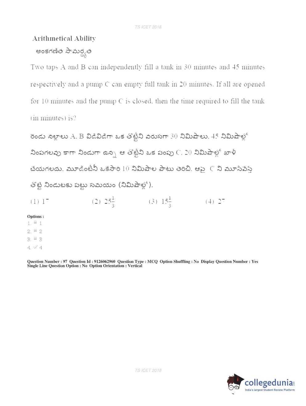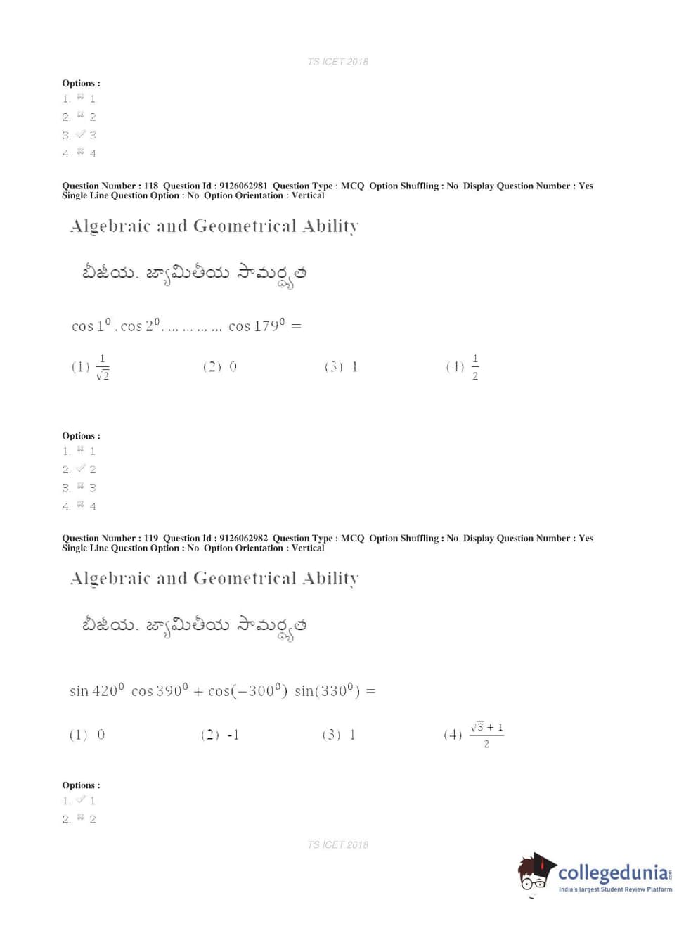 TSICET 2018 Question Paper with Answer Key PDFs Shift 2