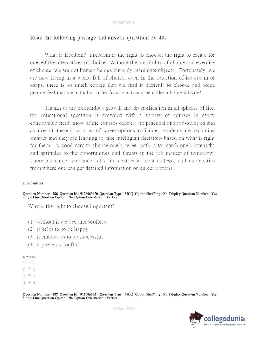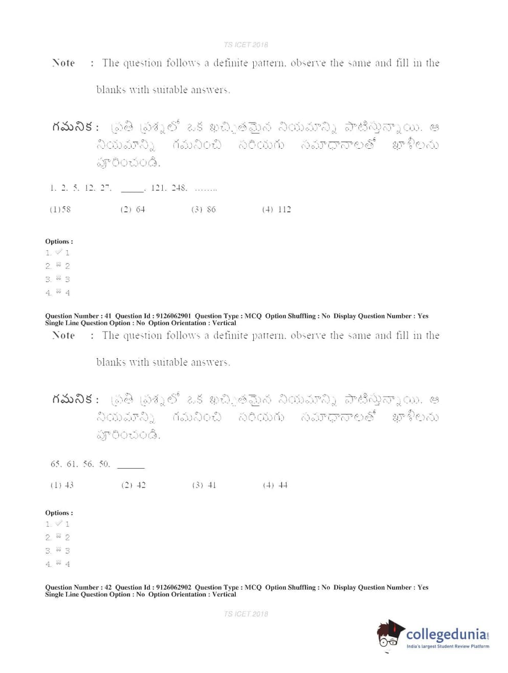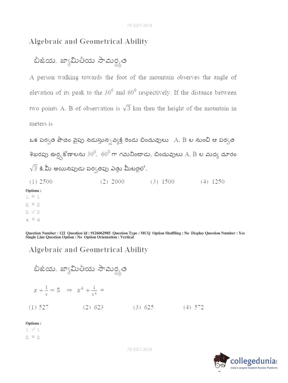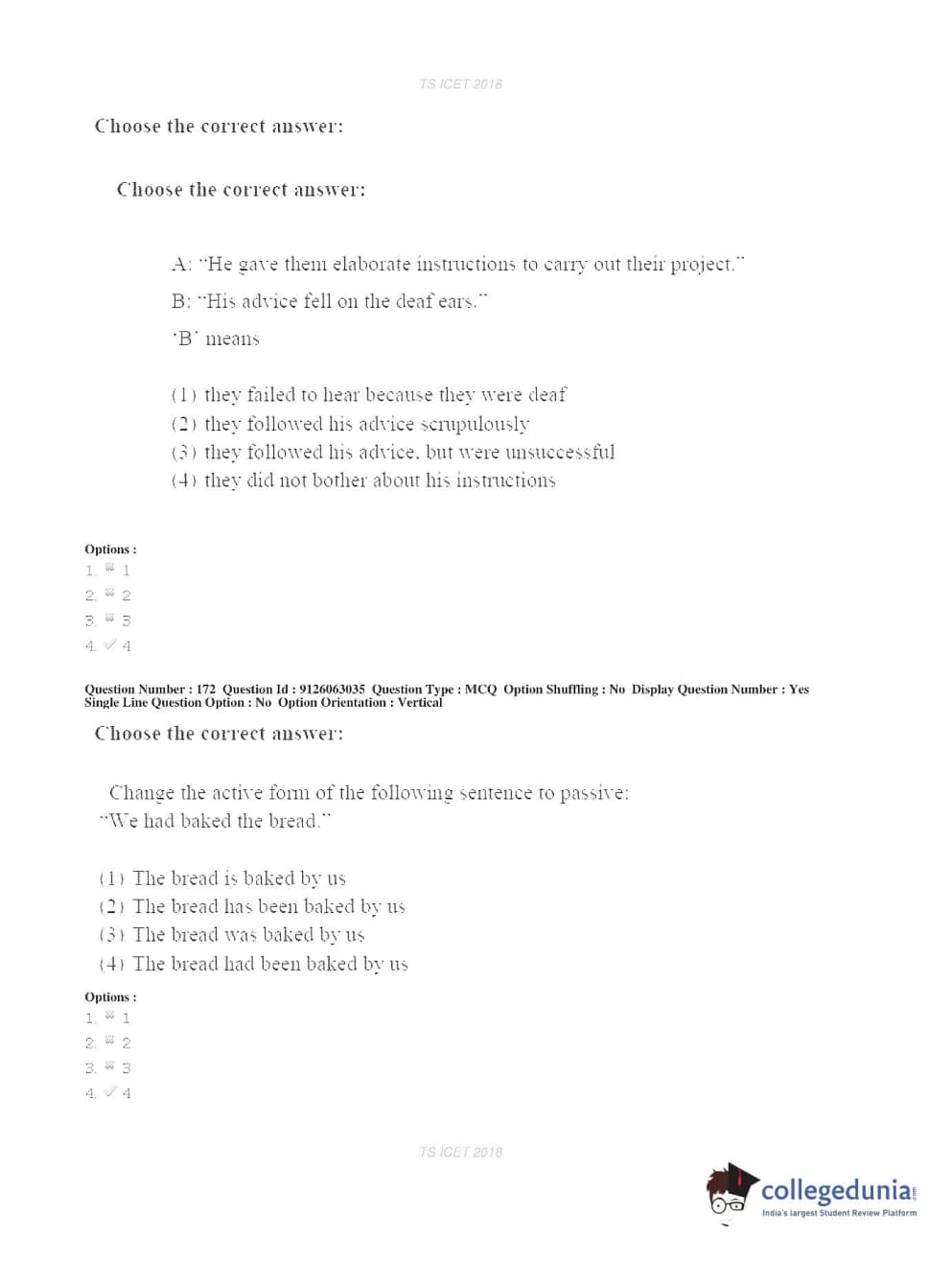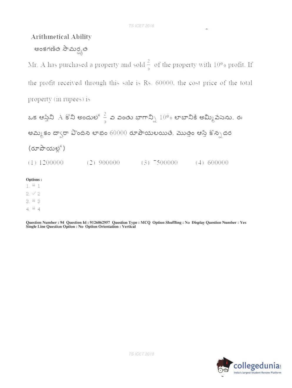 TSICET 2018 Question Paper with Answer Key PDFs Shift 2