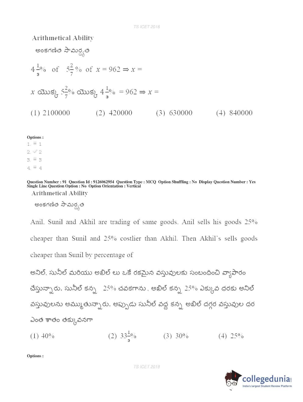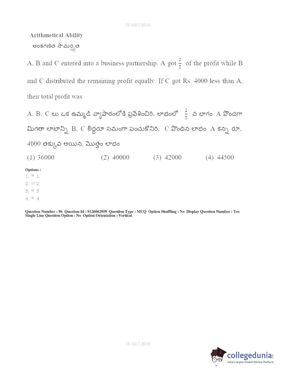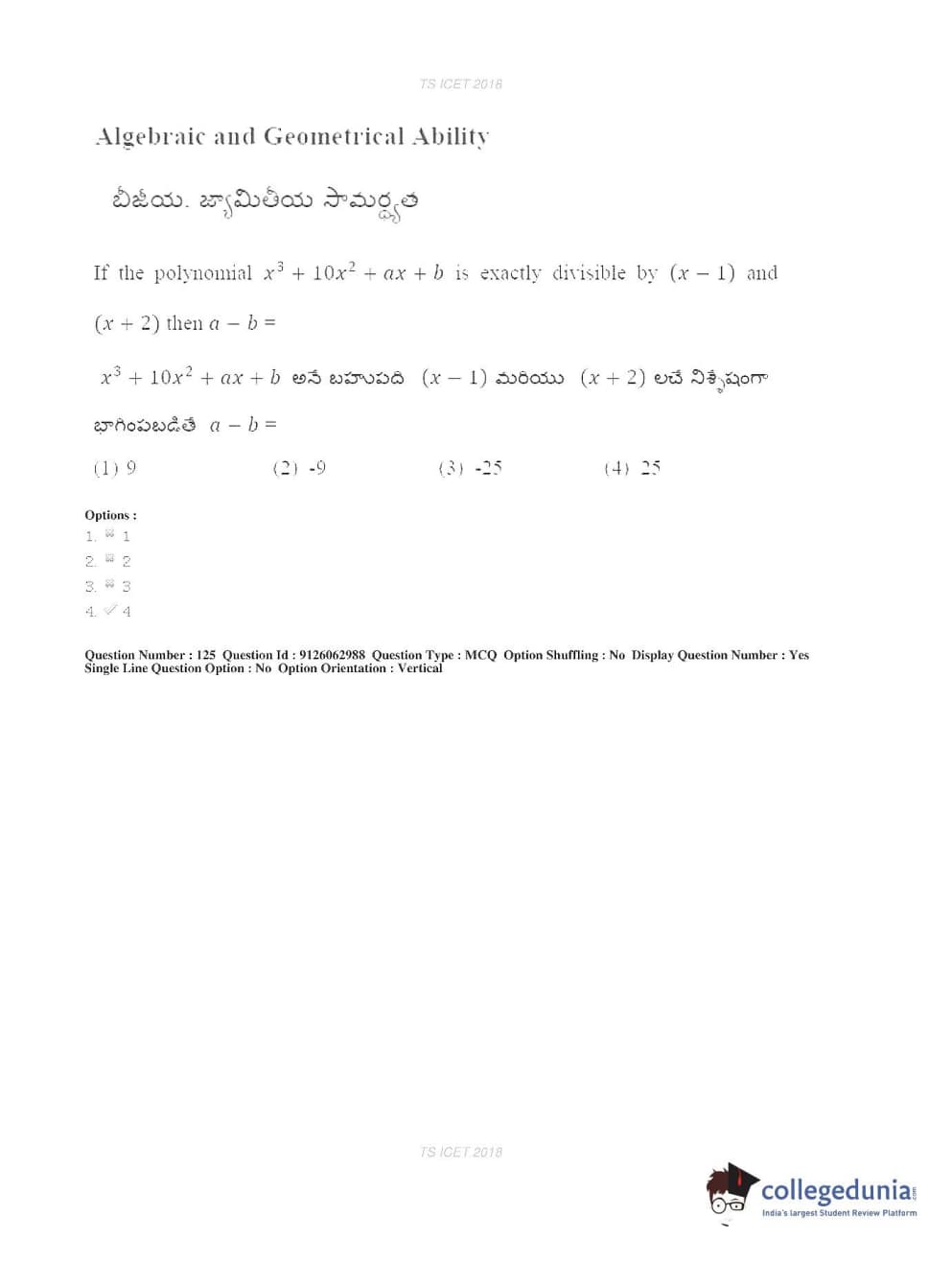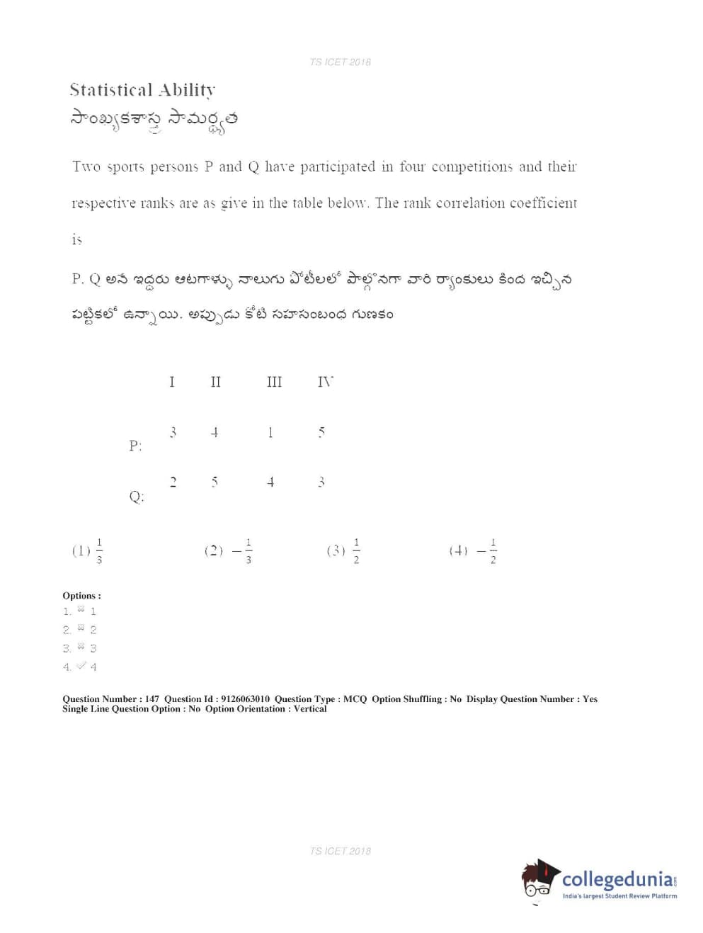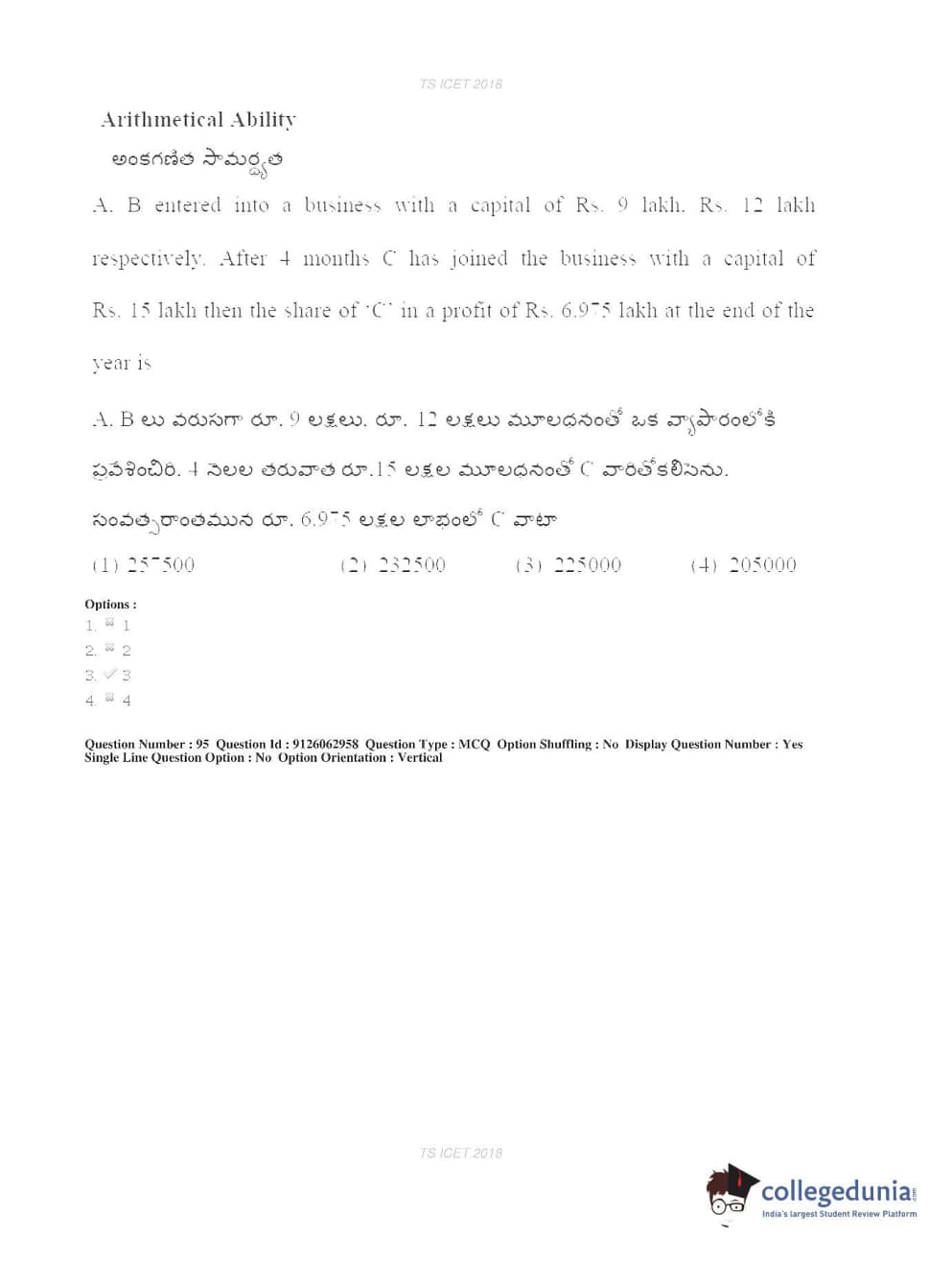 TSICET 2018 Question Paper with Answer Key PDFs Shift 2