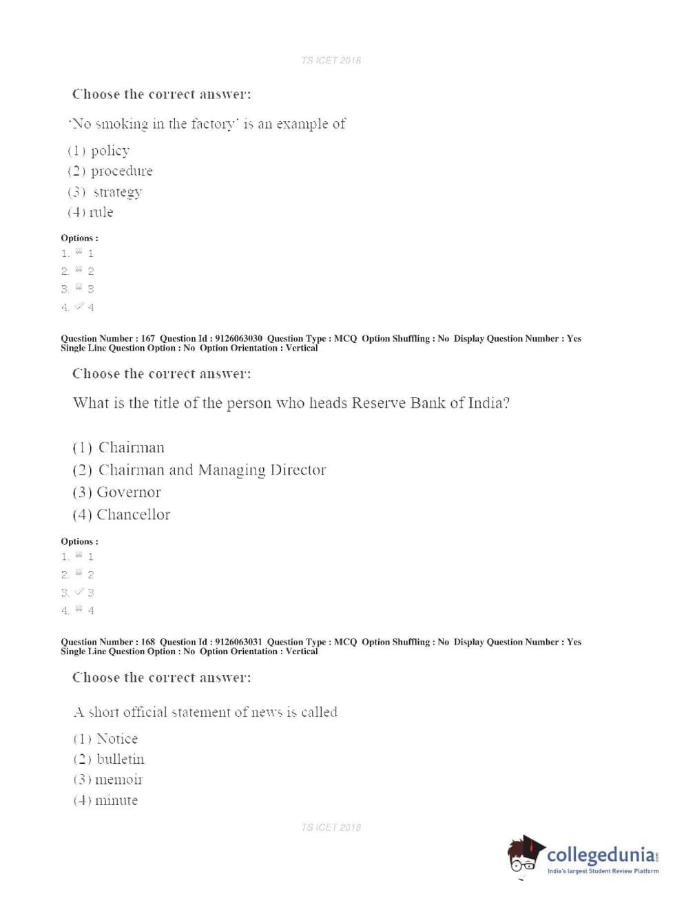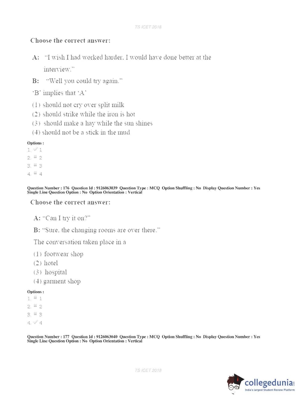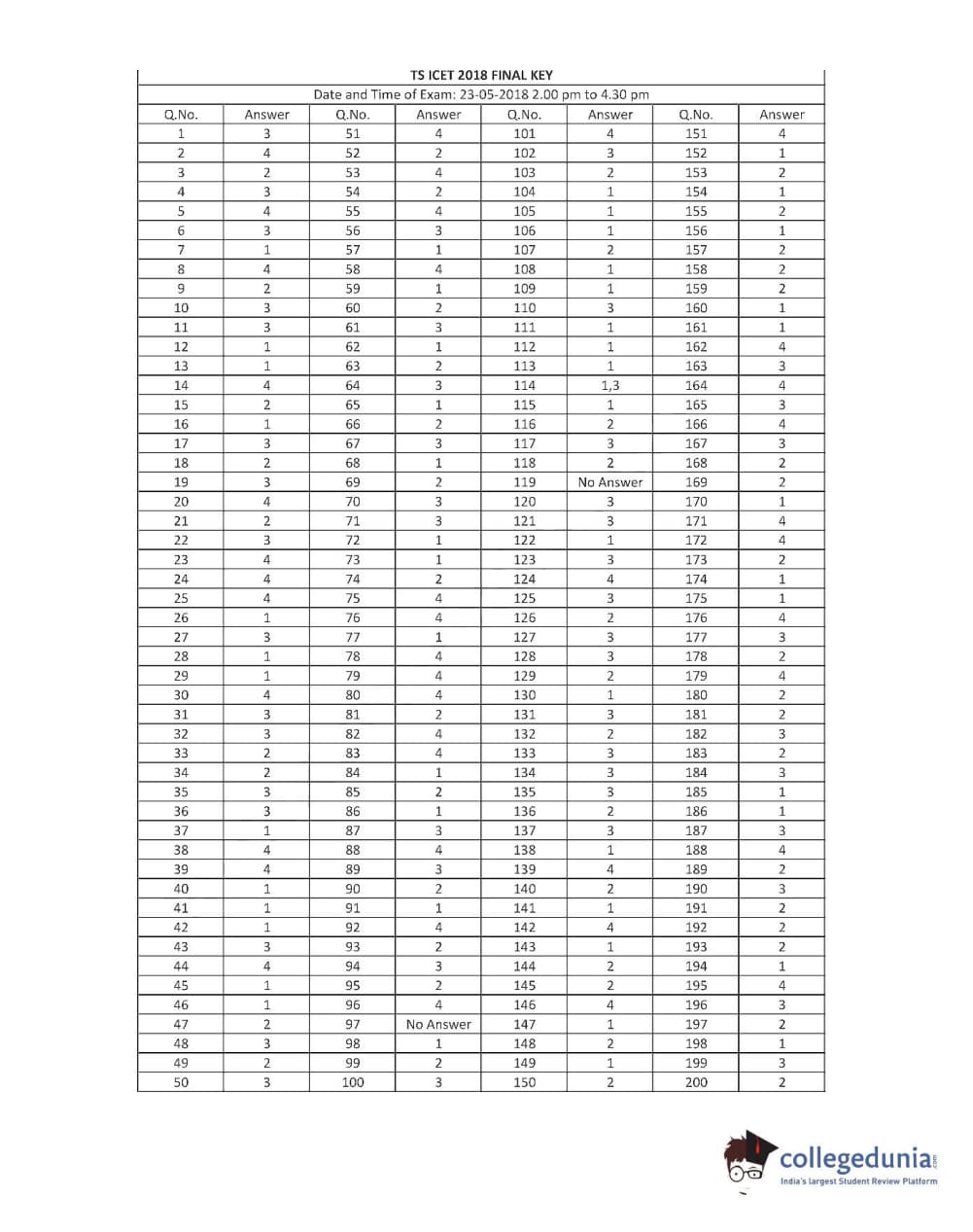 | TSICET 2018 Question Paper PDF | TSICET 2018 Answer Key PDF |