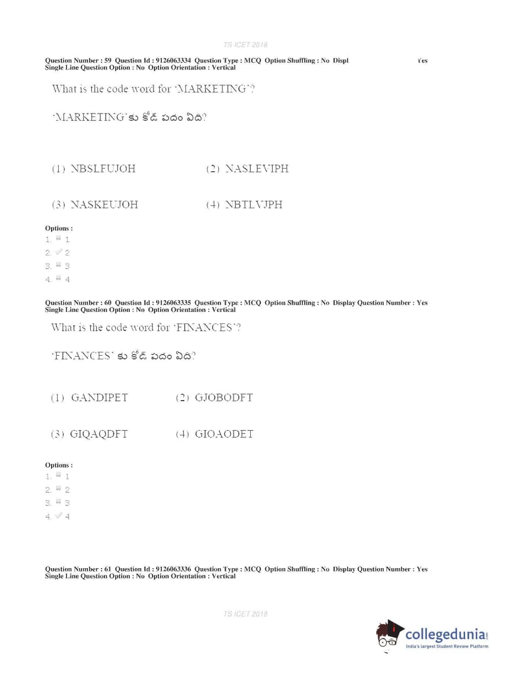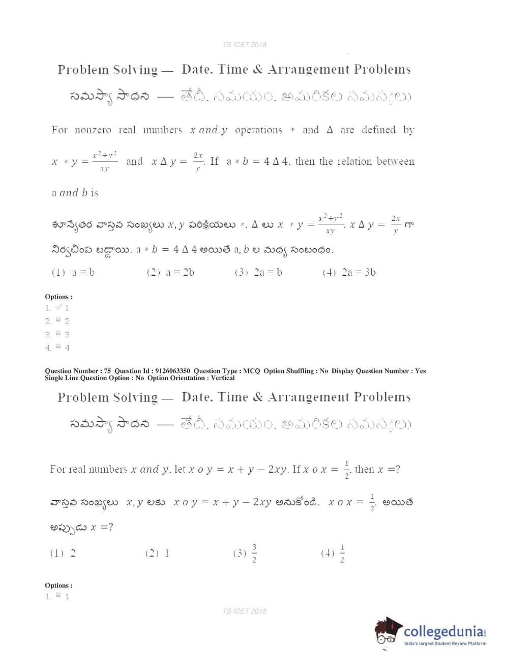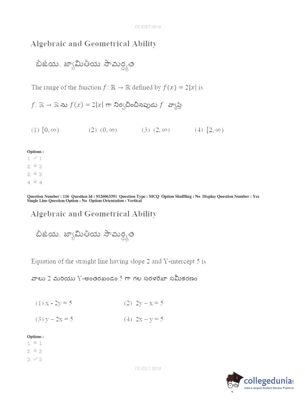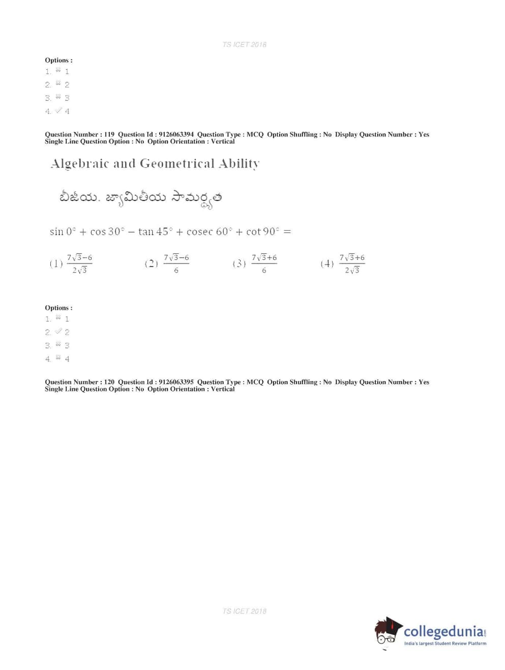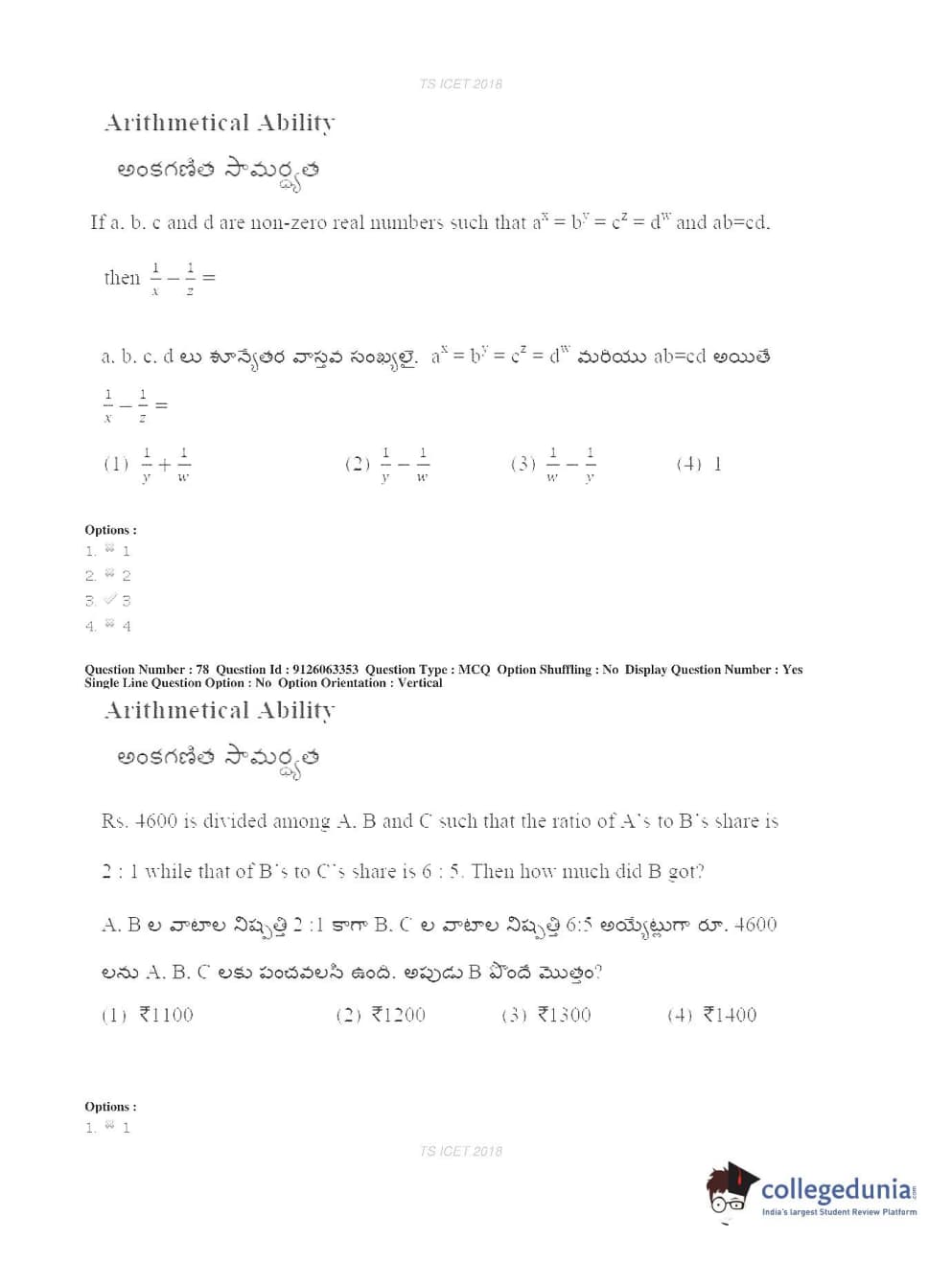 TSICET 2018 Question Paper with Answer Key PDFs in Telugu ,Shift 1