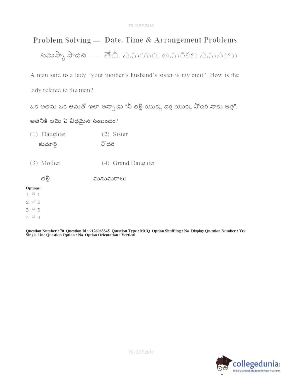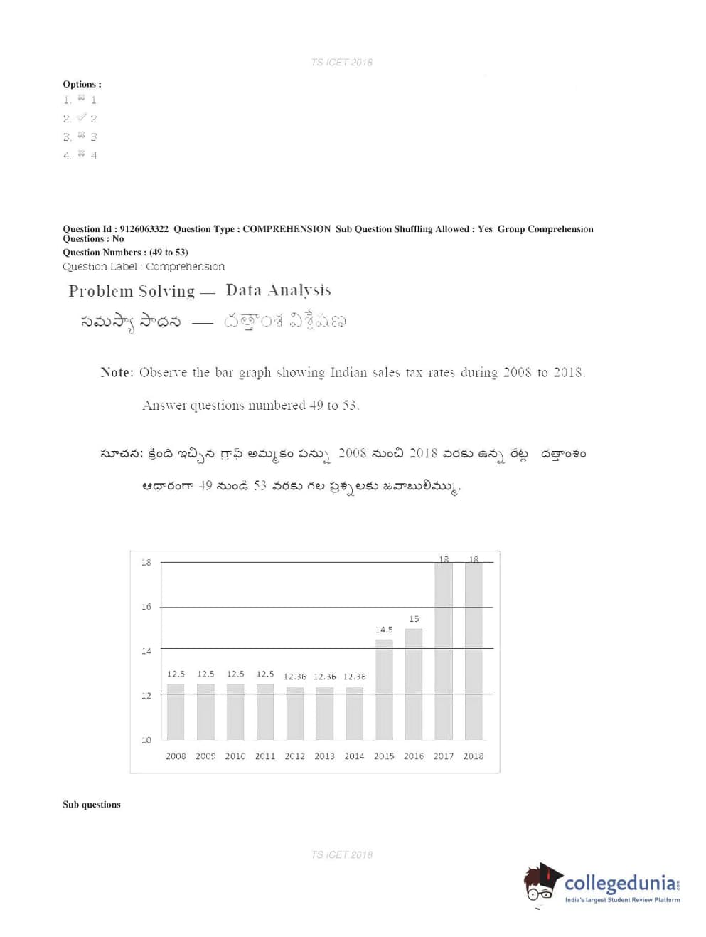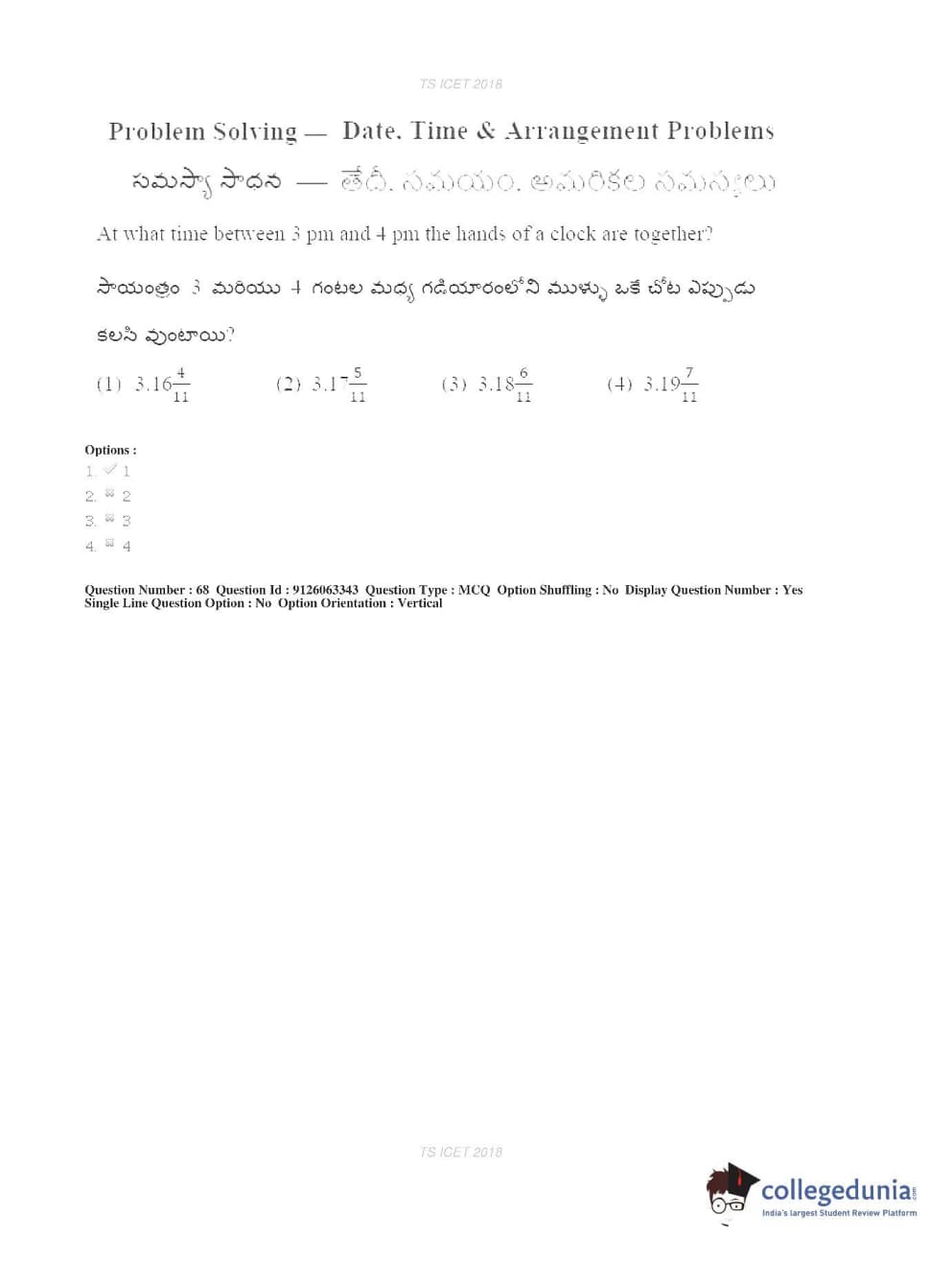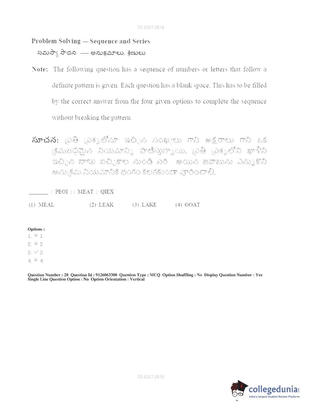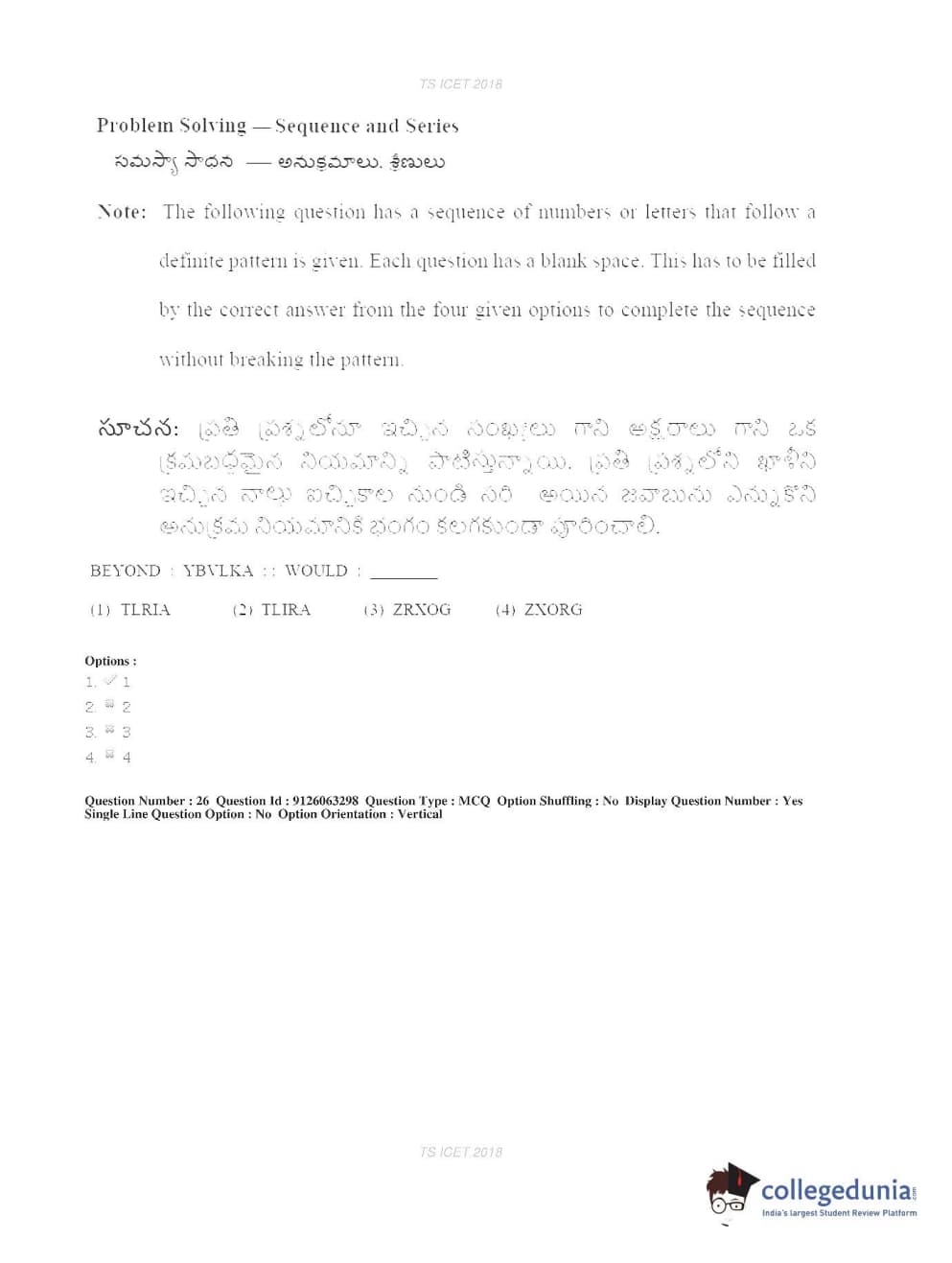 TSICET 2018 Question Paper with Answer Key PDFs in Telugu ,Shift 1