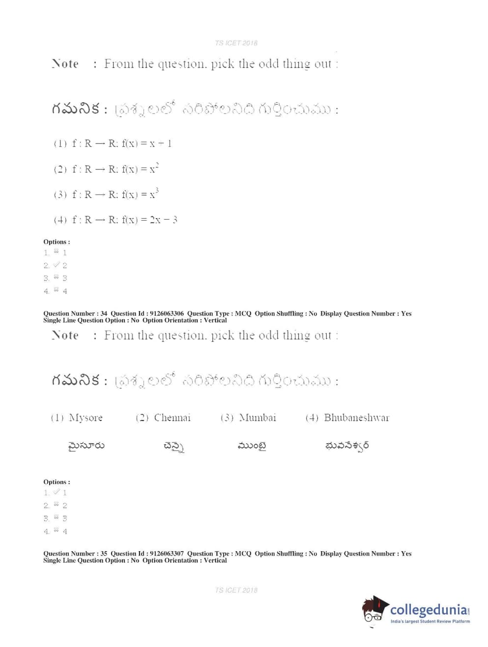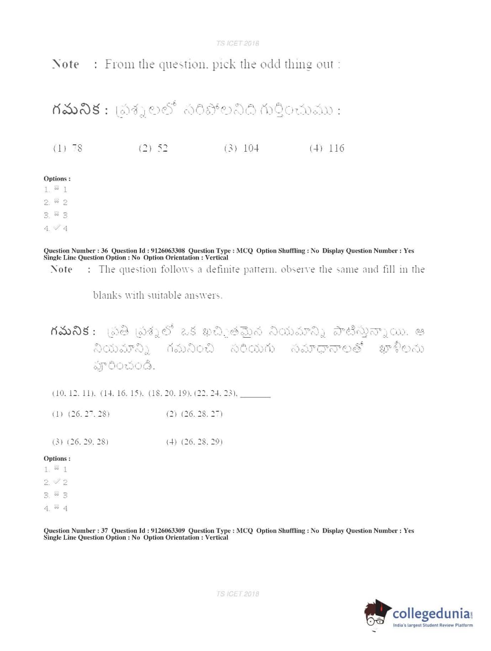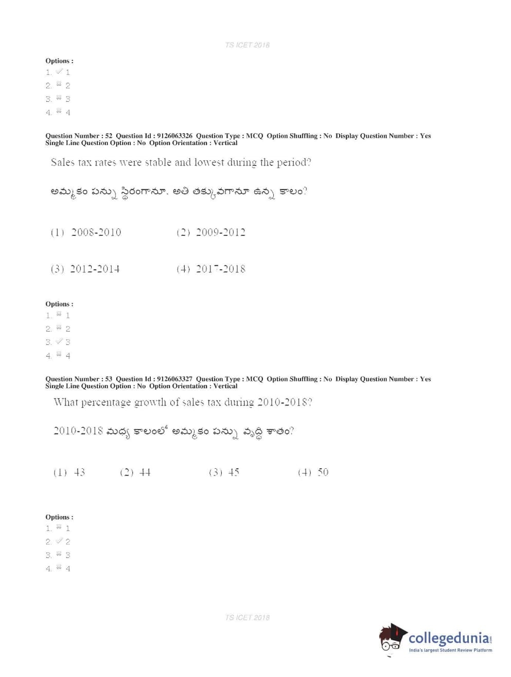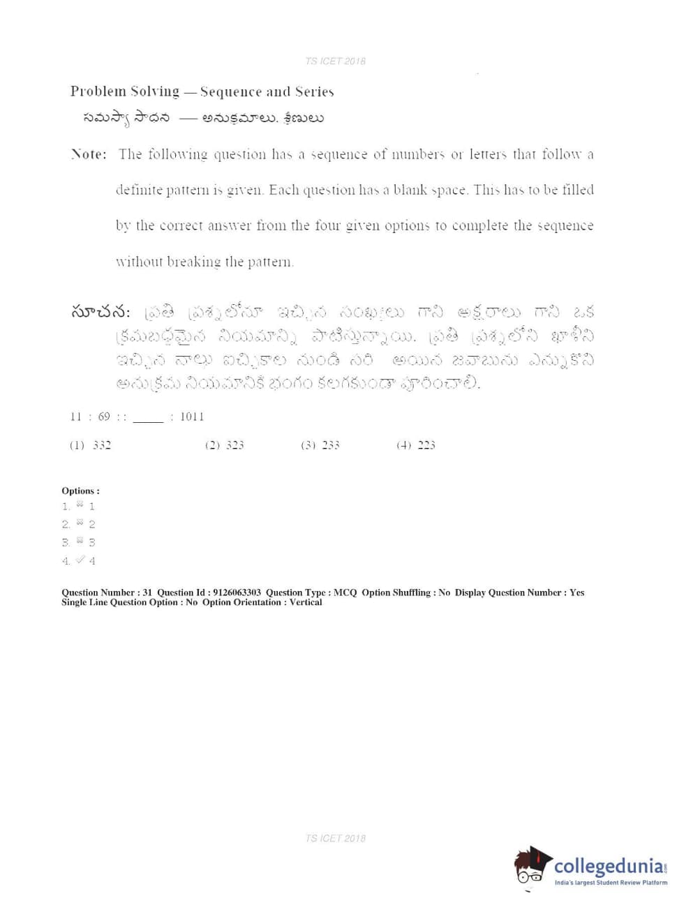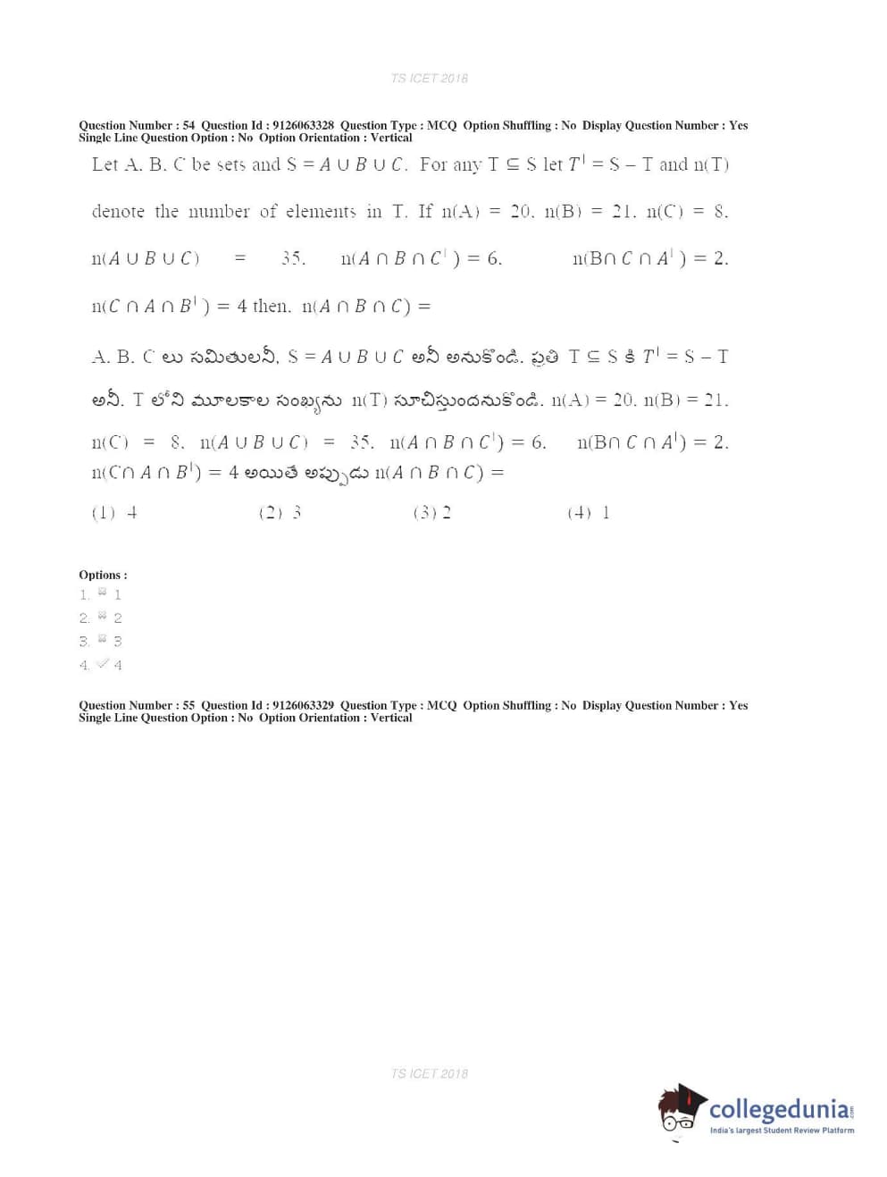 TSICET 2018 Question Paper with Answer Key PDFs in Telugu ,Shift 1