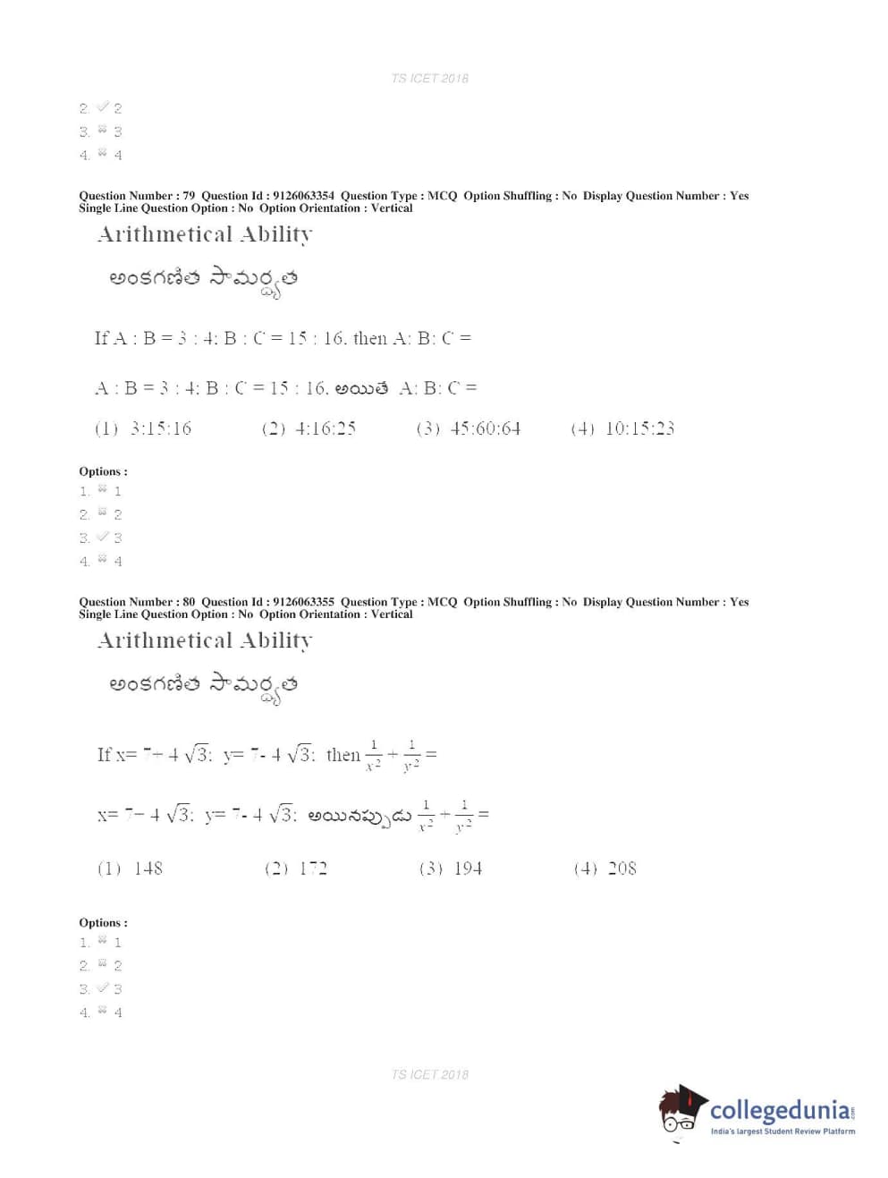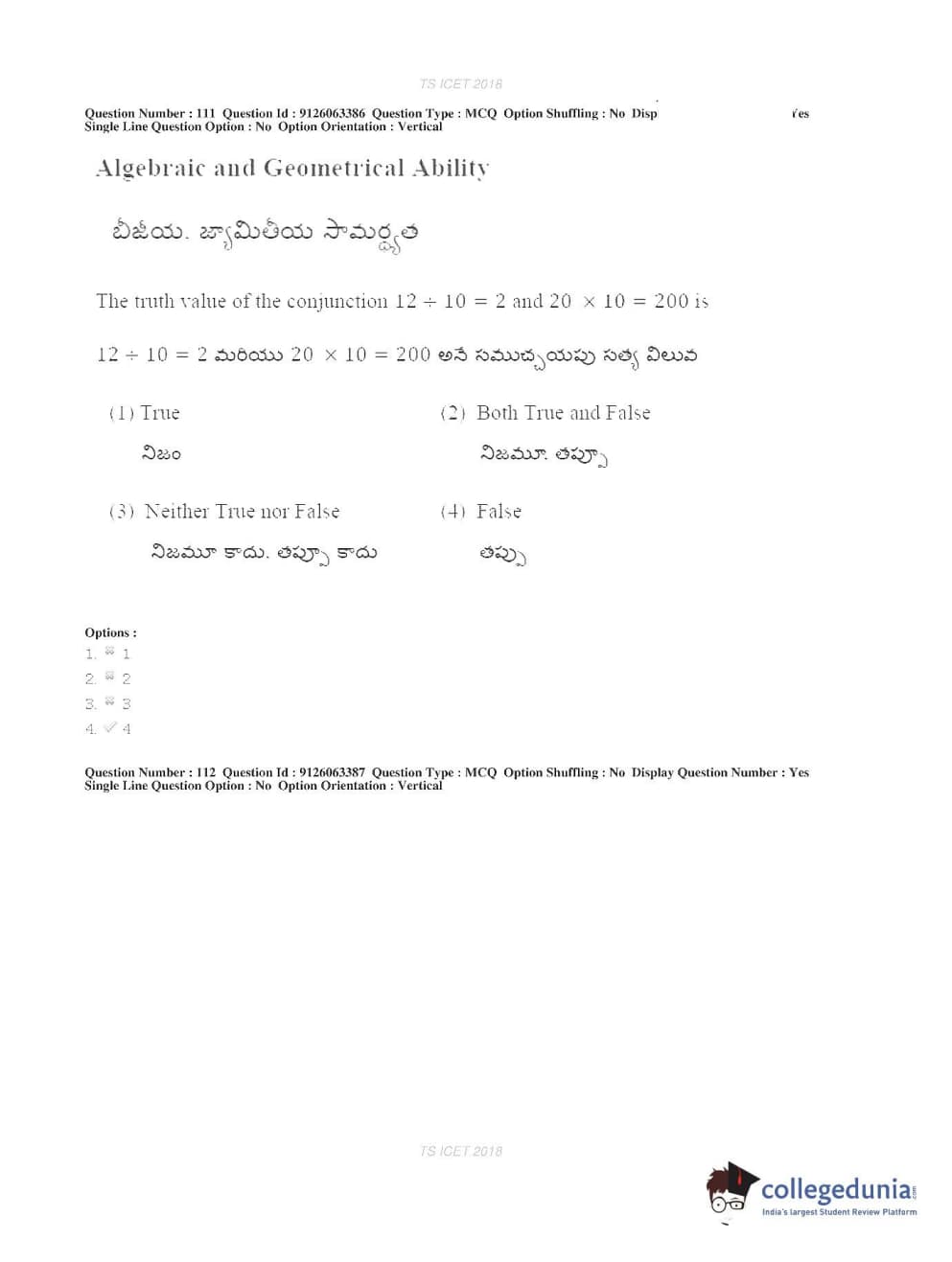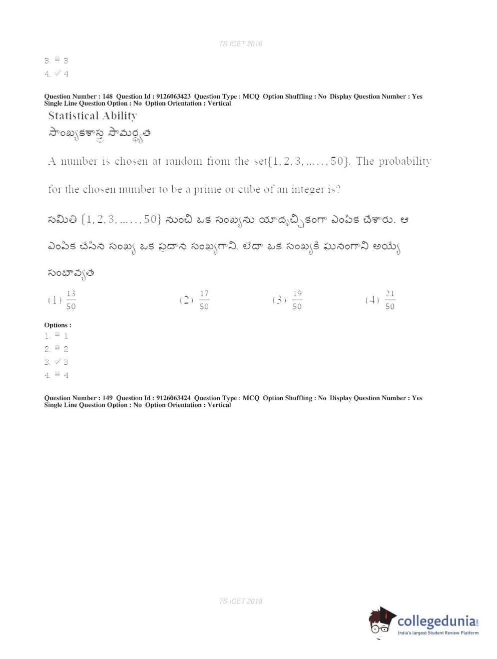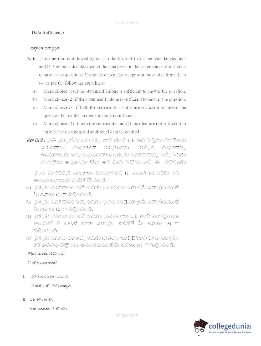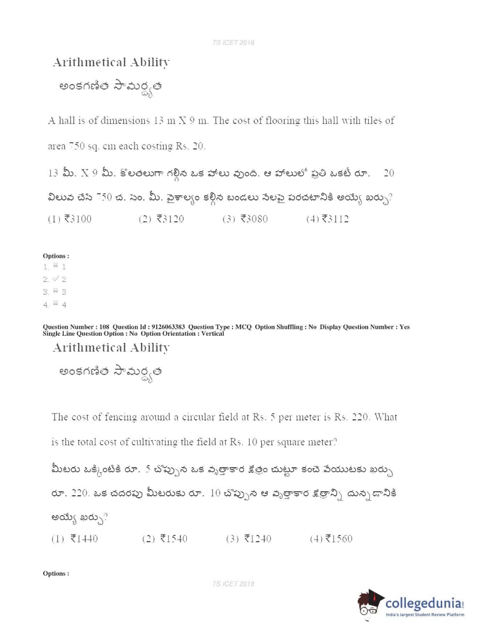 TSICET 2018 Question Paper with Answer Key PDFs in Telugu ,Shift 1