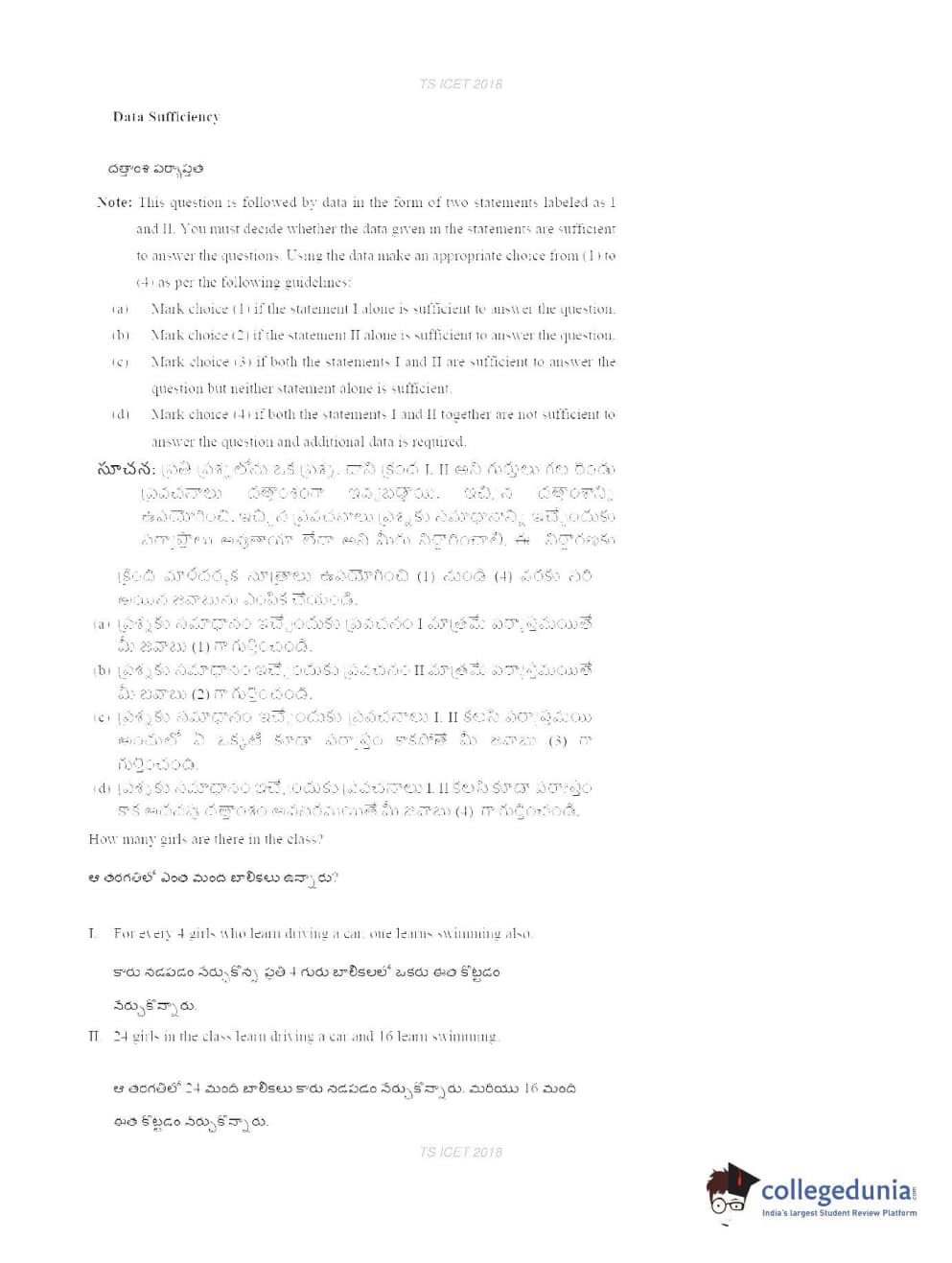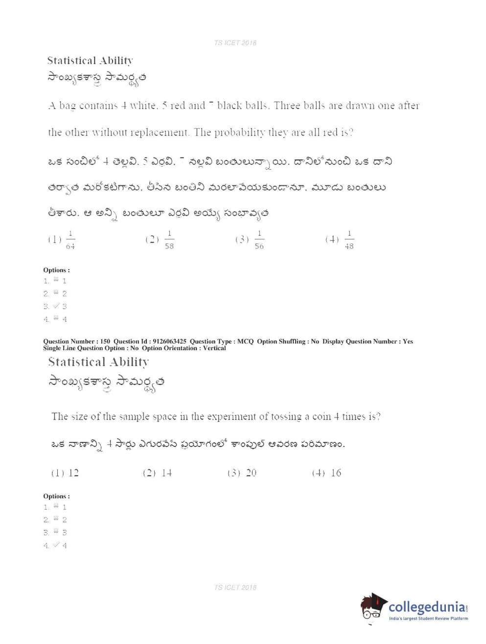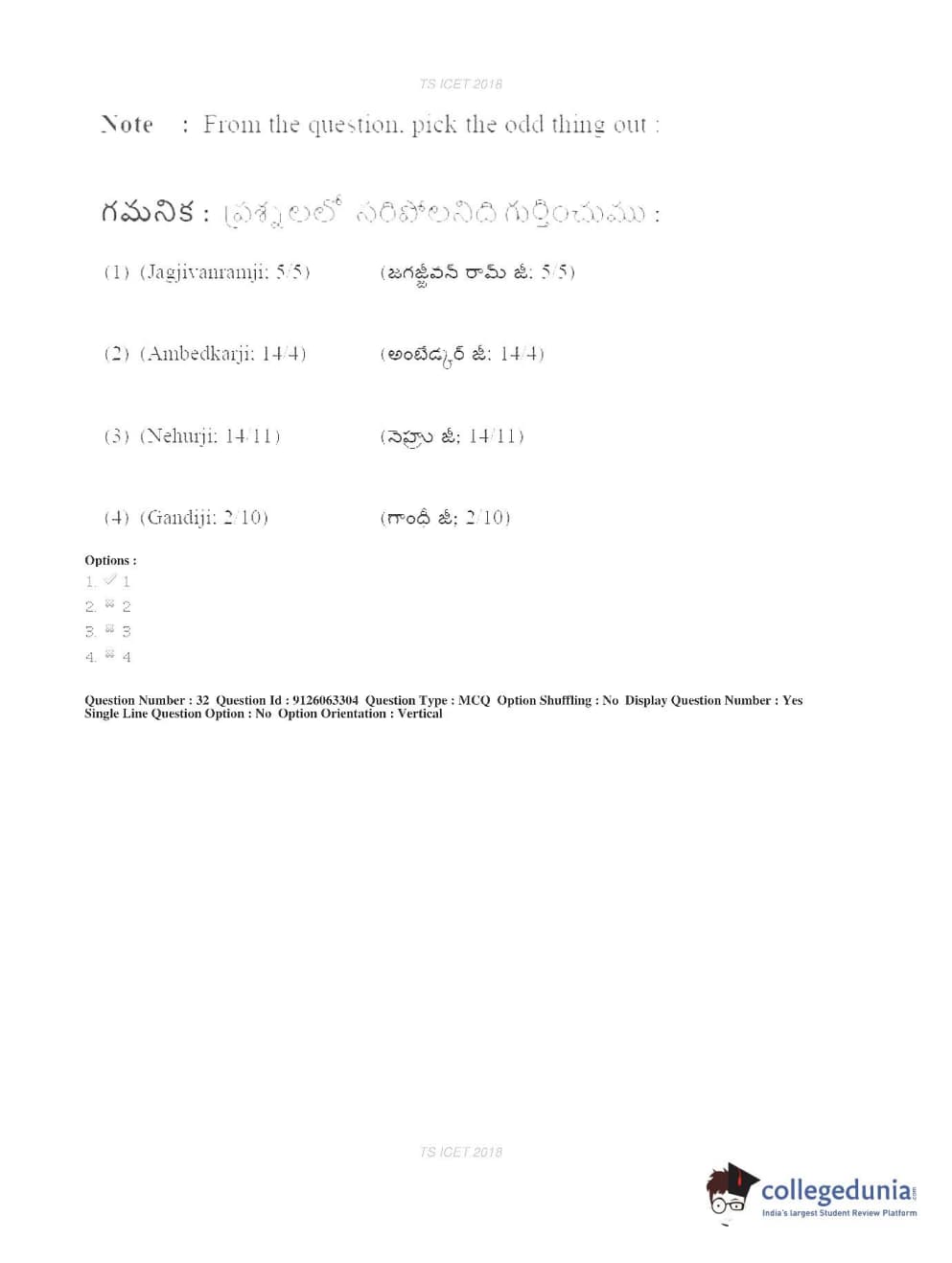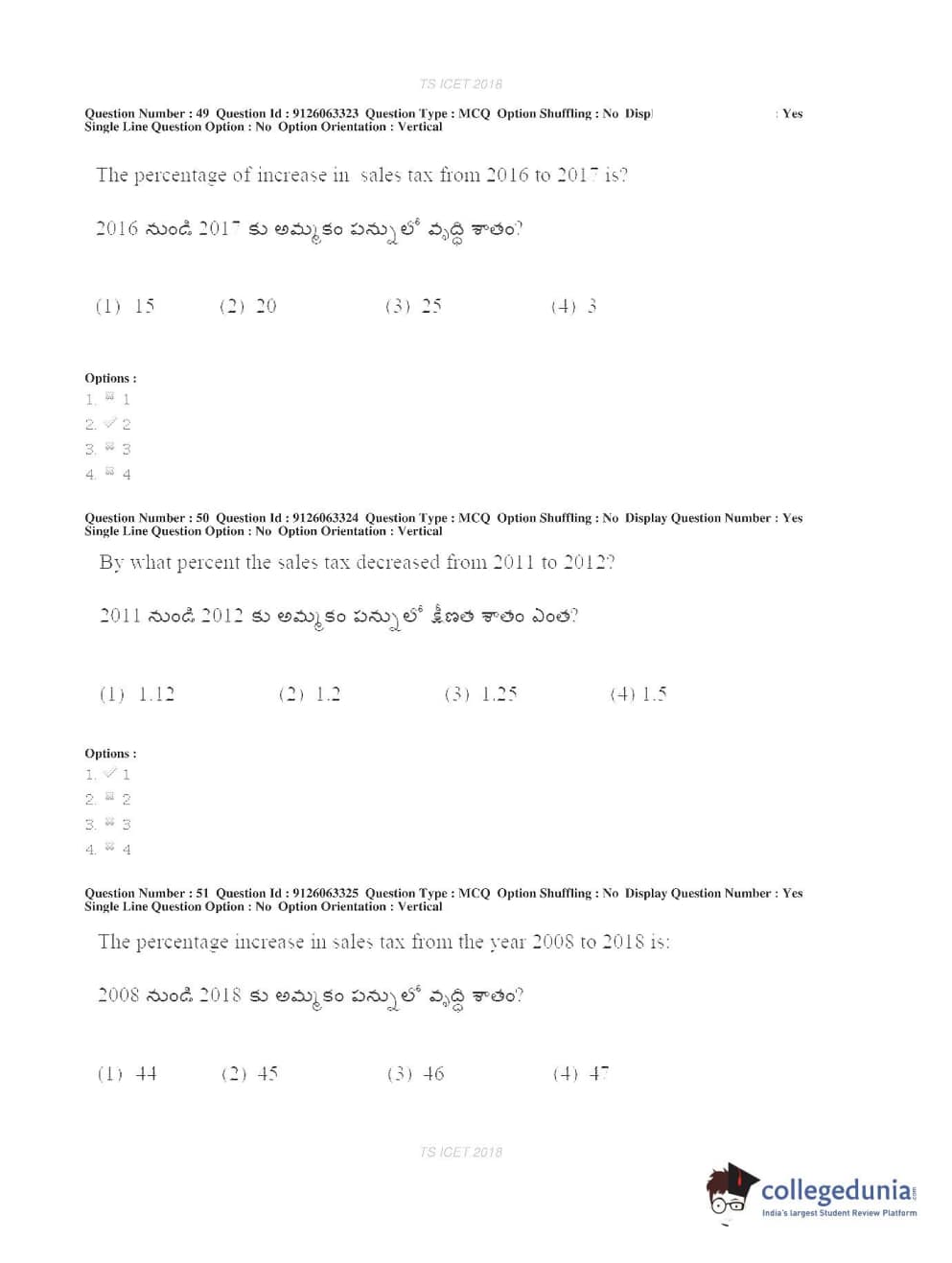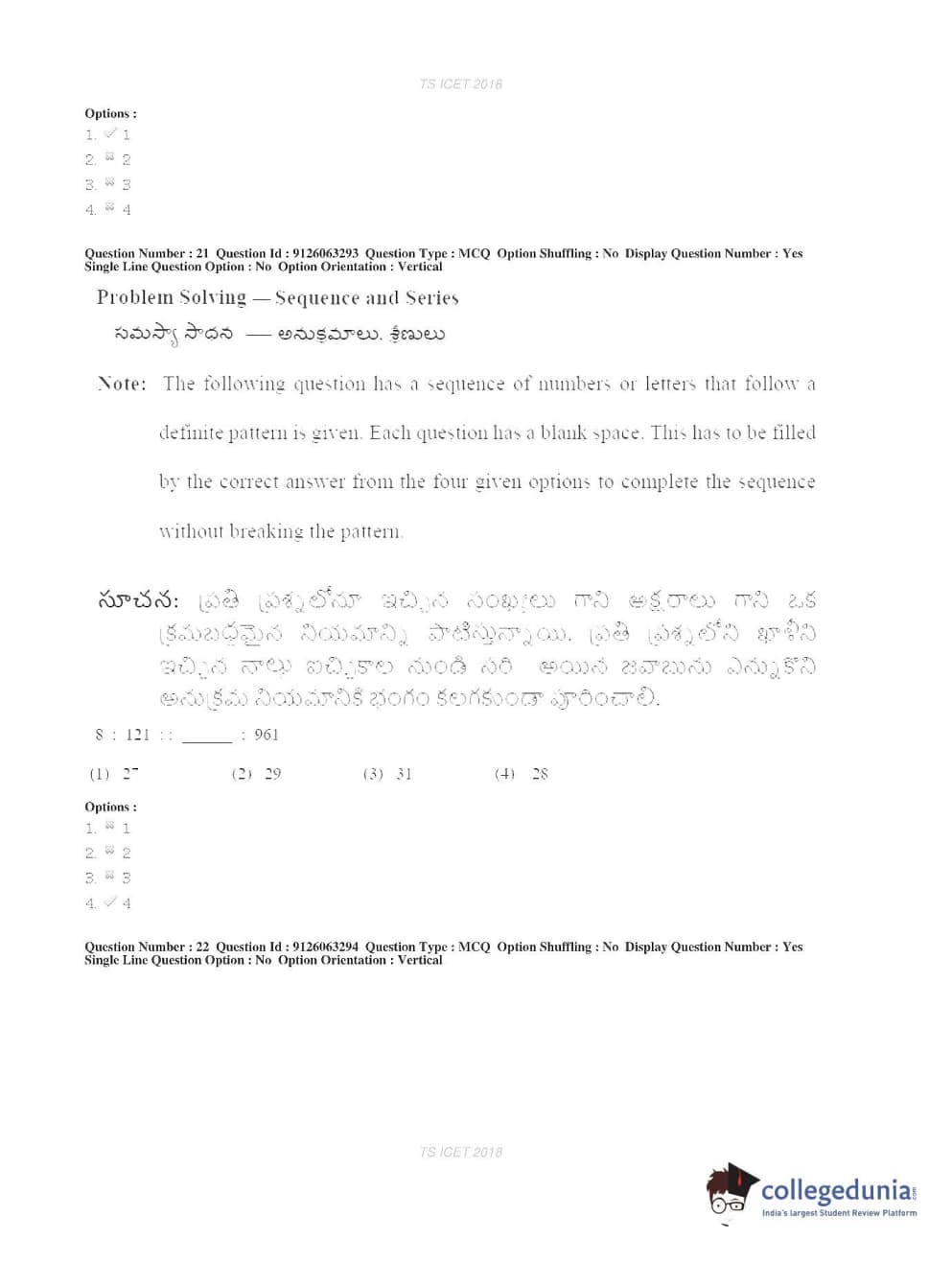 TSICET 2018 Question Paper with Answer Key PDFs in Telugu ,Shift 1