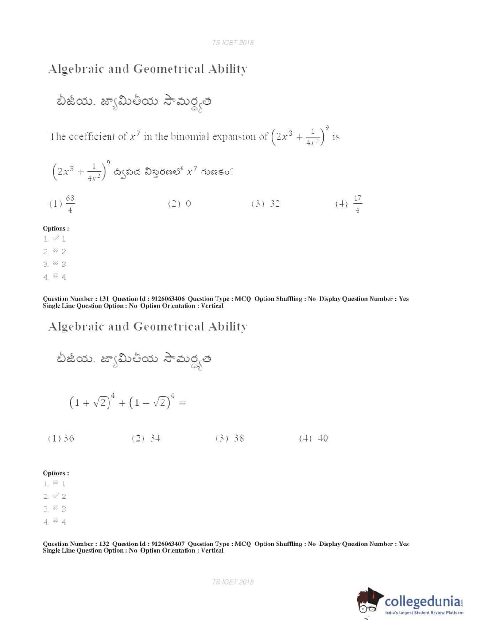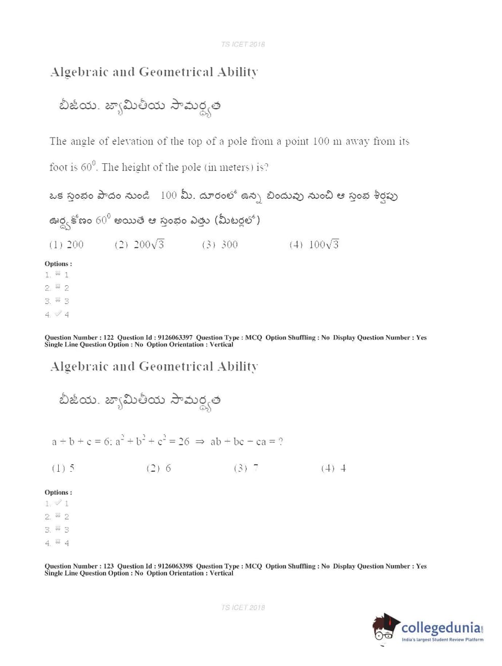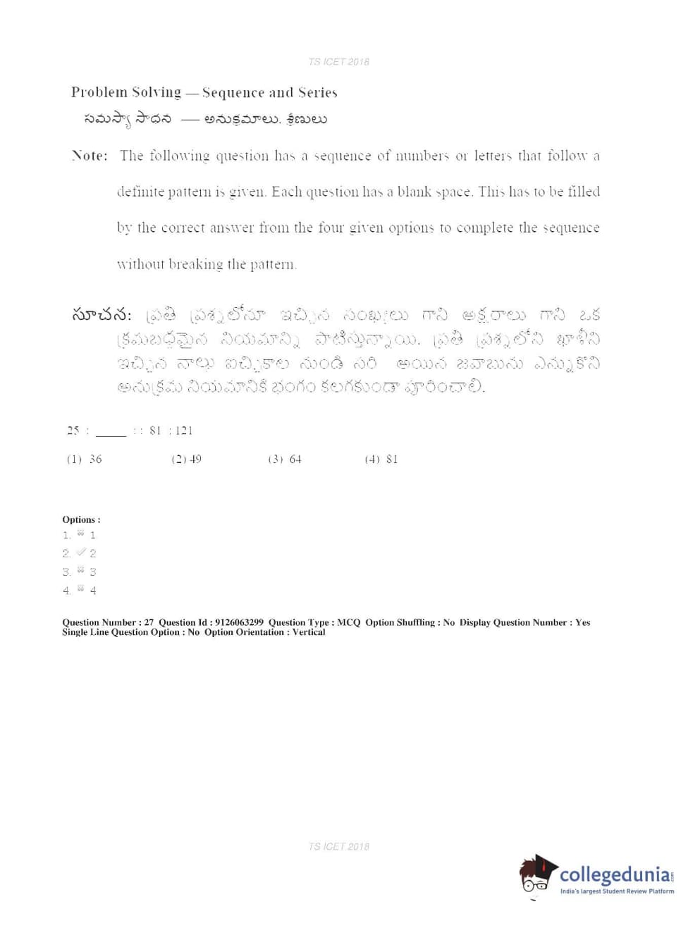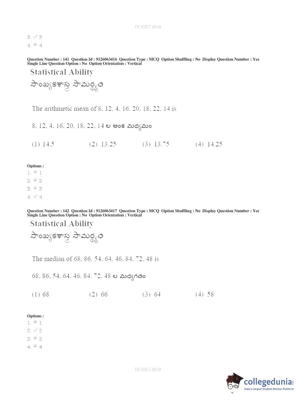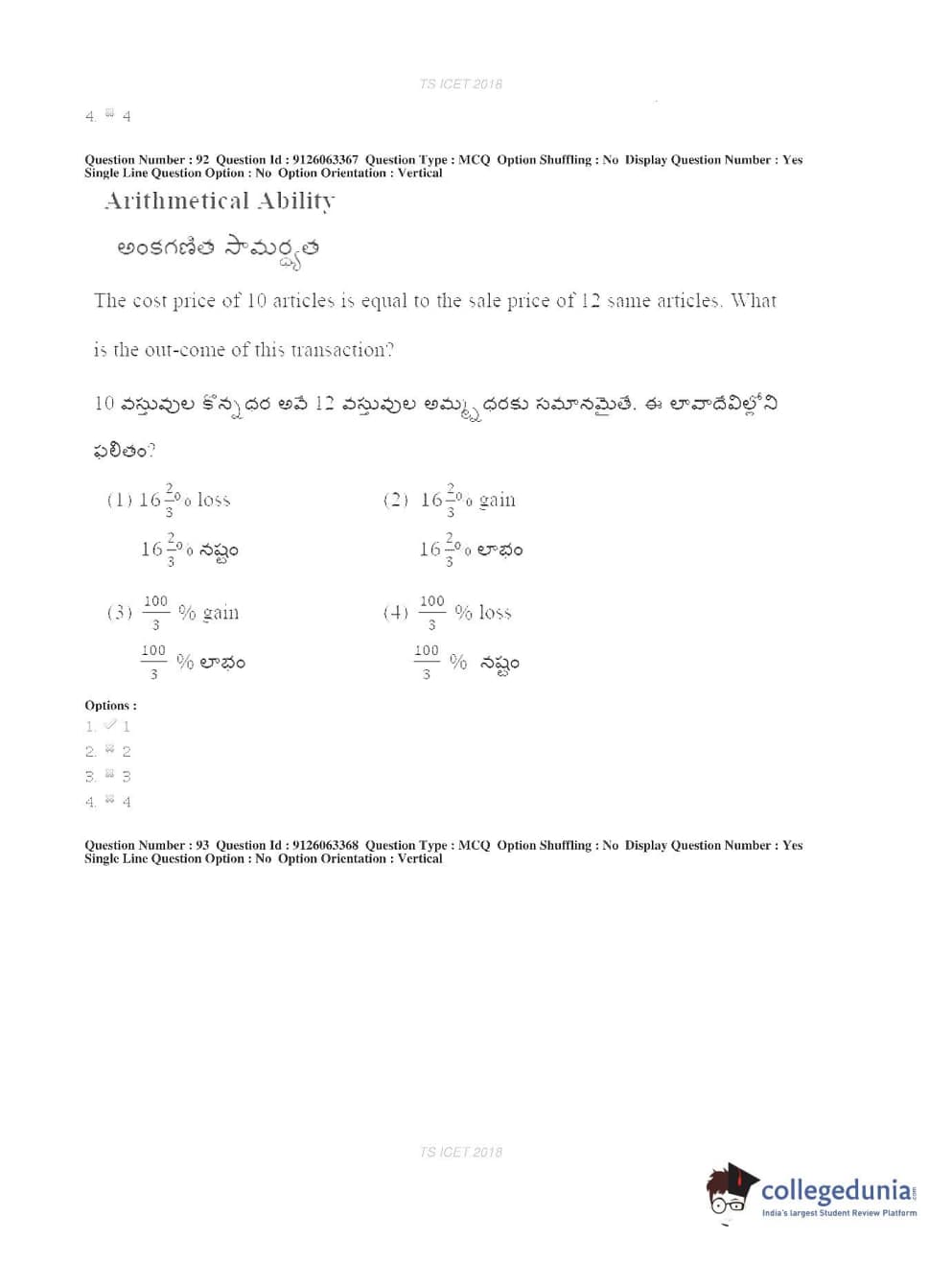 TSICET 2018 Question Paper with Answer Key PDFs in Telugu ,Shift 1