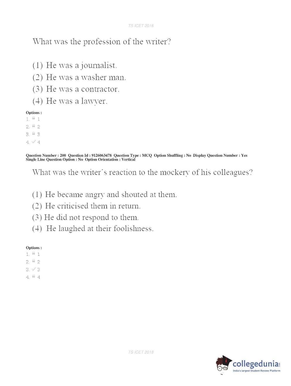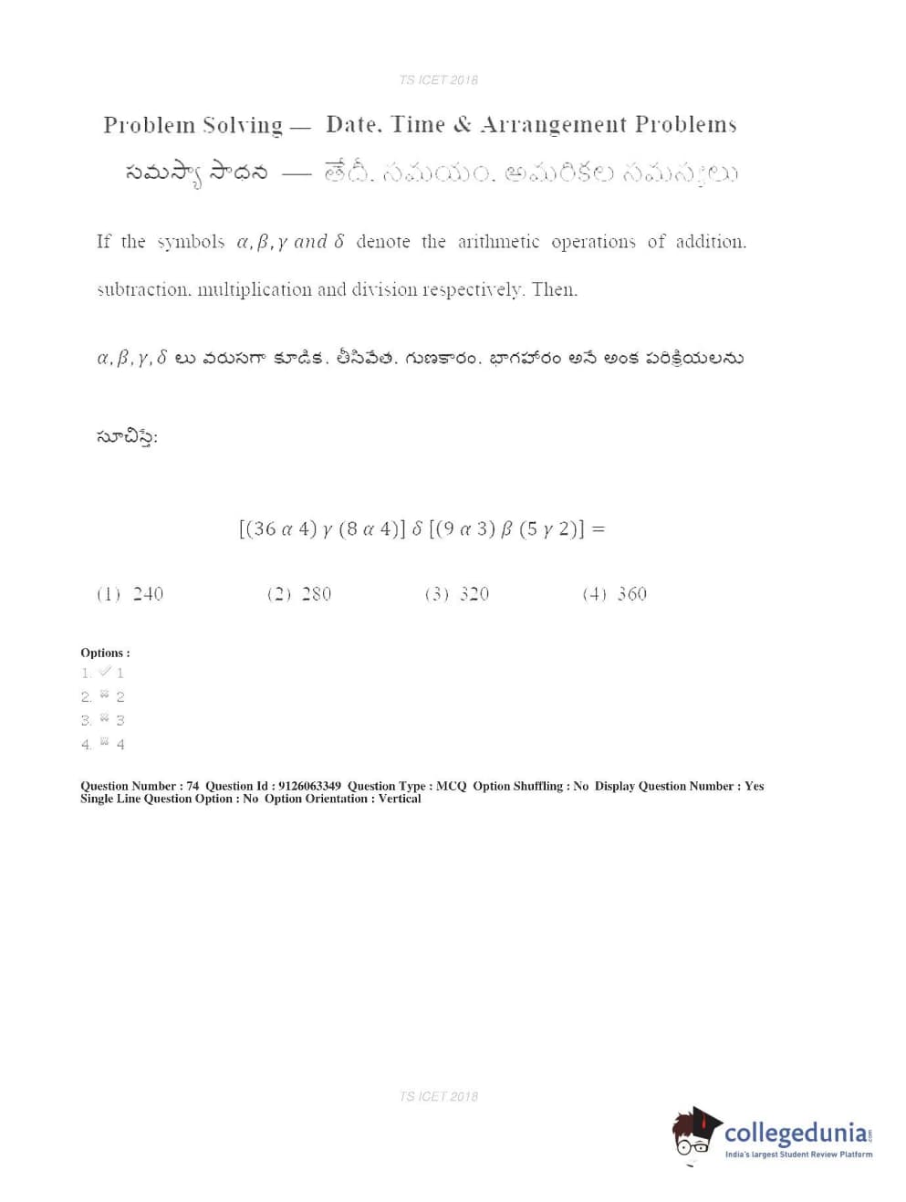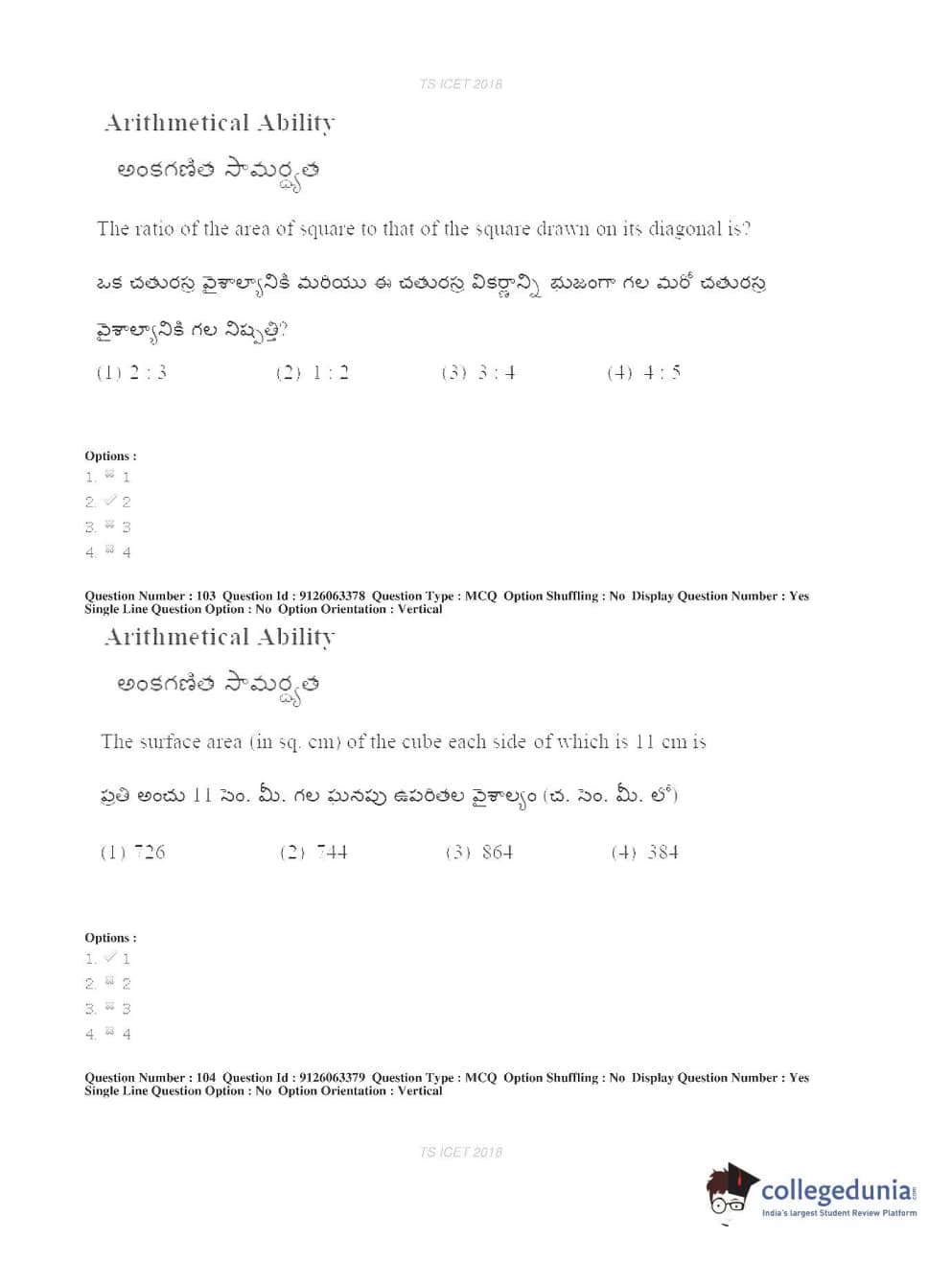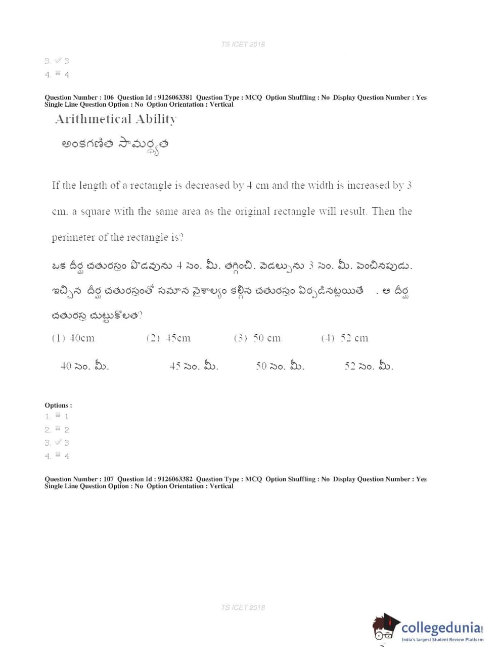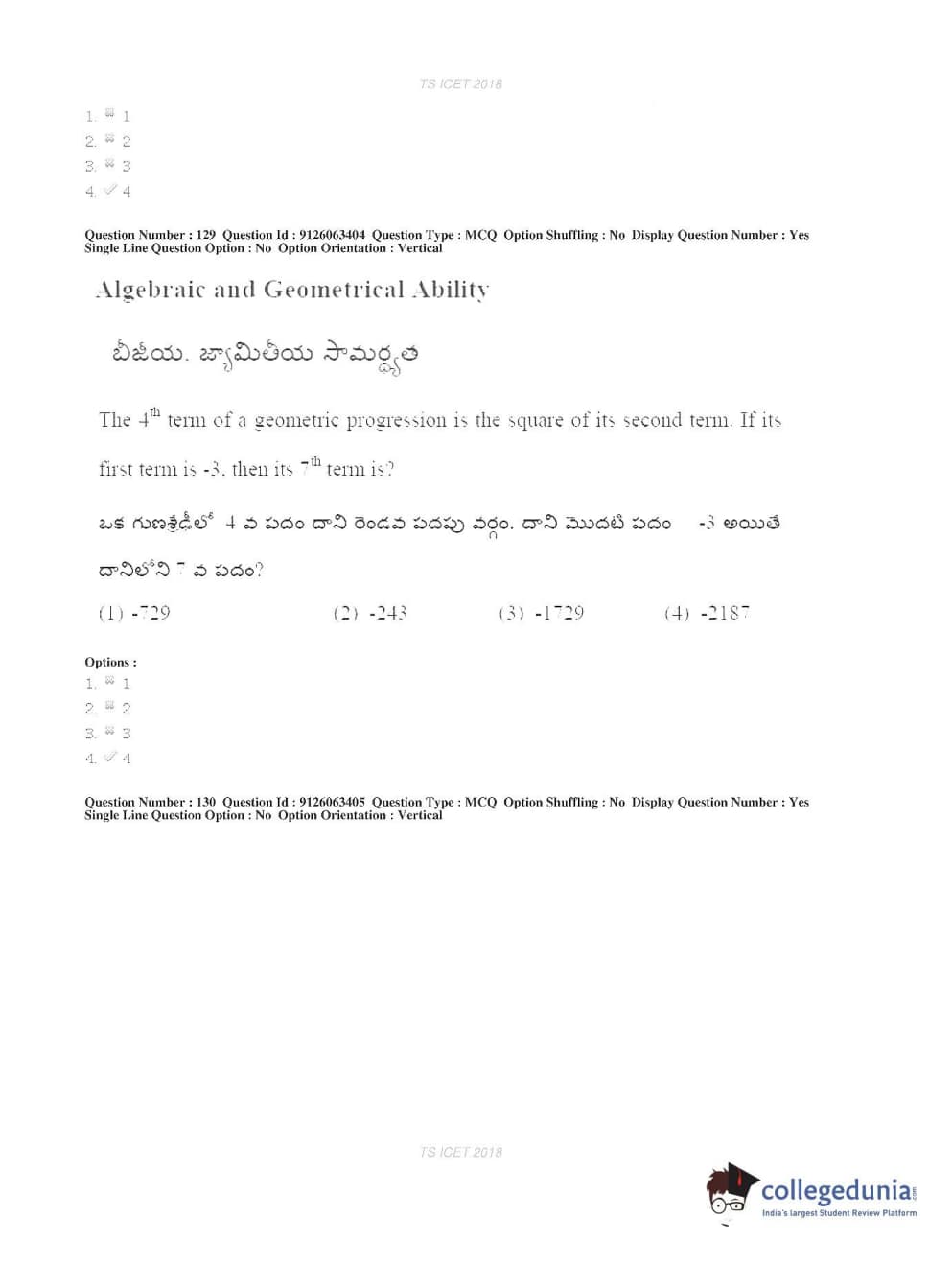 TSICET 2018 Question Paper with Answer Key PDFs in Telugu ,Shift 1
