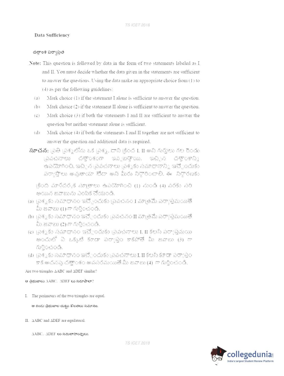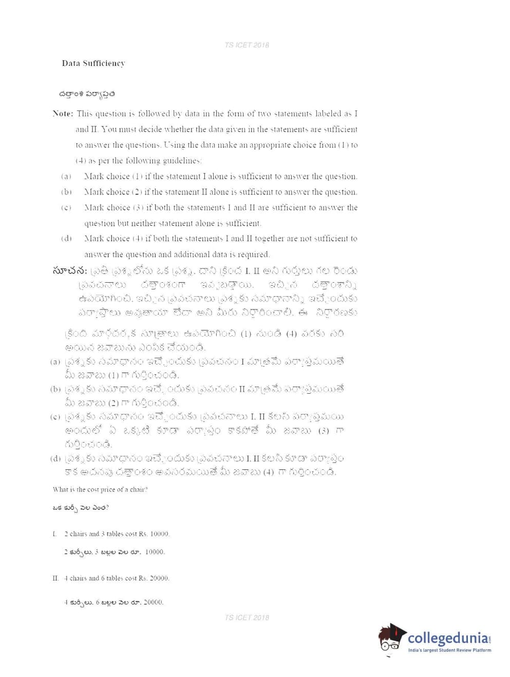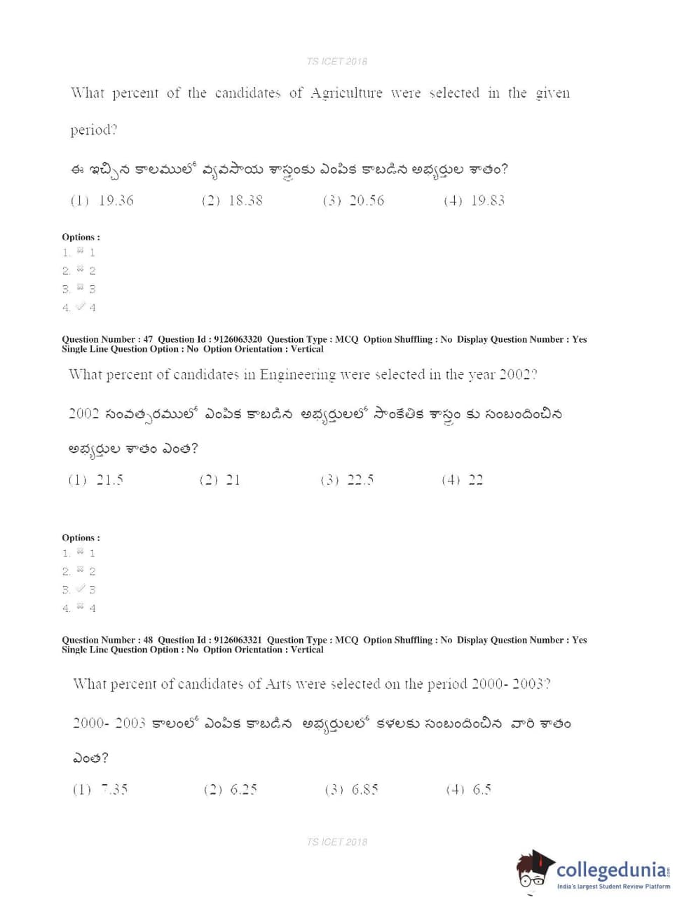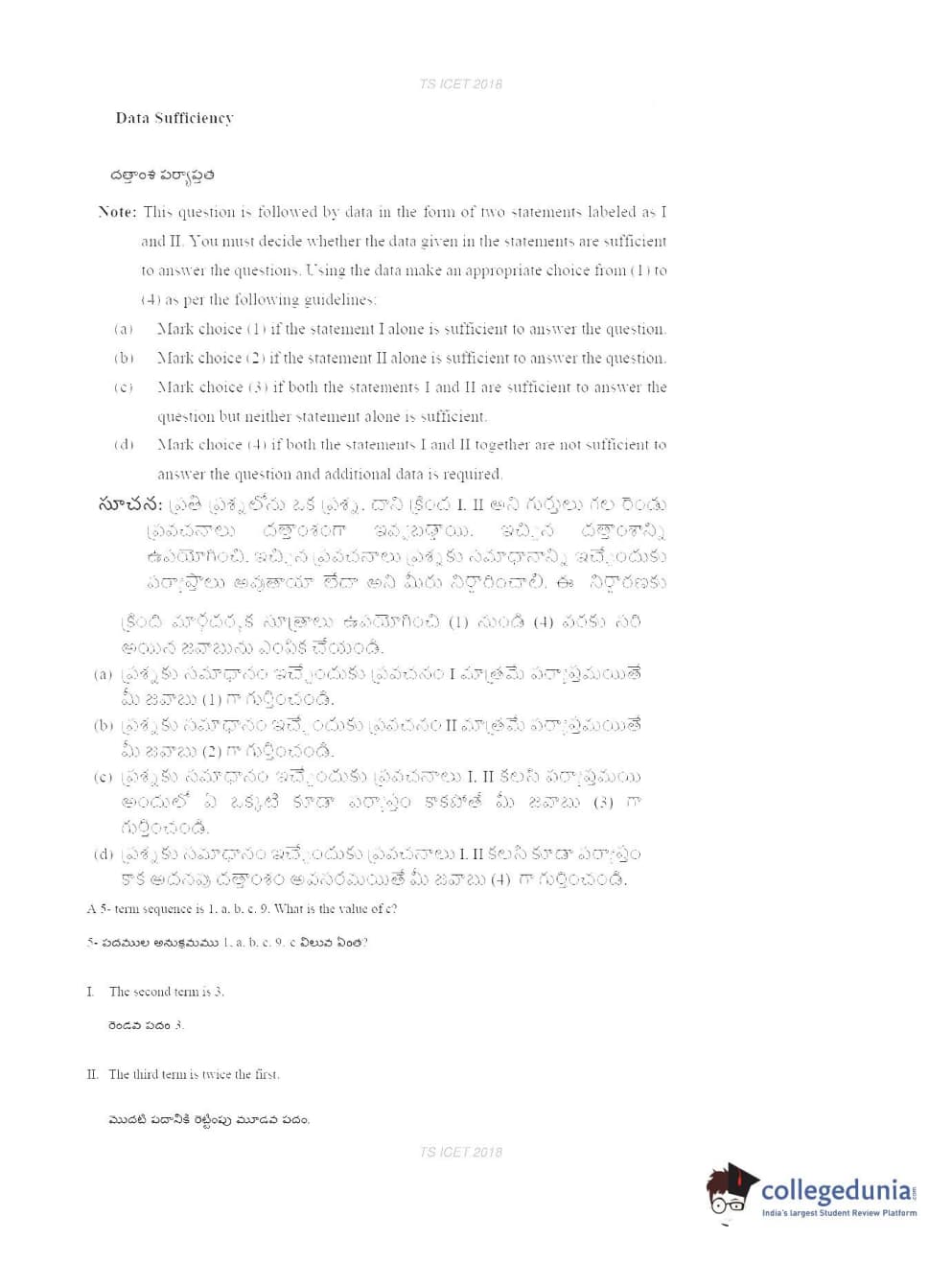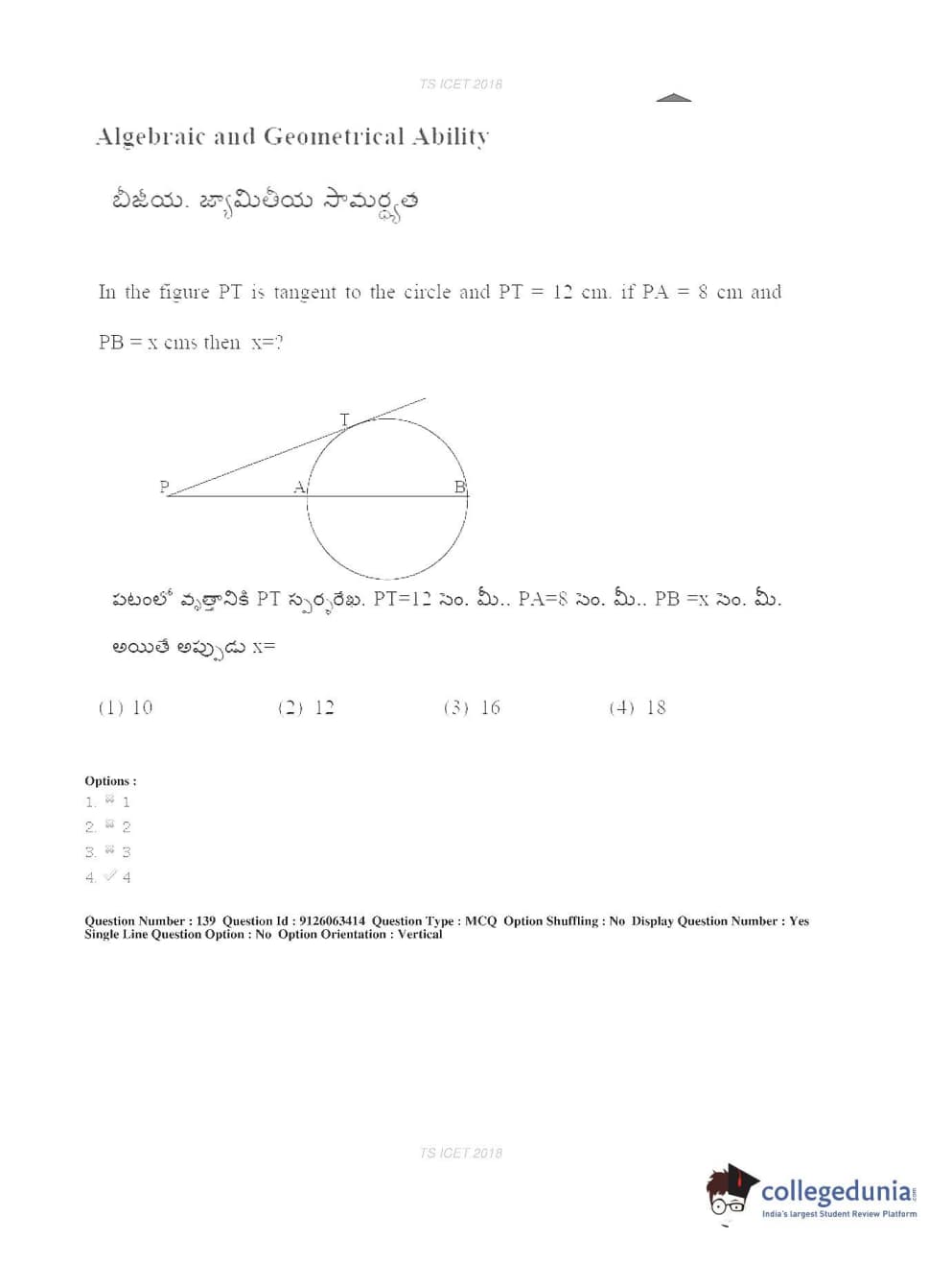 TSICET 2018 Question Paper with Answer Key PDFs in Telugu ,Shift 1