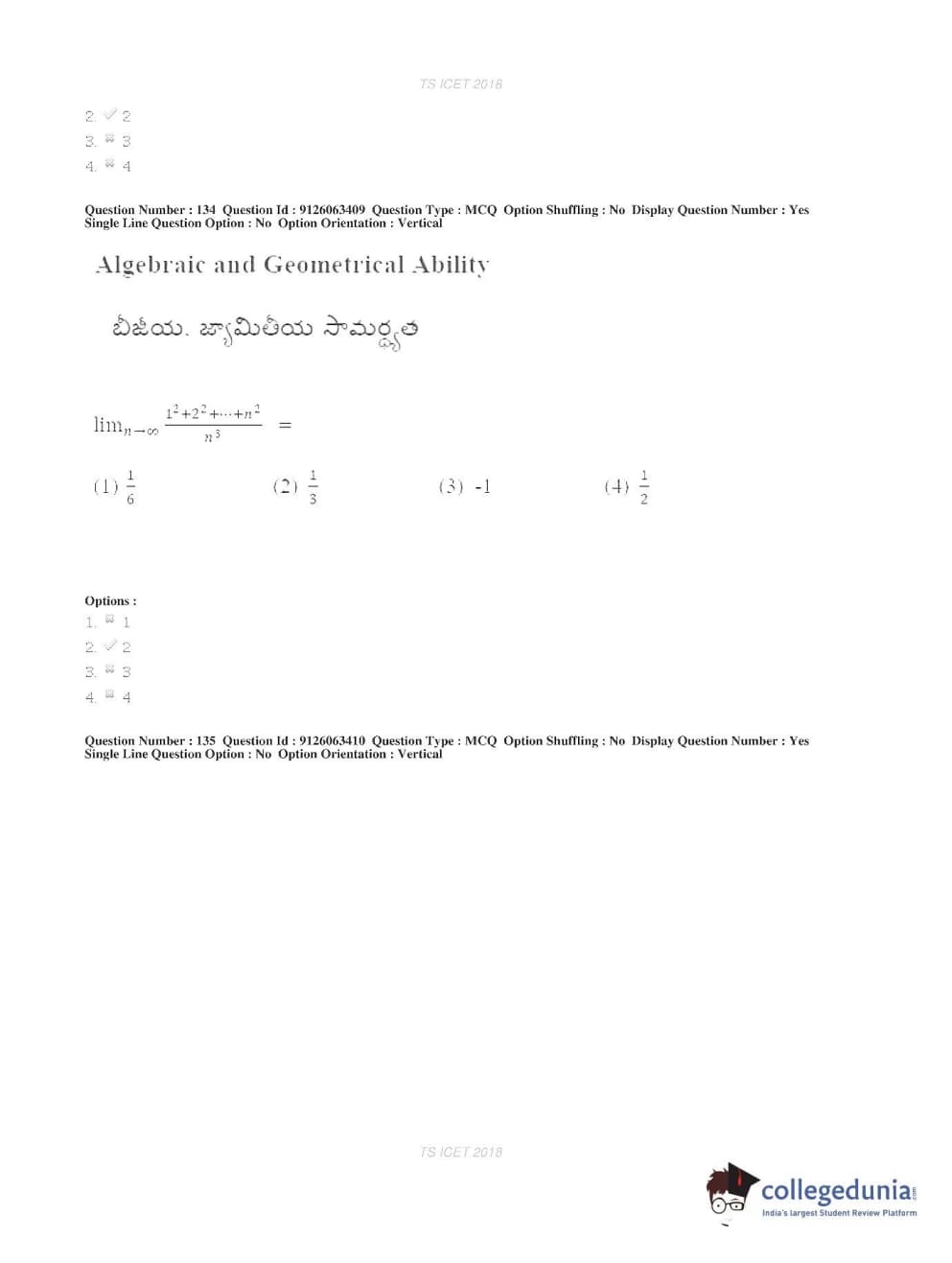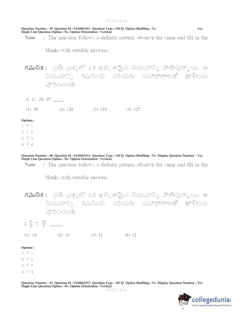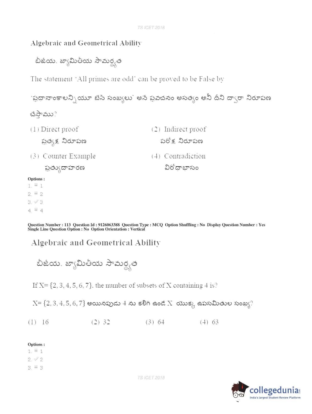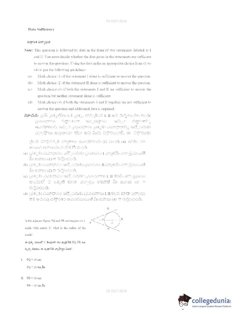 TSICET 2018 Question Paper with Answer Key PDFs in Telugu ,Shift 1