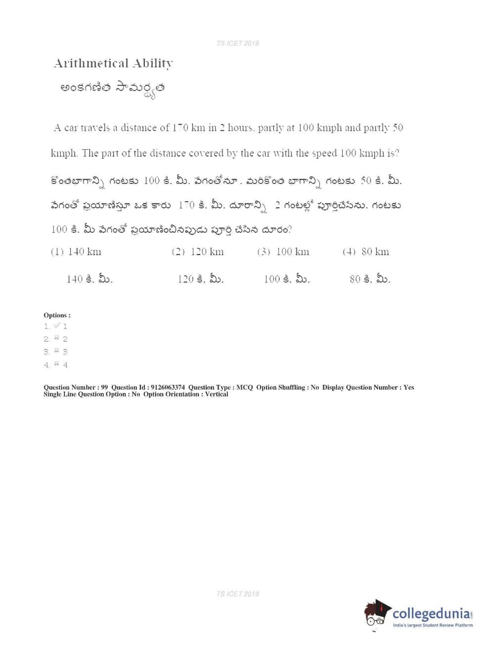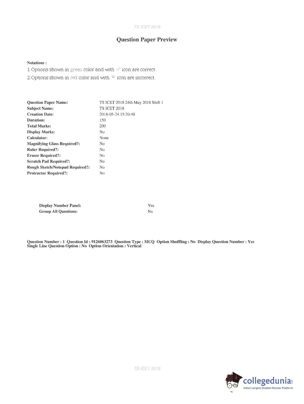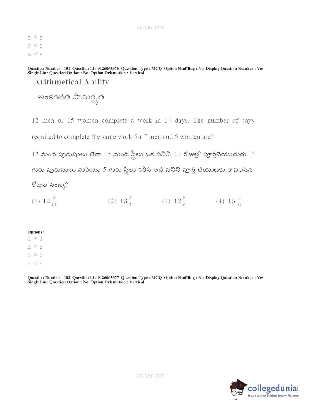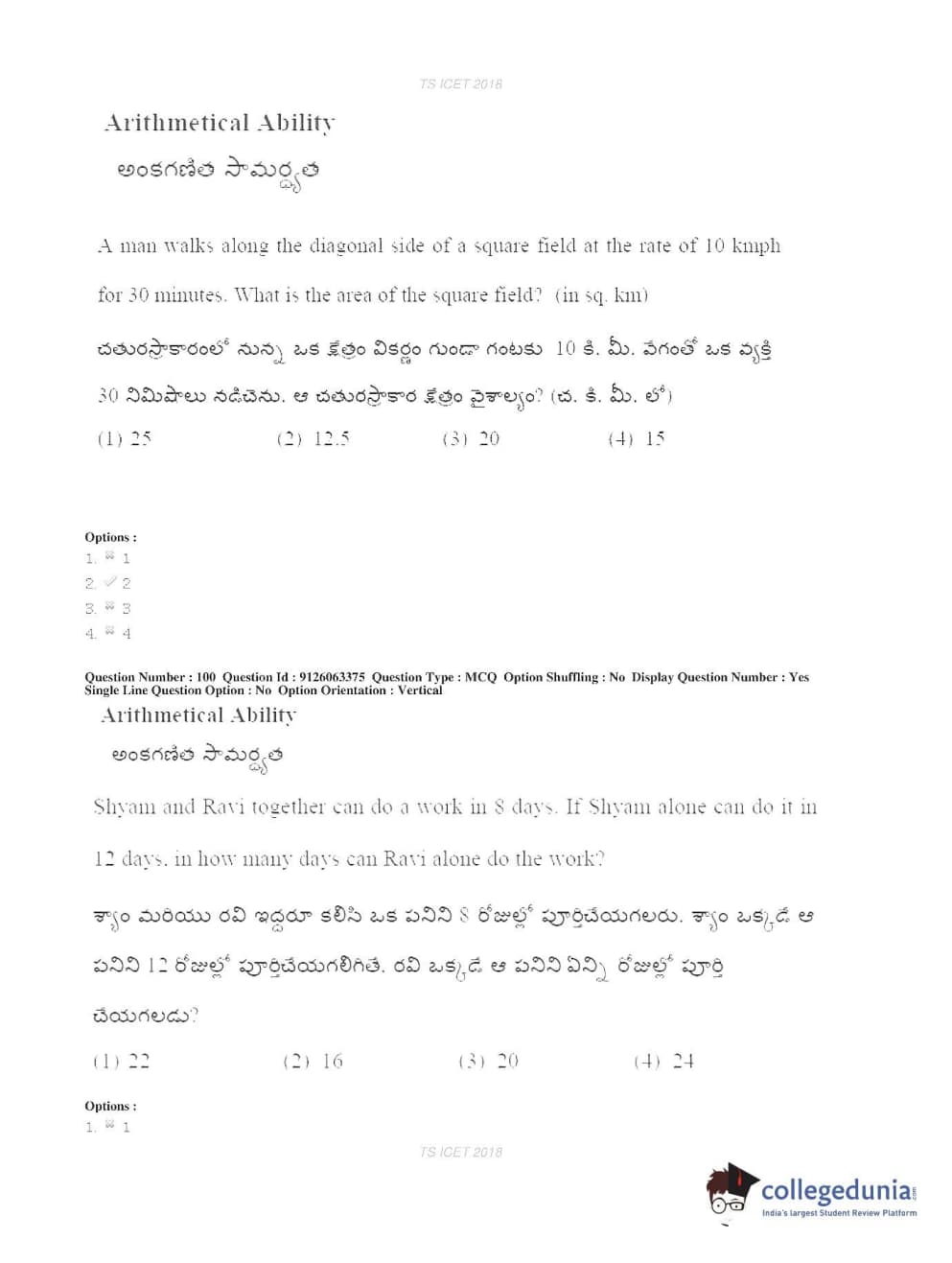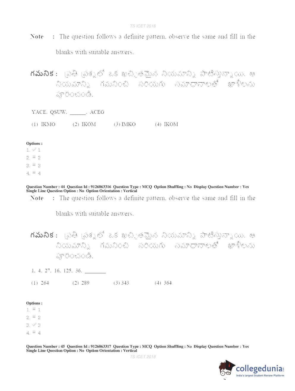 TSICET 2018 Question Paper with Answer Key PDFs in Telugu ,Shift 1