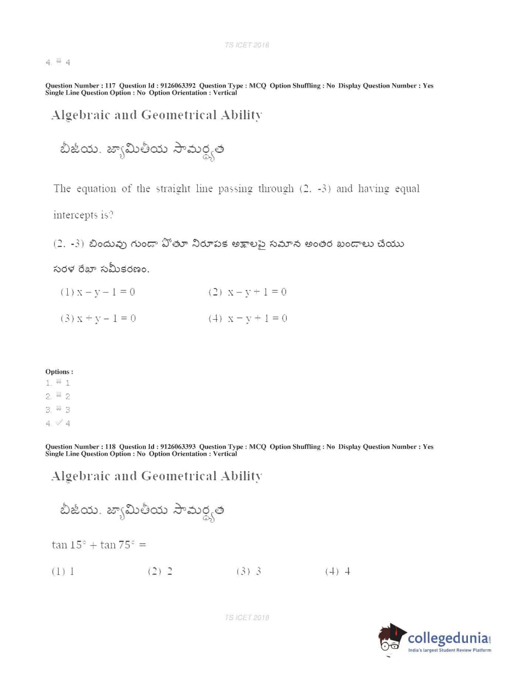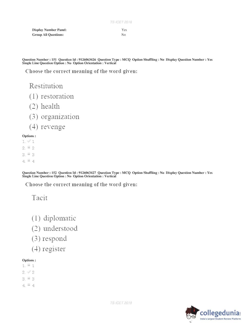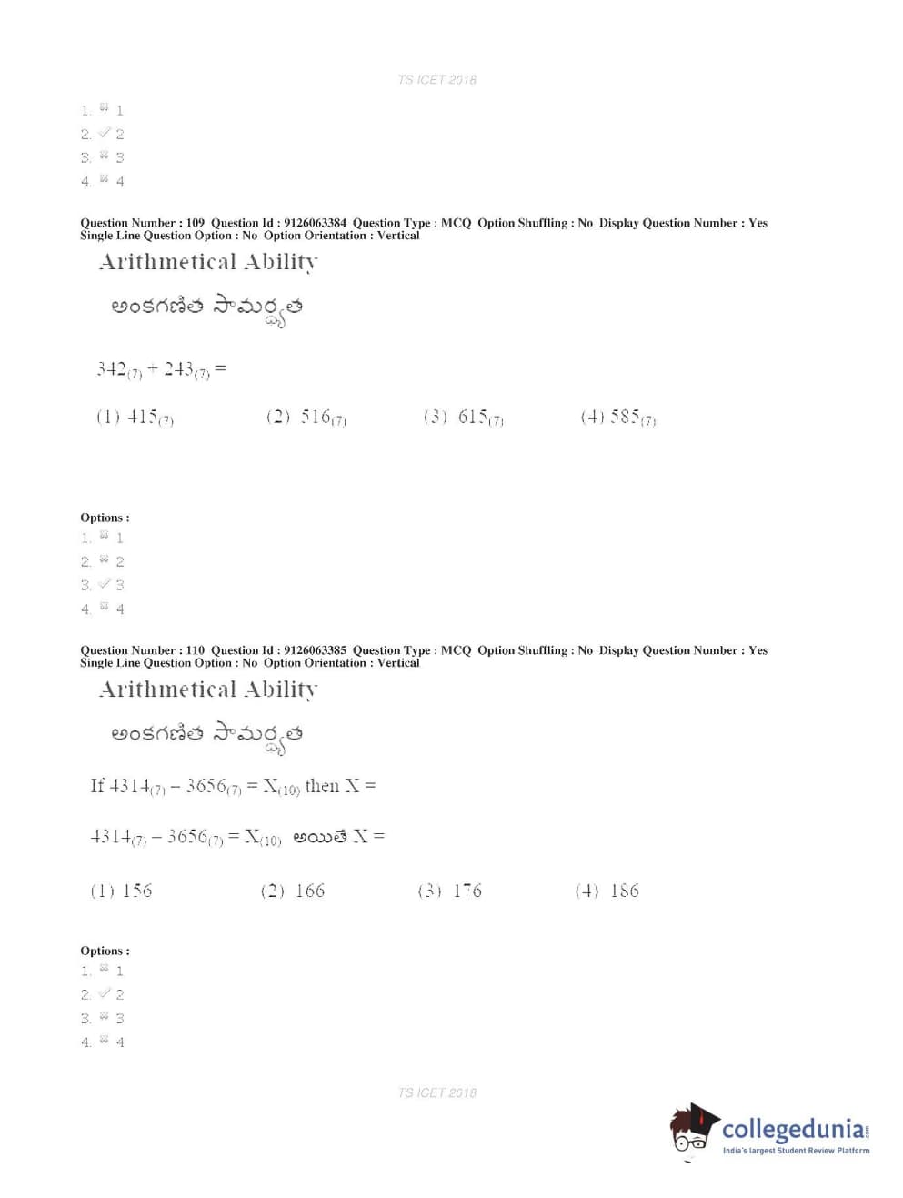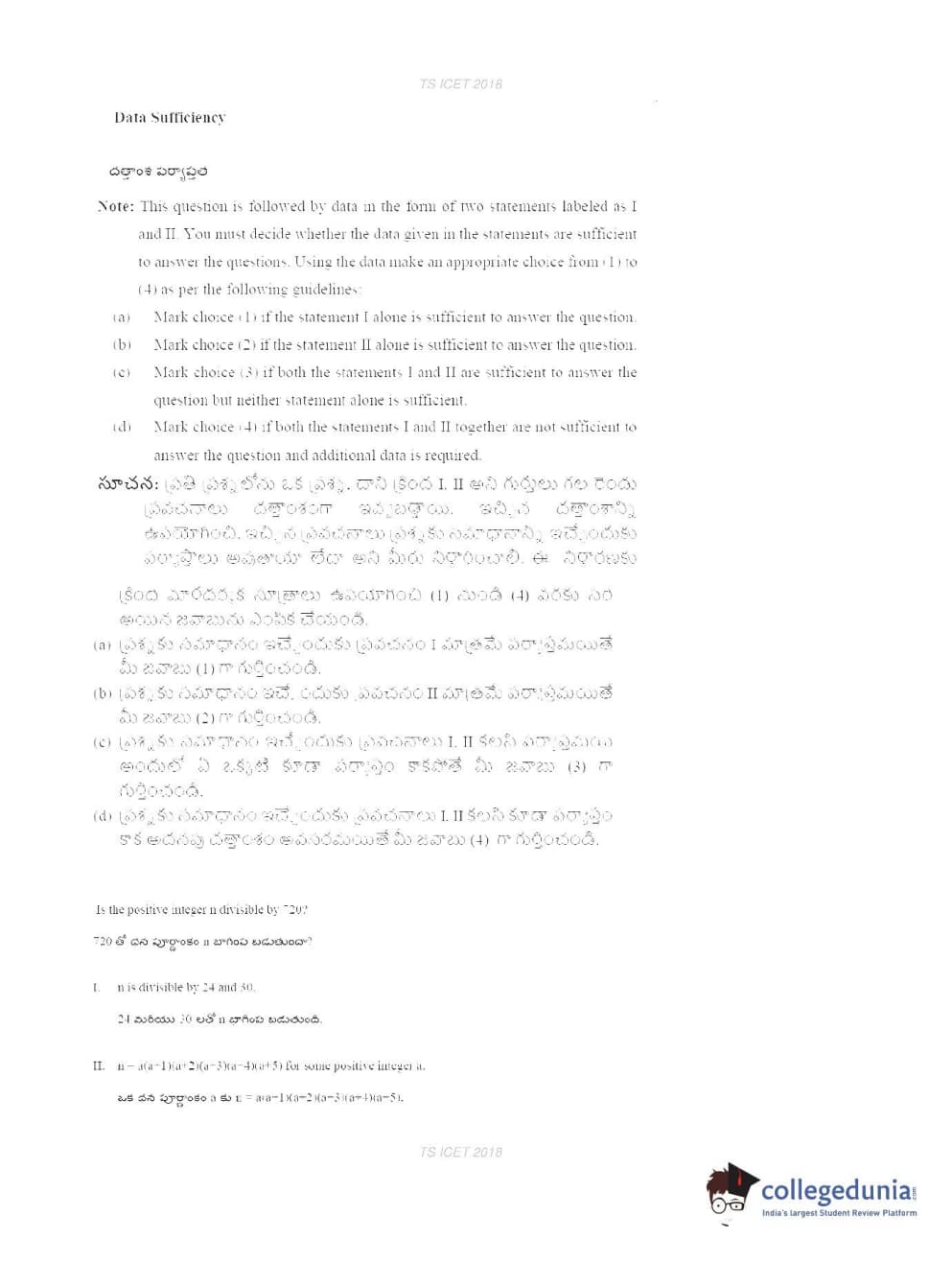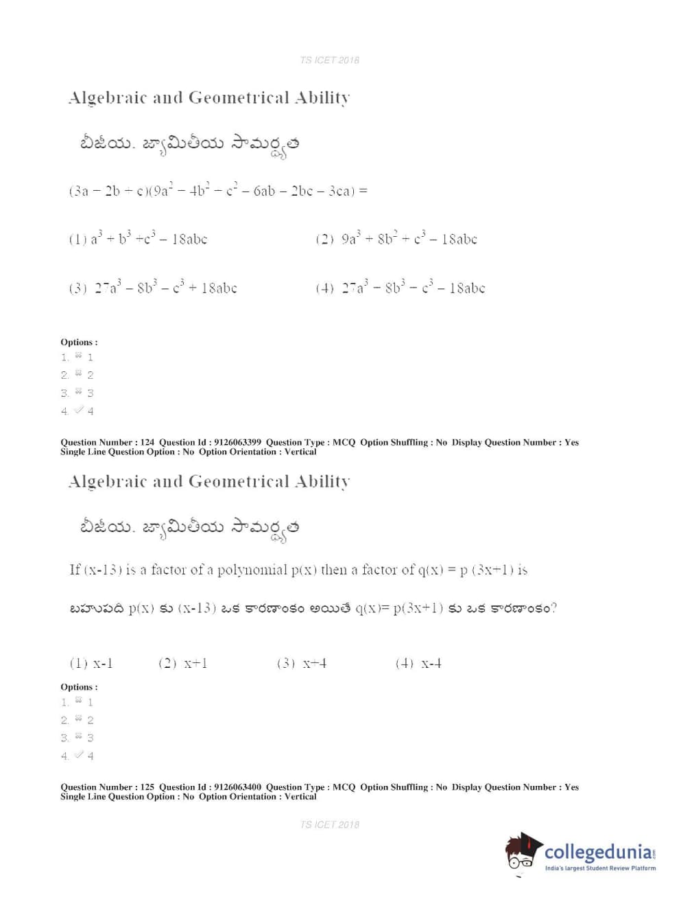 TSICET 2018 Question Paper with Answer Key PDFs in Telugu ,Shift 1
