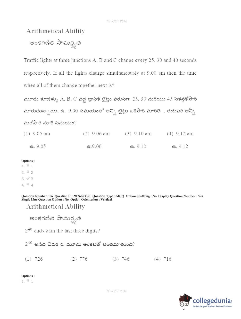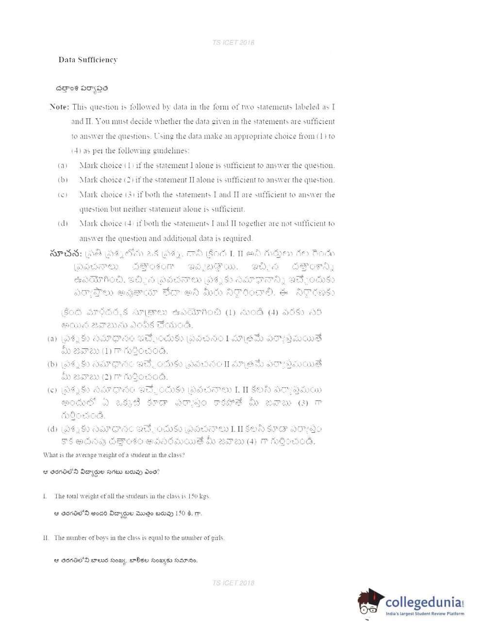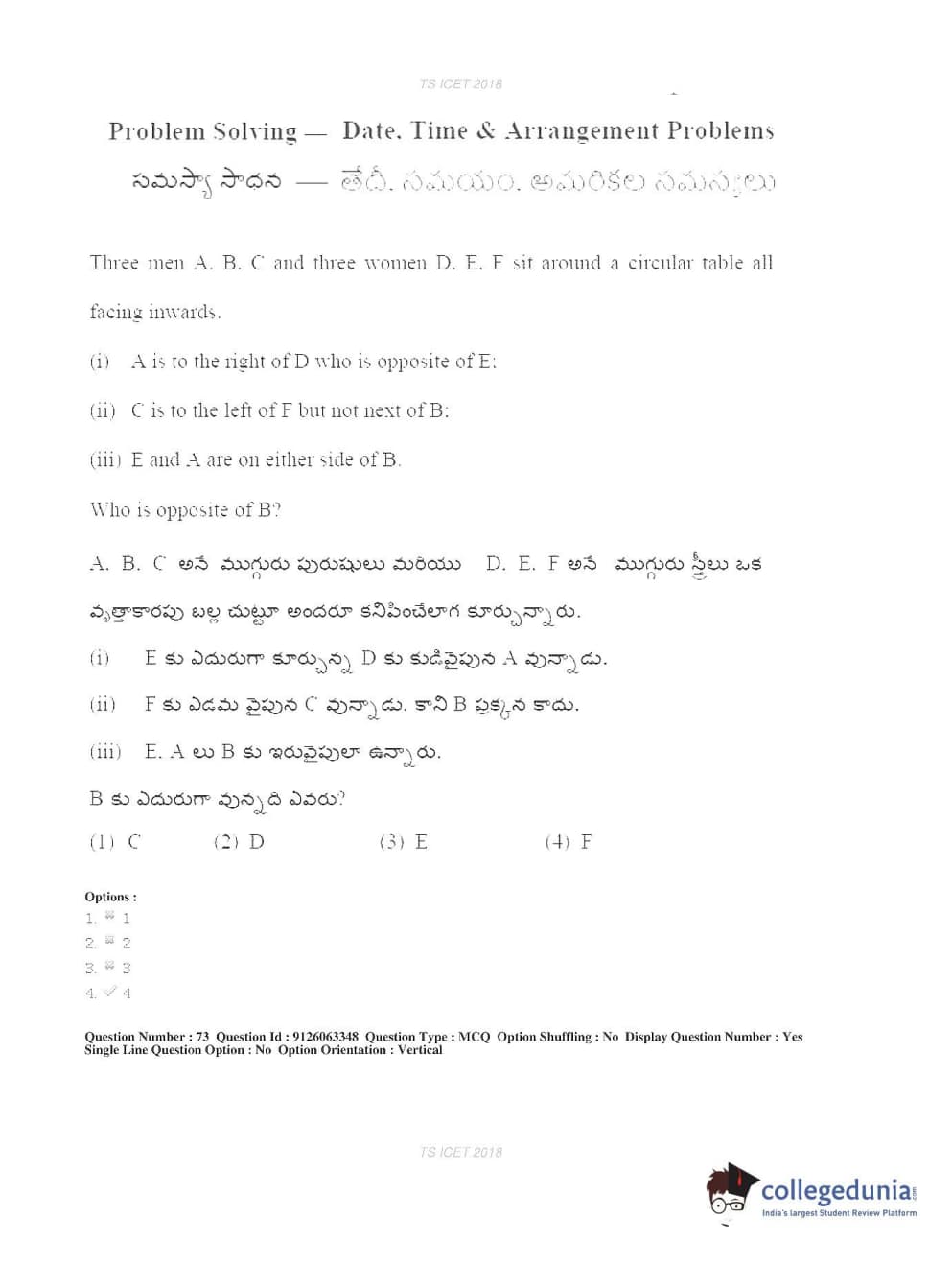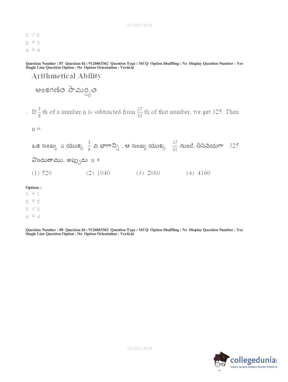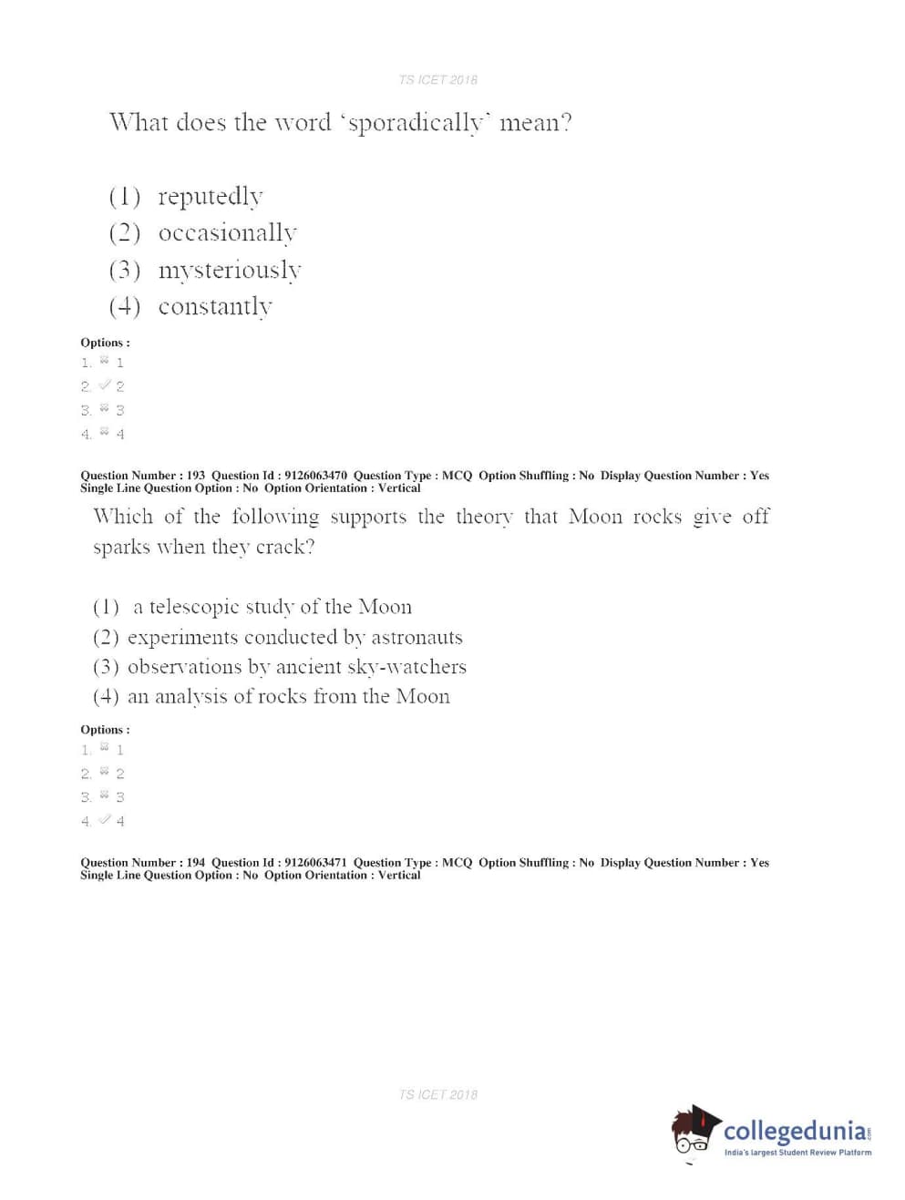 TSICET 2018 Question Paper with Answer Key PDFs in Telugu ,Shift 1