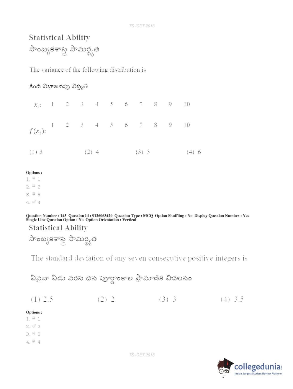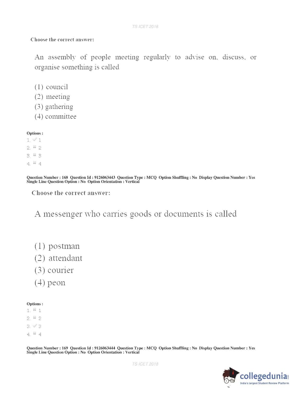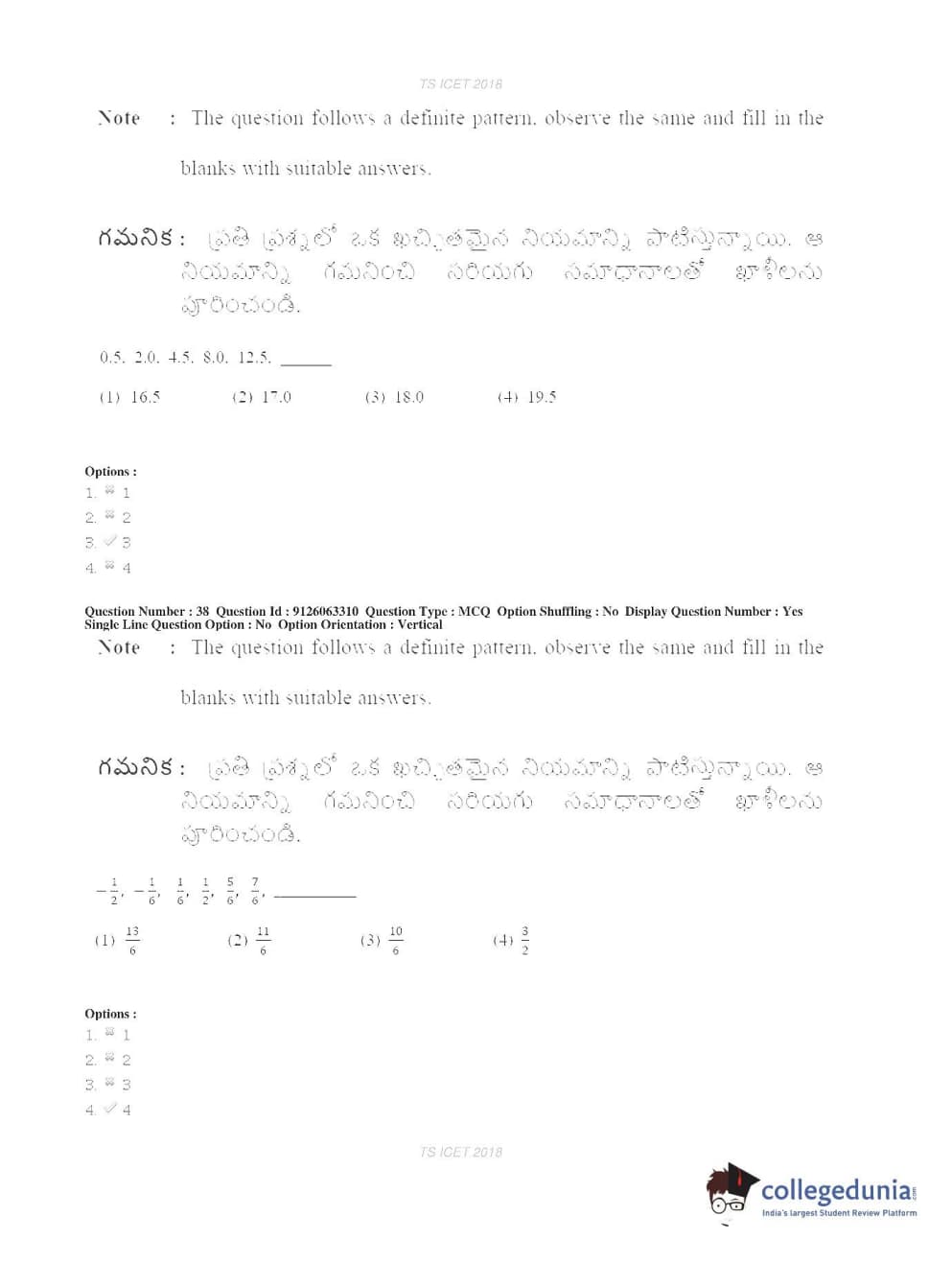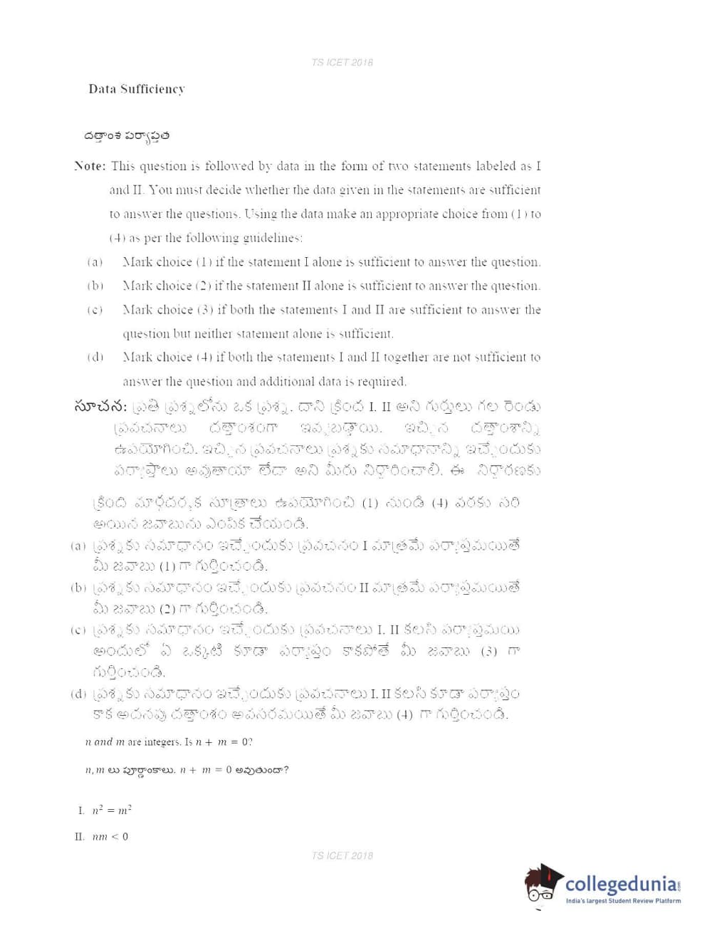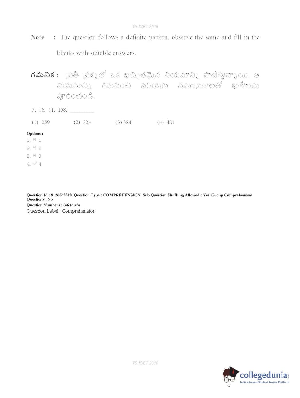 TSICET 2018 Question Paper with Answer Key PDFs in Telugu ,Shift 1