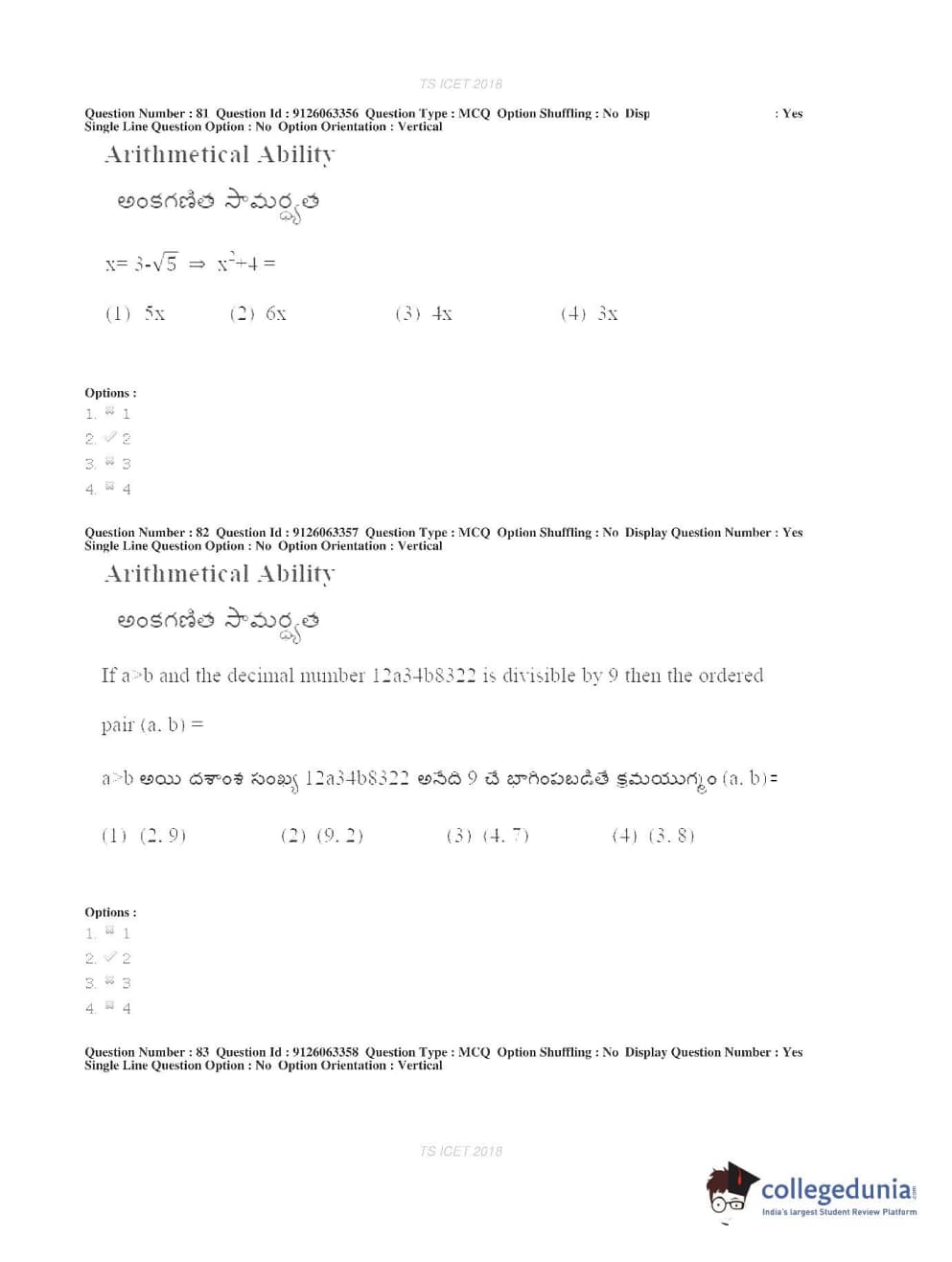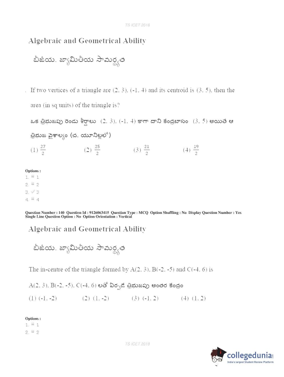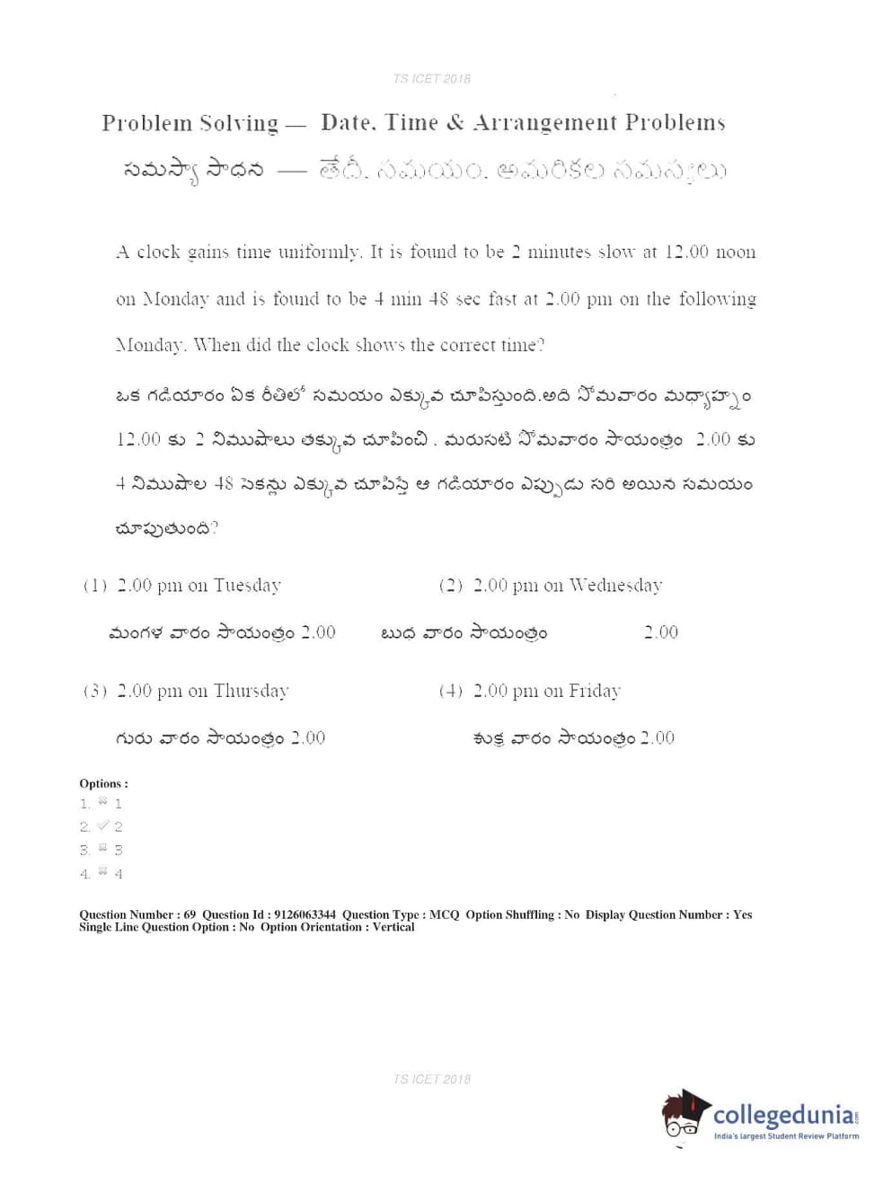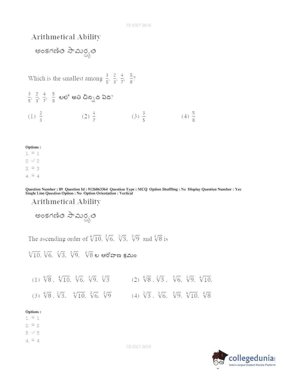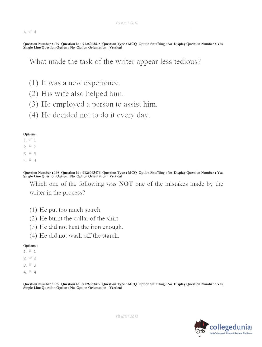 TSICET 2018 Question Paper with Answer Key PDFs in Telugu ,Shift 1