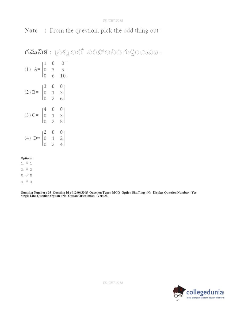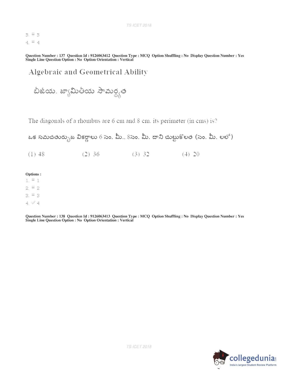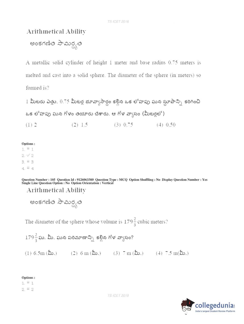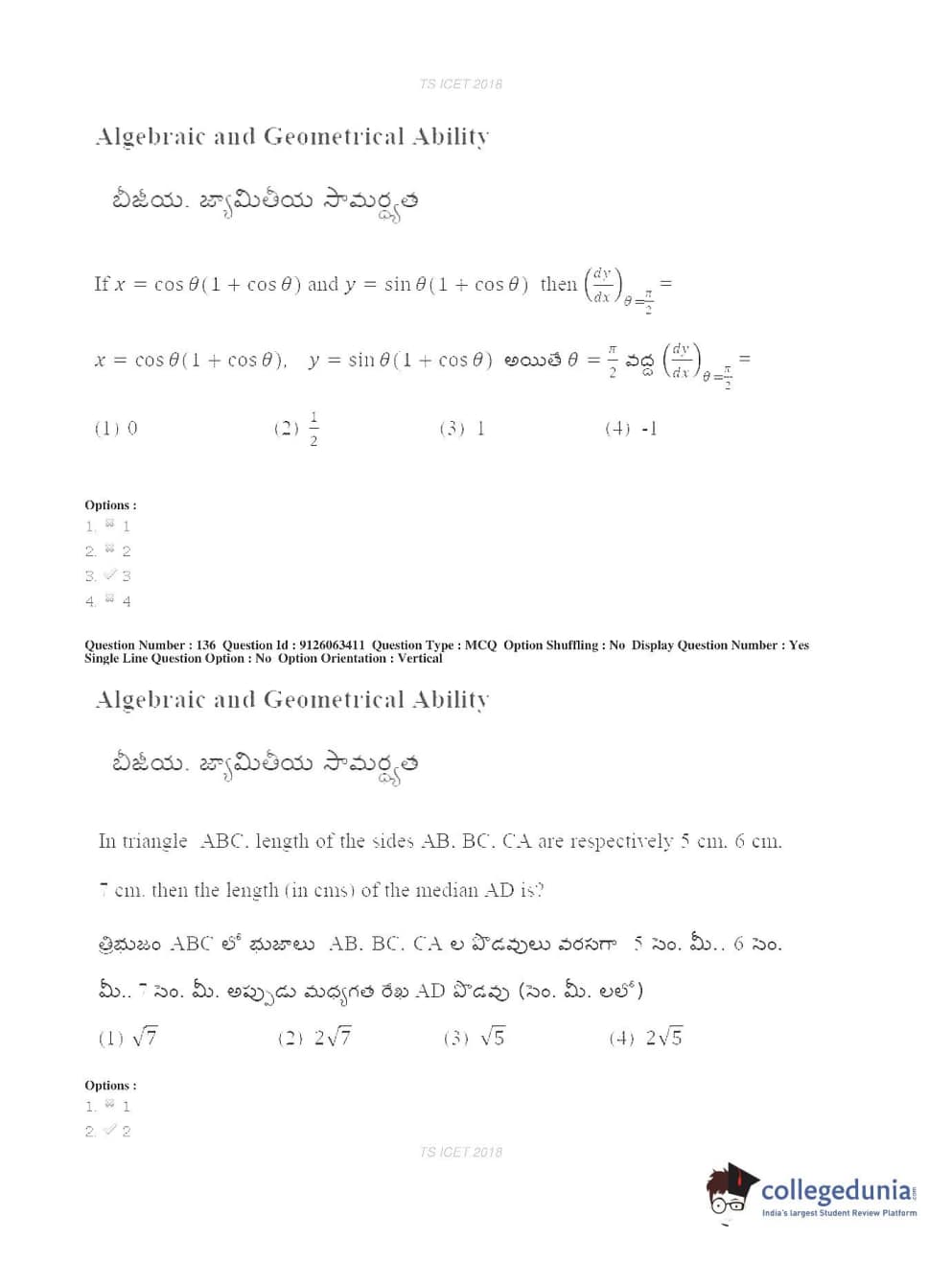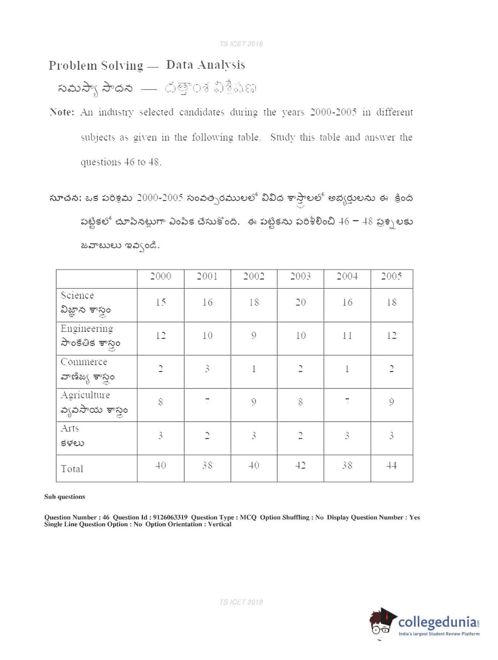 TSICET 2018 Question Paper with Answer Key PDFs in Telugu ,Shift 1