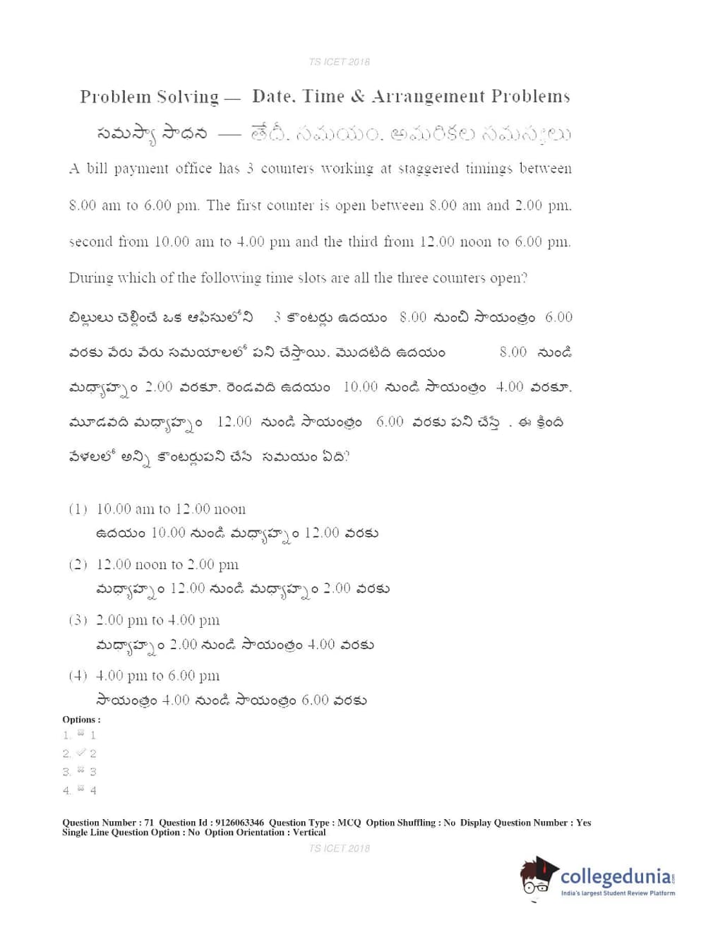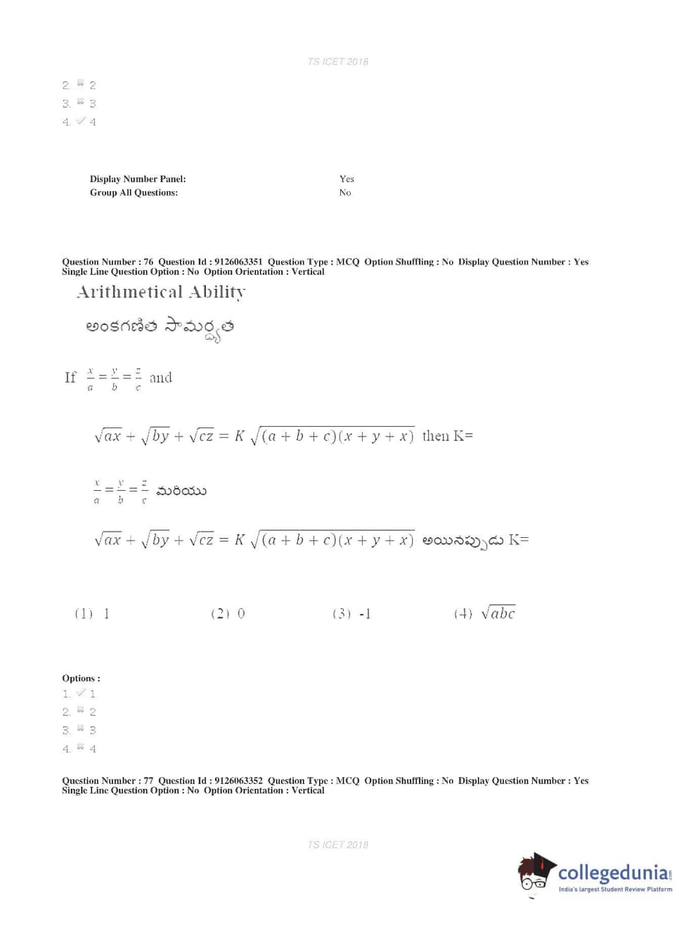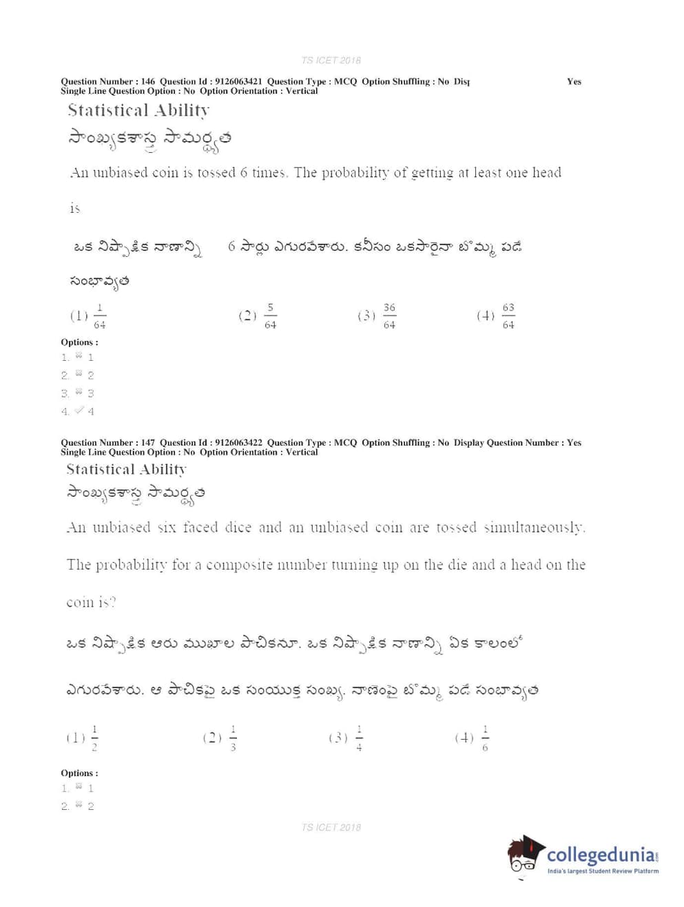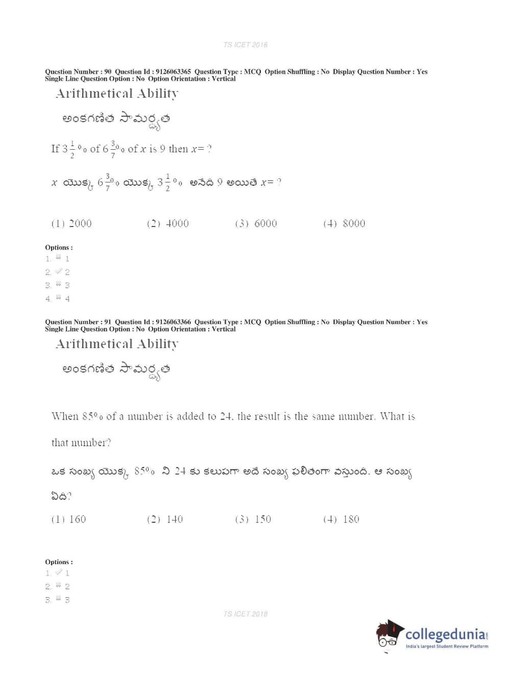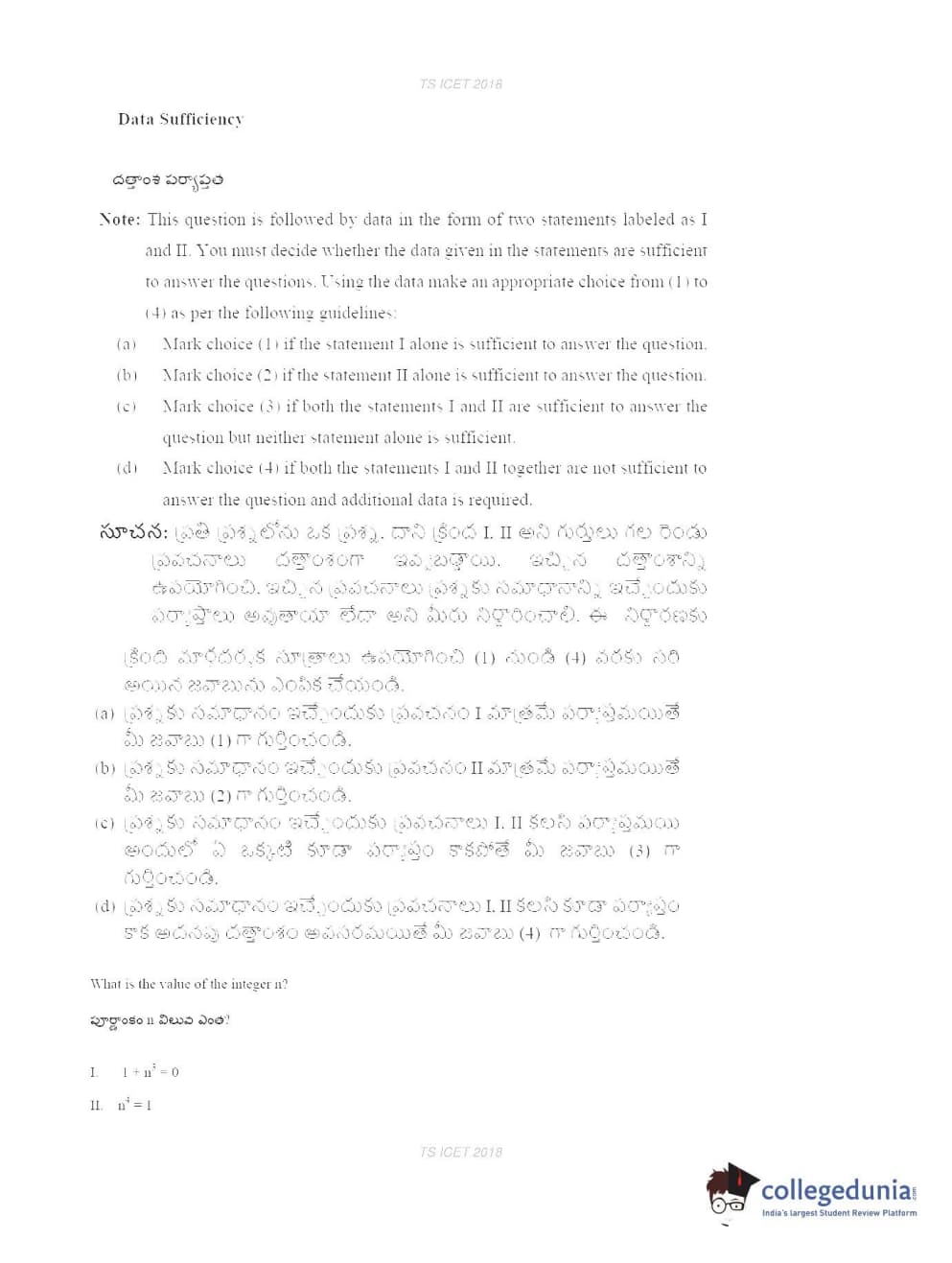 TSICET 2018 Question Paper with Answer Key PDFs in Telugu ,Shift 1