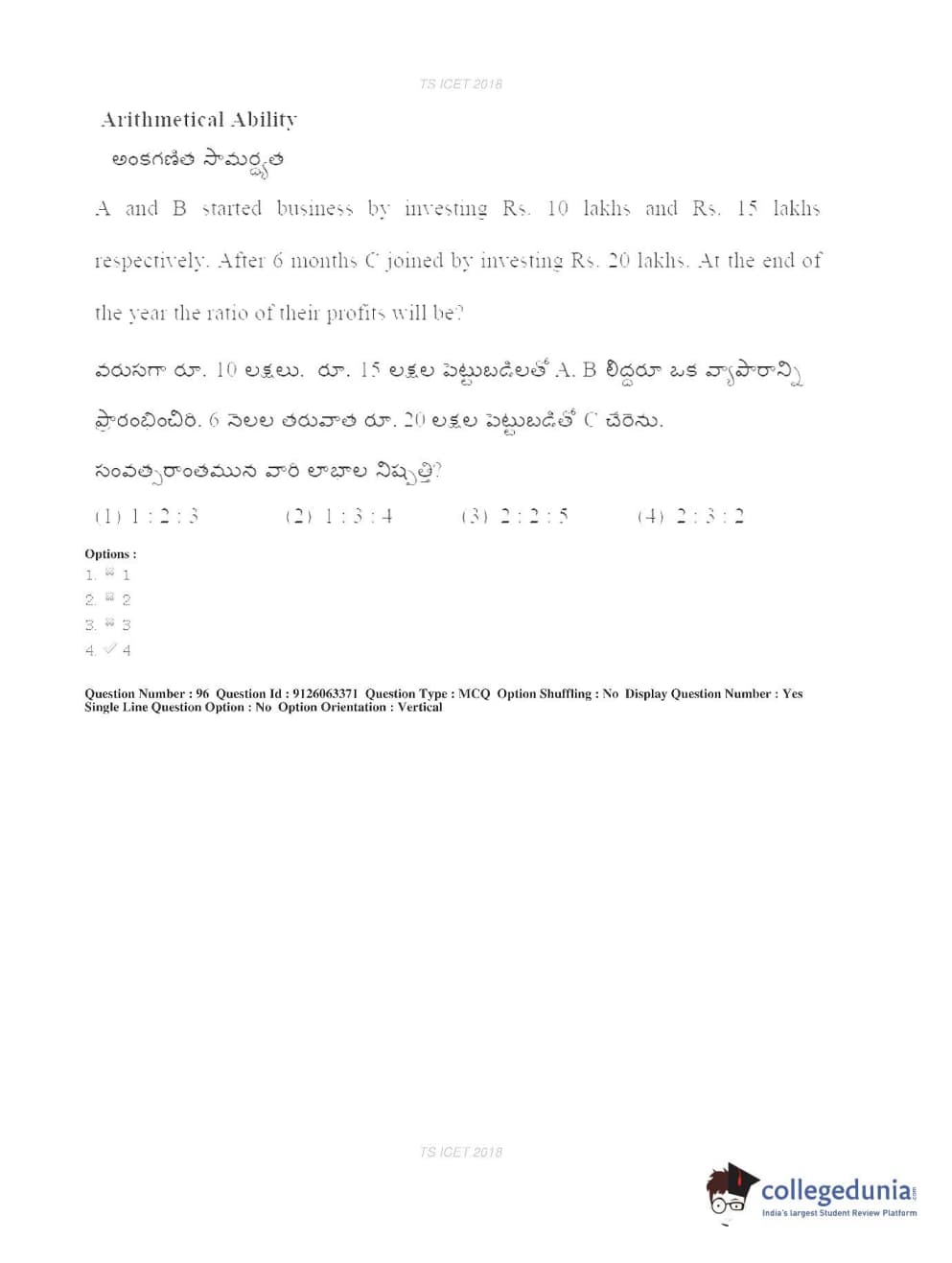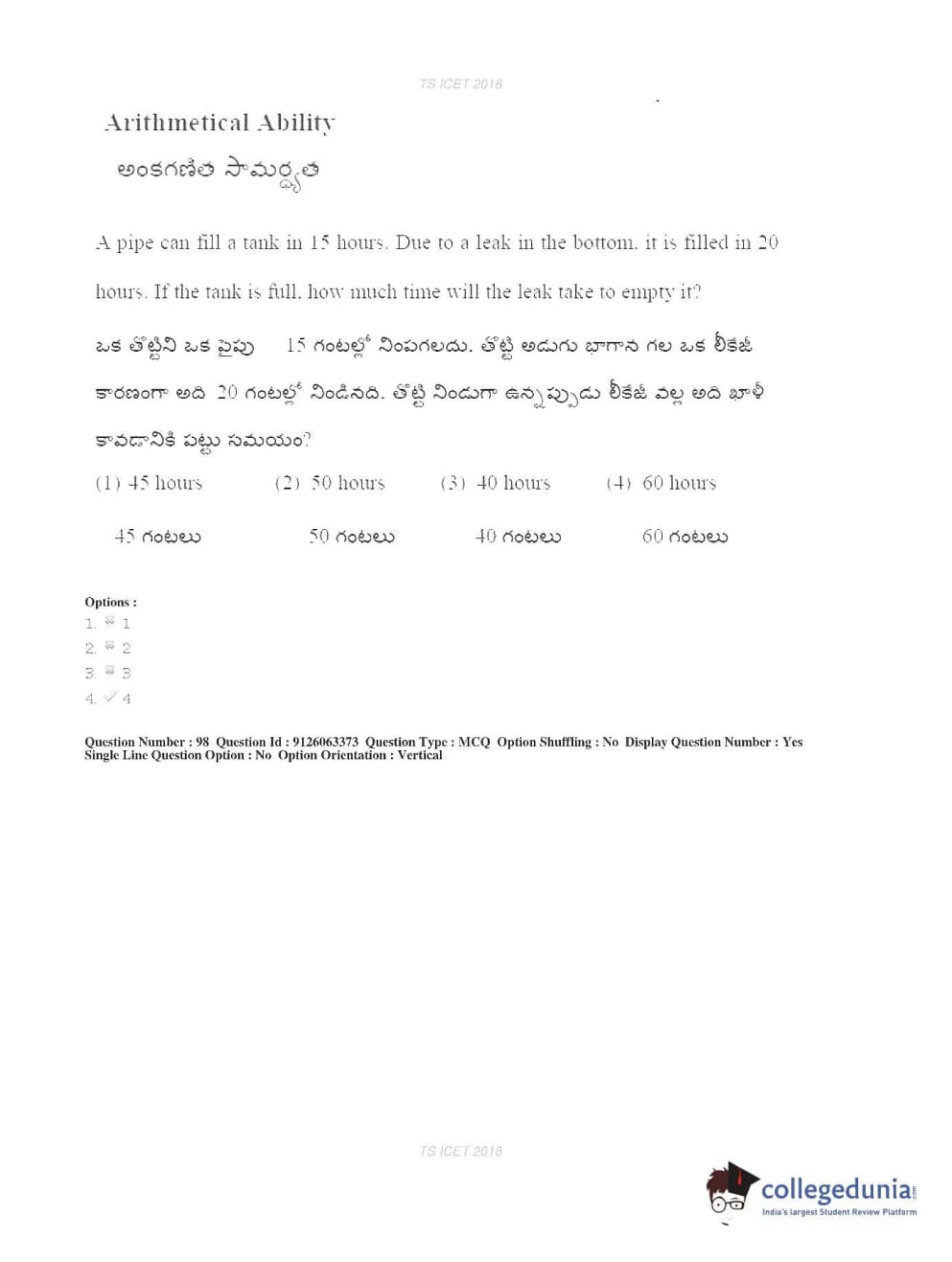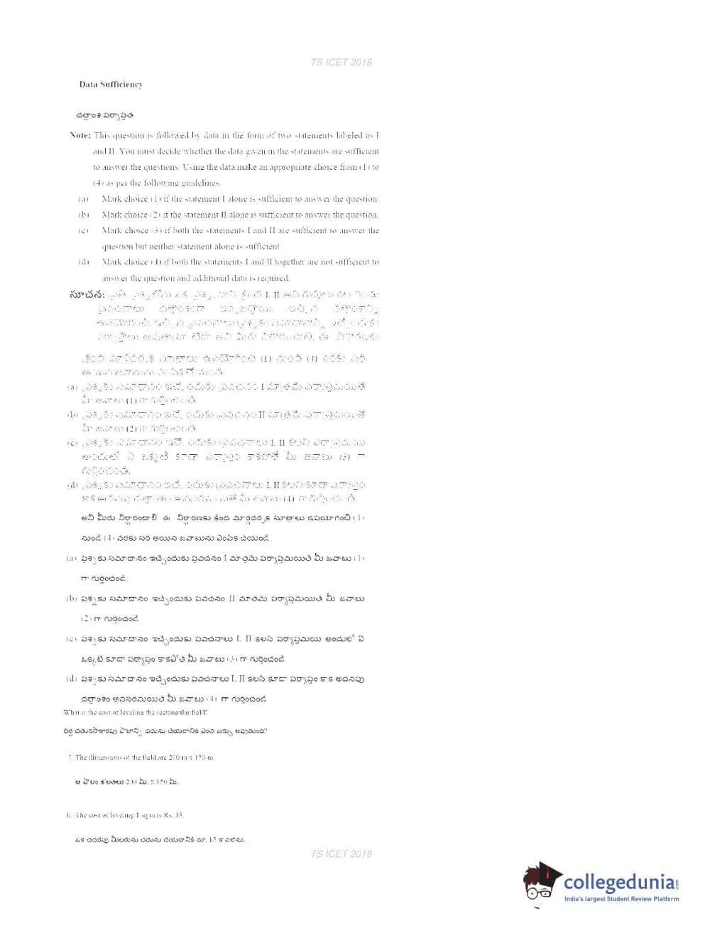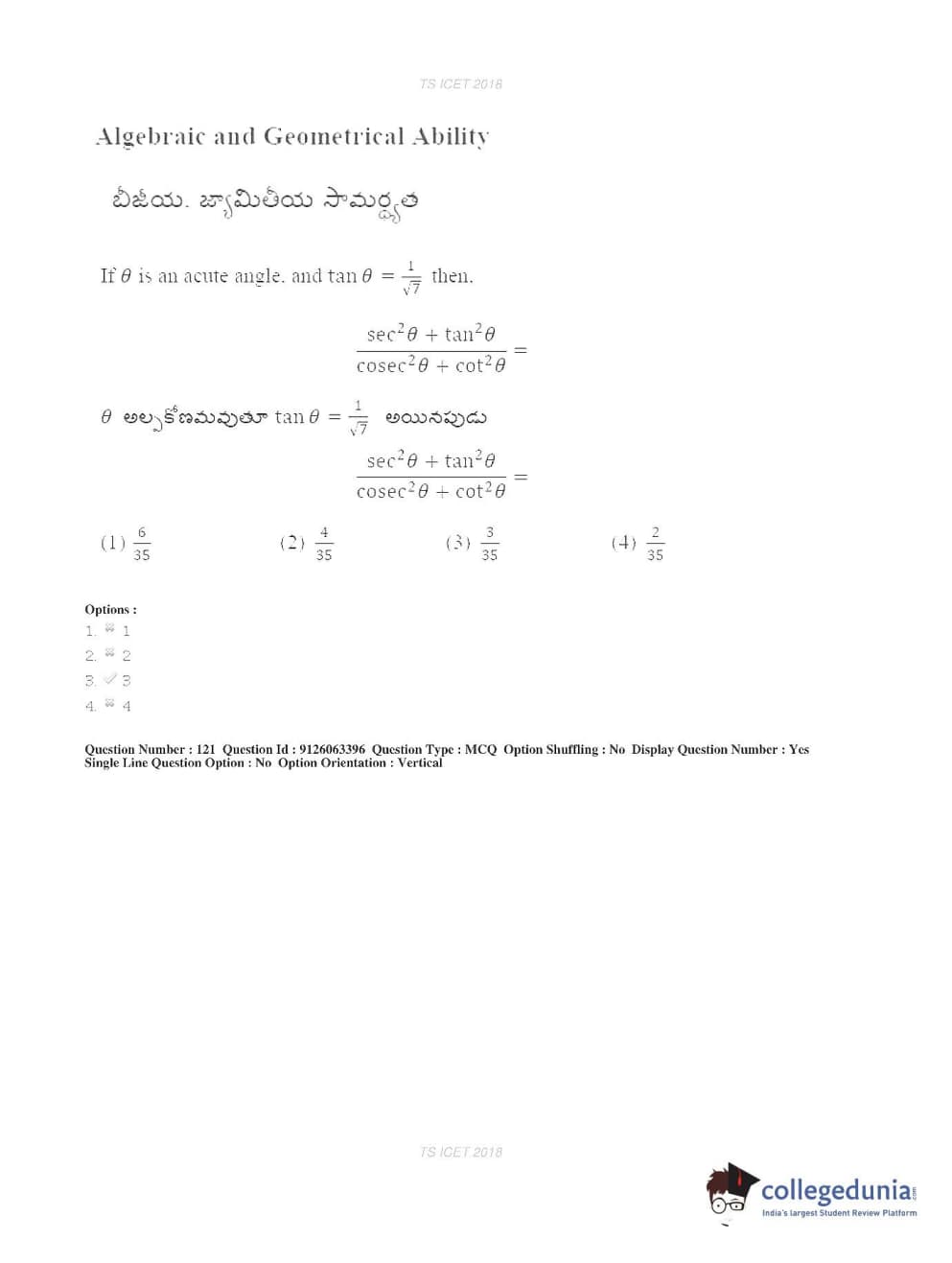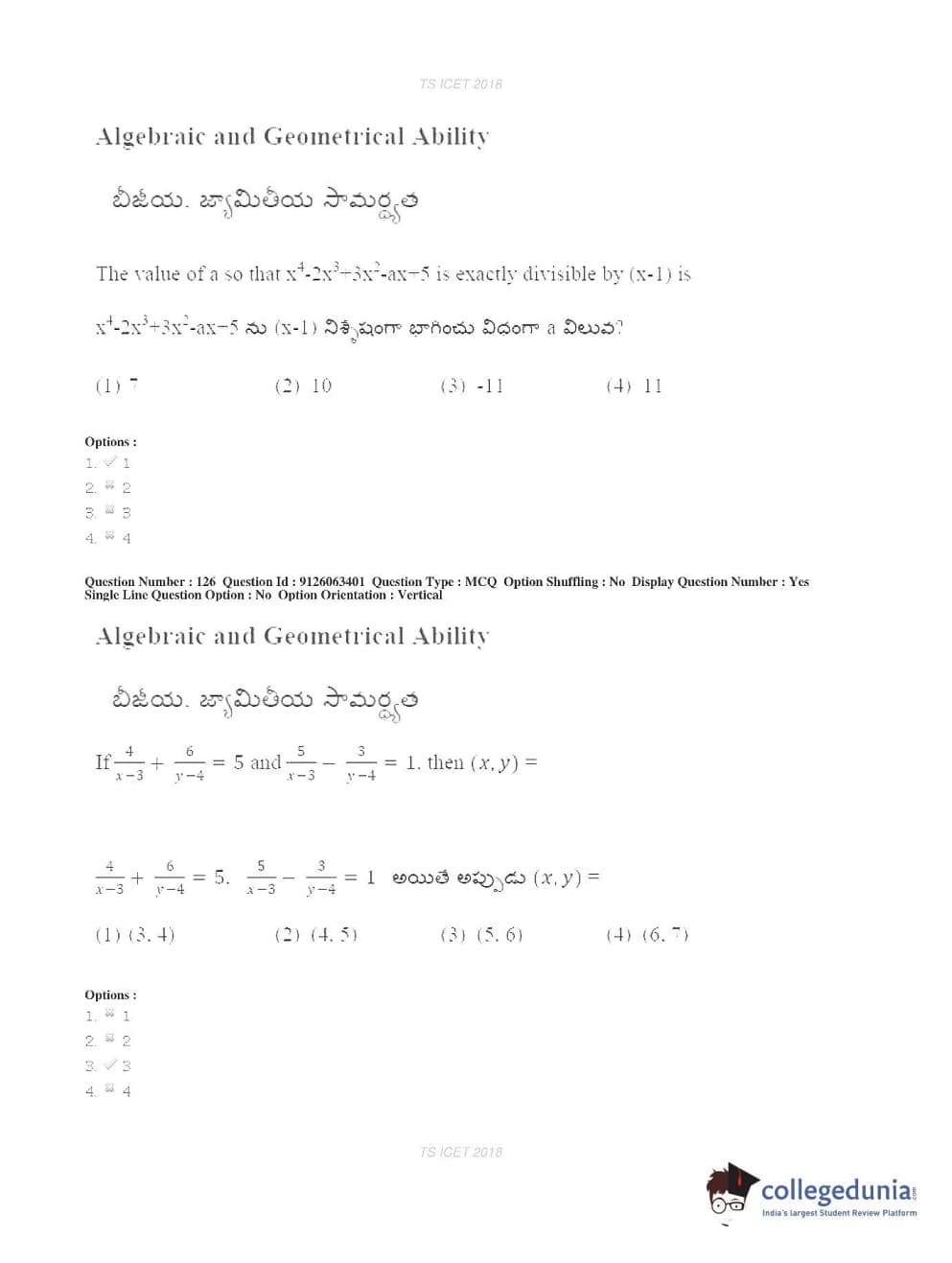 TSICET 2018 Question Paper with Answer Key PDFs in Telugu ,Shift 1