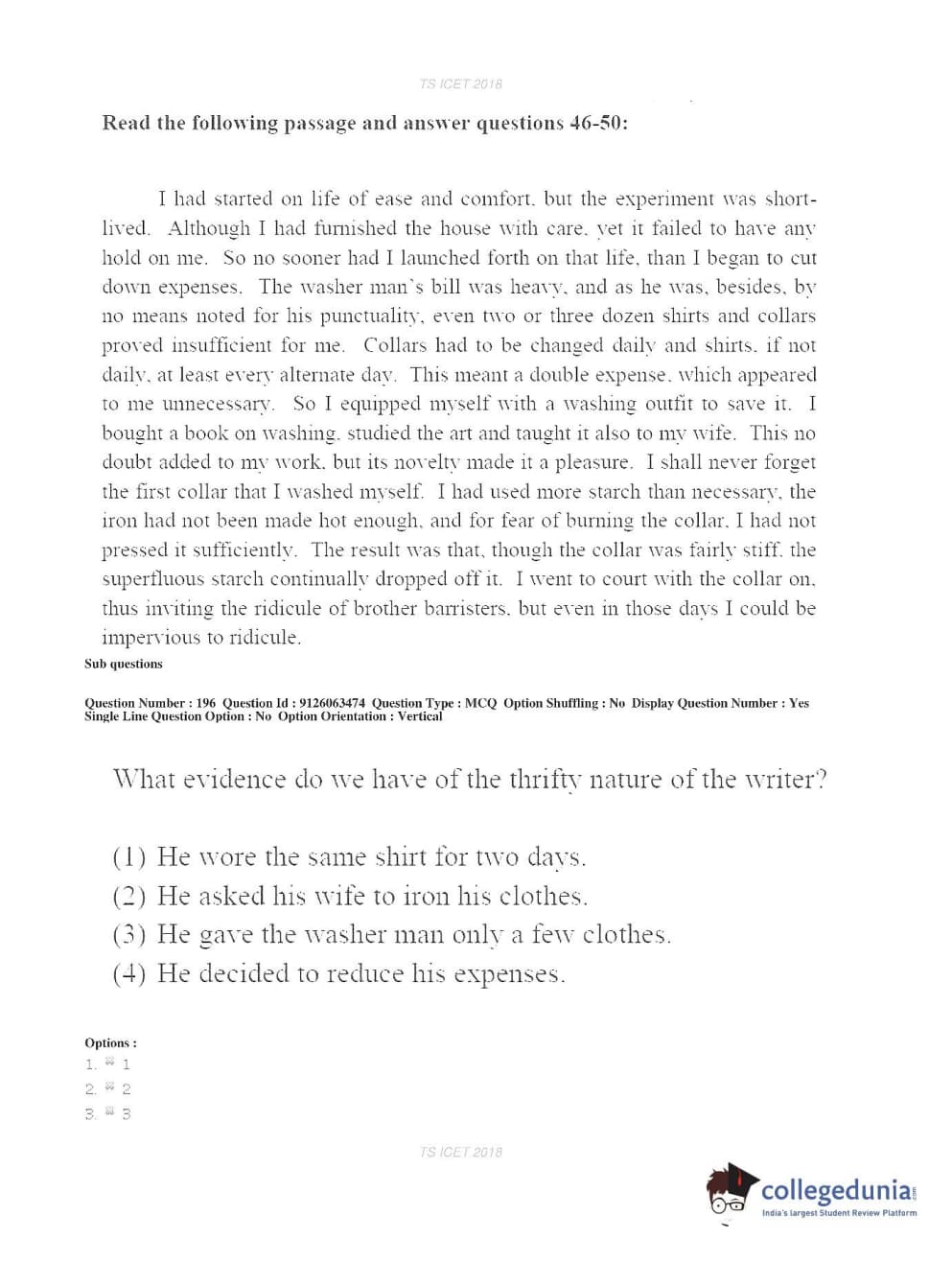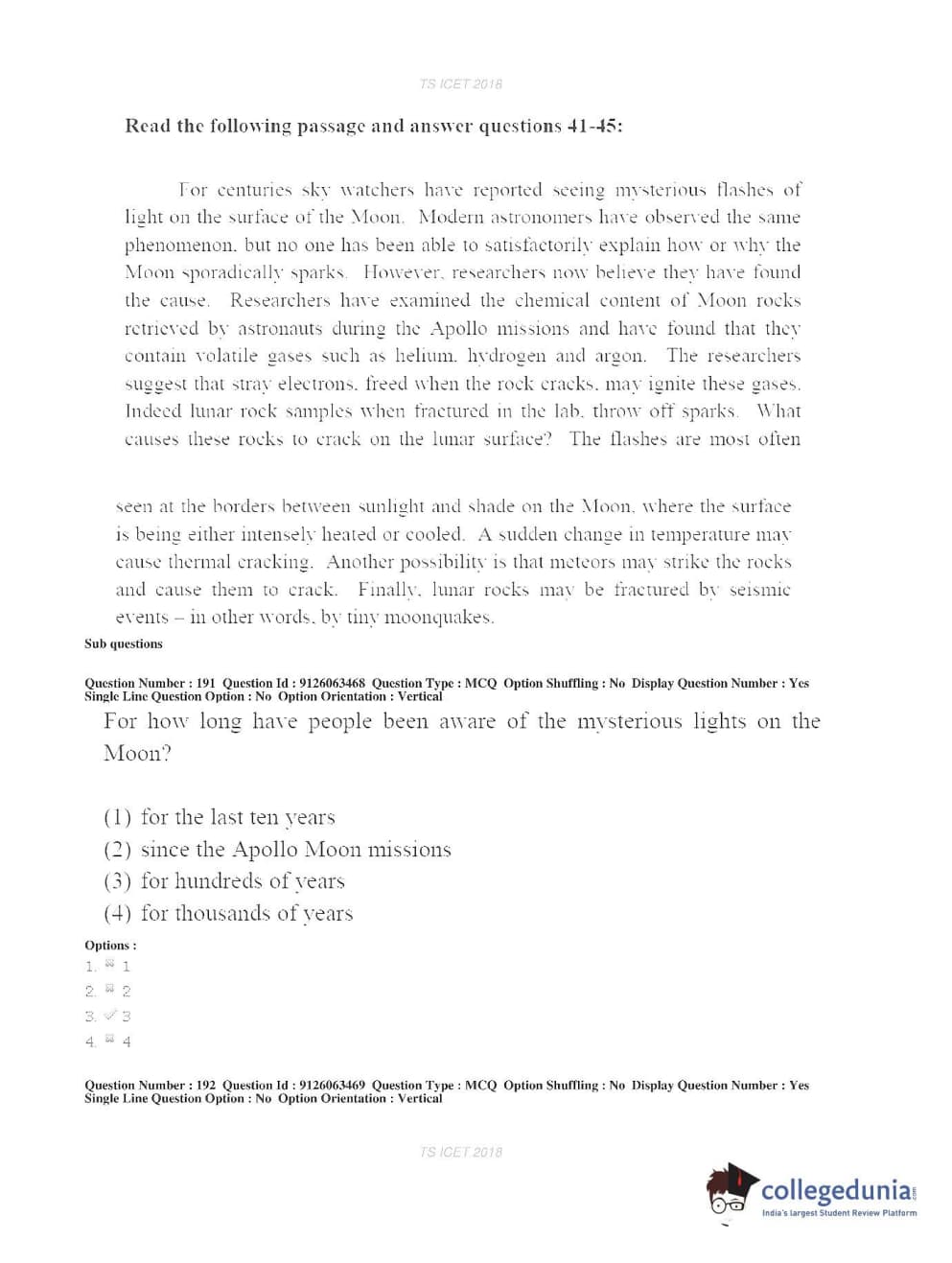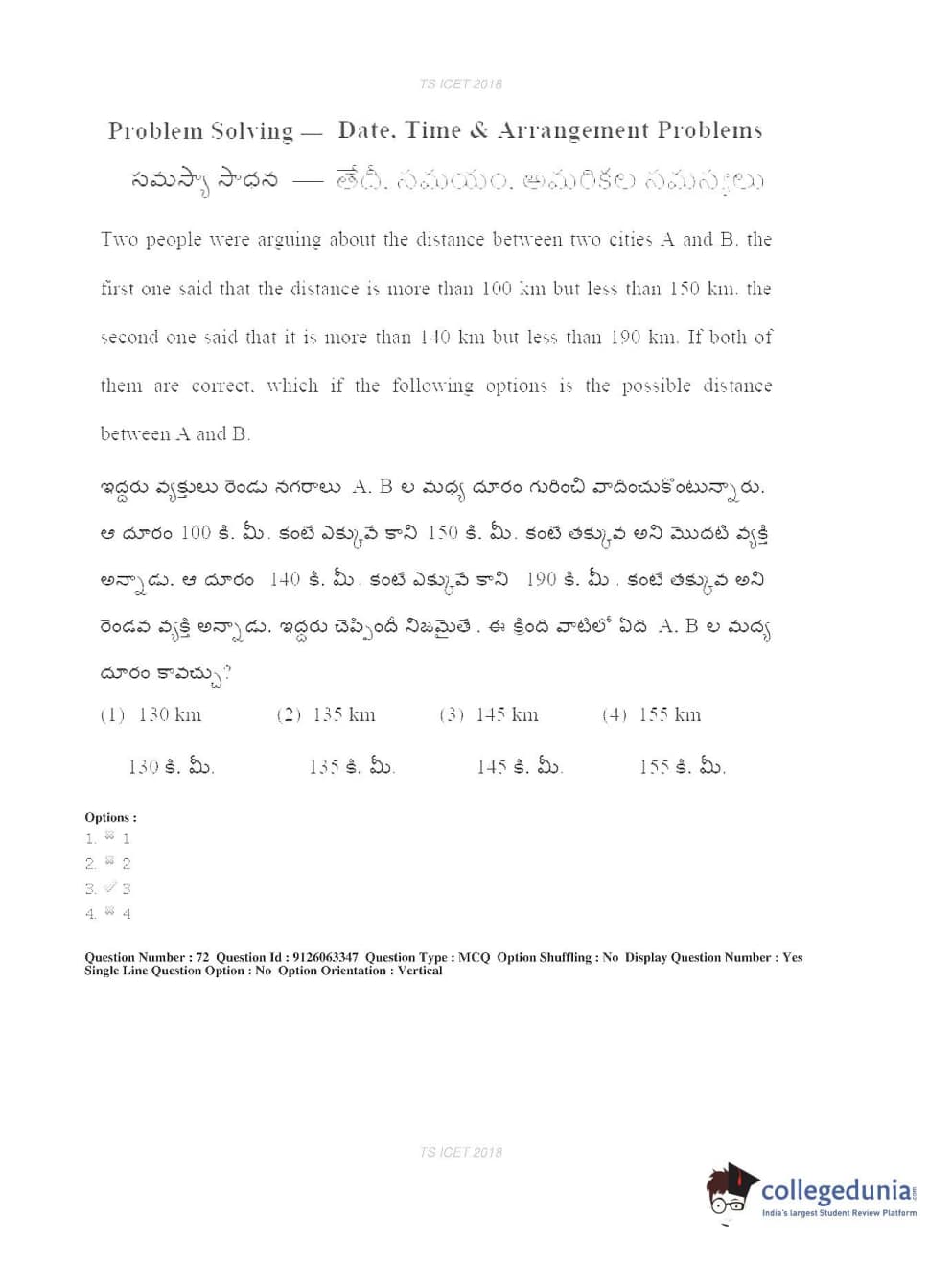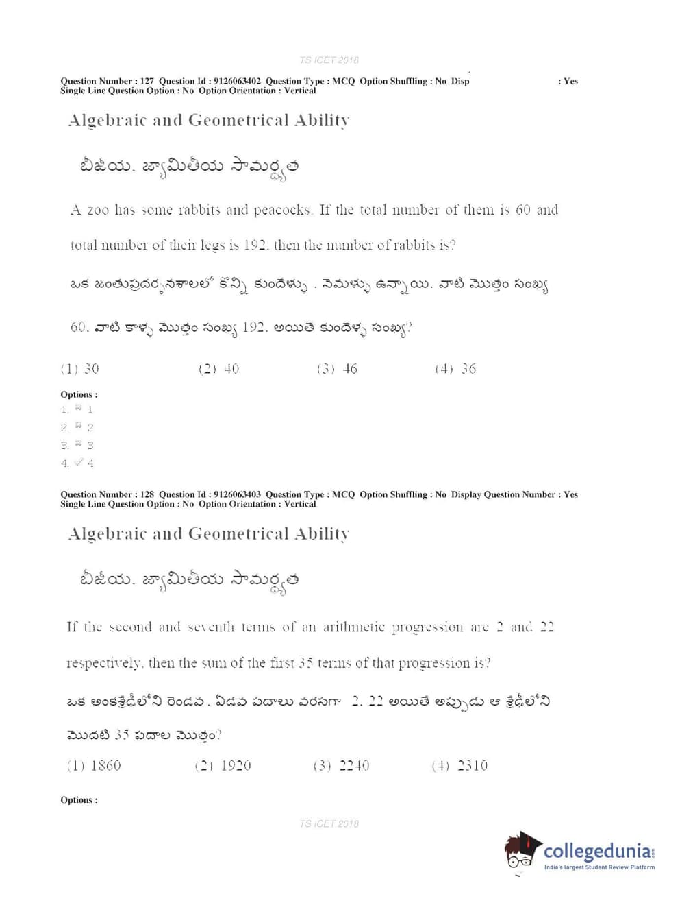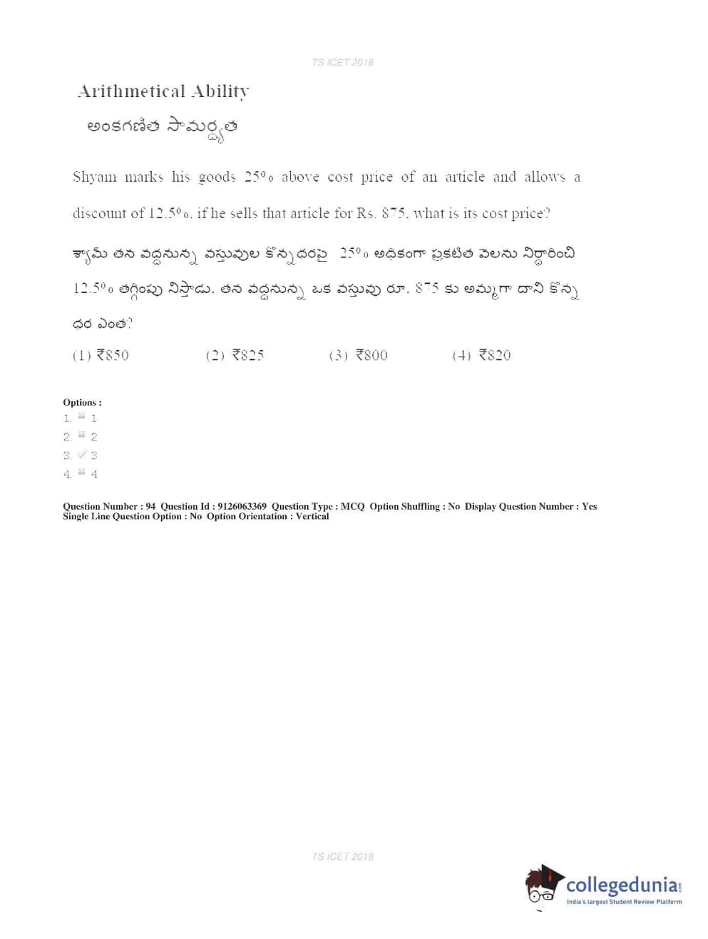 TSICET 2018 Question Paper with Answer Key PDFs in Telugu ,Shift 1