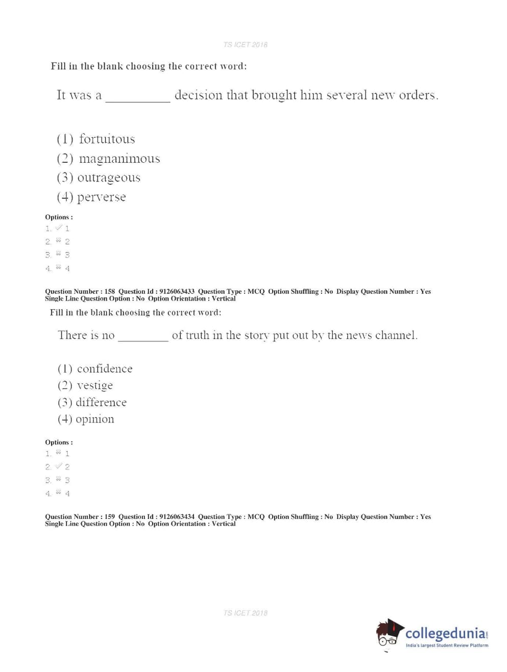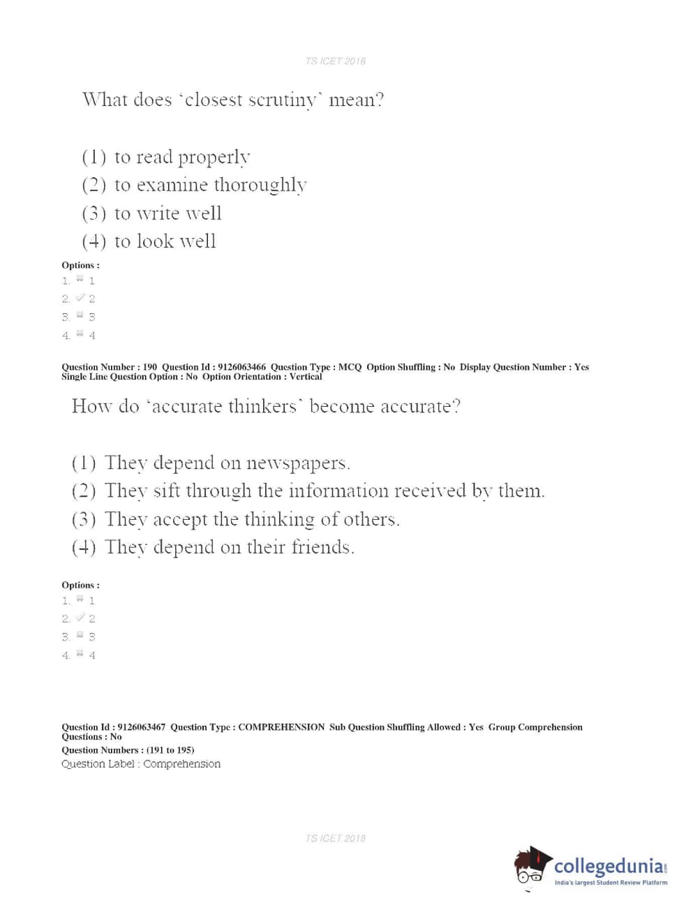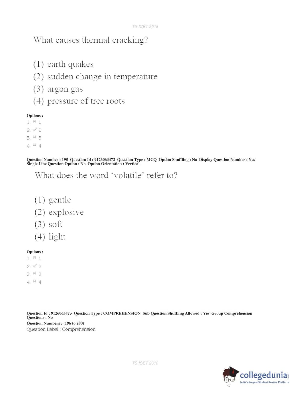 TSICET 2018 Question paper with answer key pdf conducted on May 24, 2018 in Shift 1 is available for download. The exam was successfully organized by Kakatiya University, Warangal. The question paper comprised a total of 200 questions.