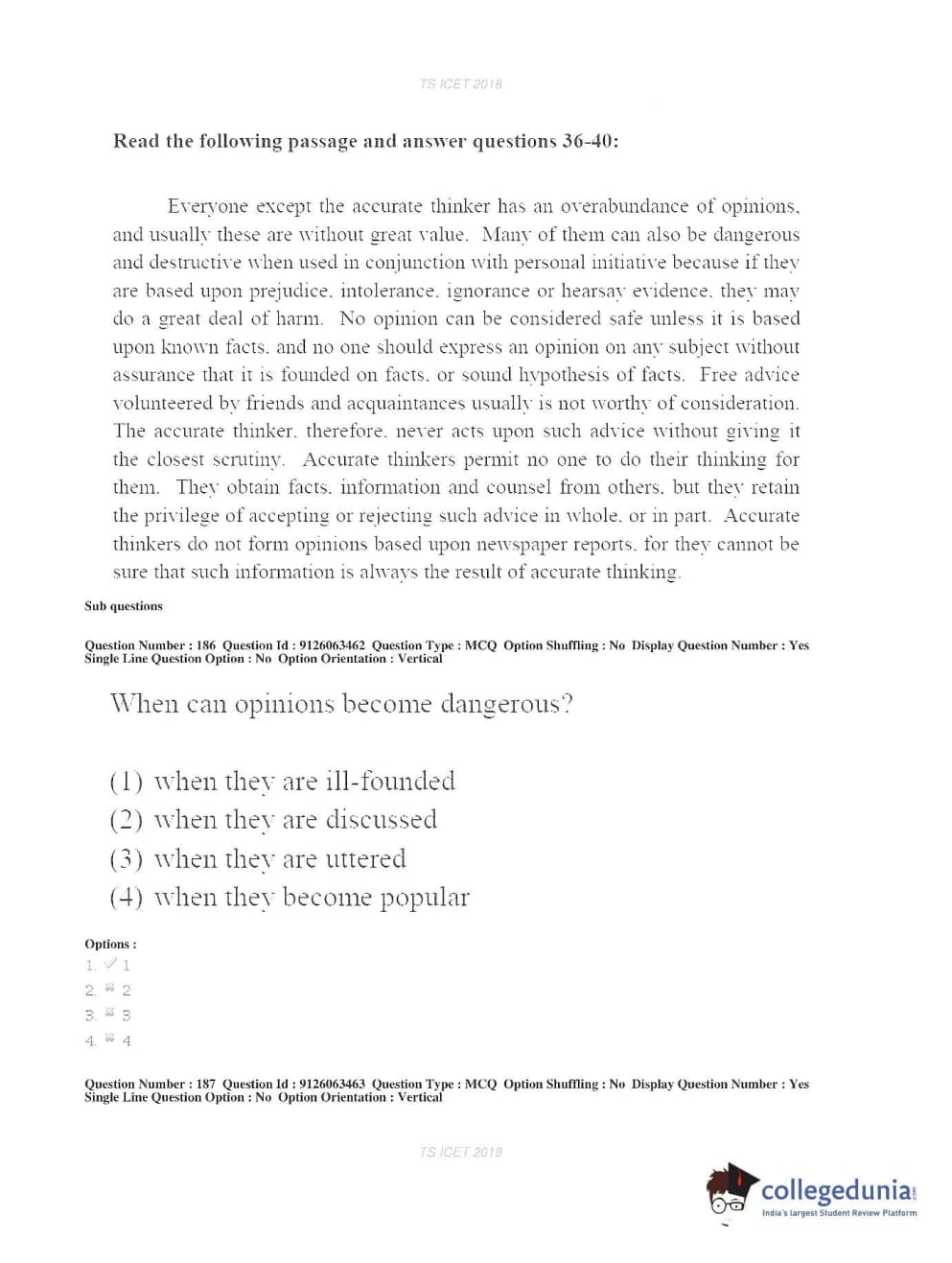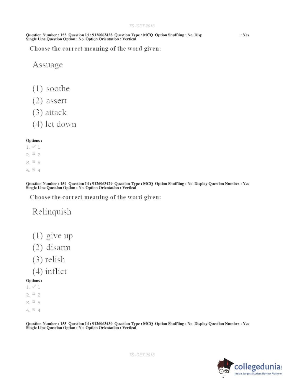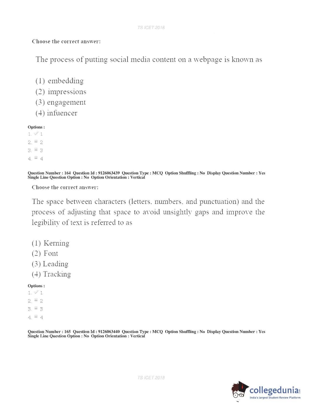TSICET 2018 Question paper with answer key pdf conducted on May 24, 2018 in Shift 1 is available for download. The exam was successfully organized by Kakatiya University, Warangal. The question paper comprised a total of 200 questions.
