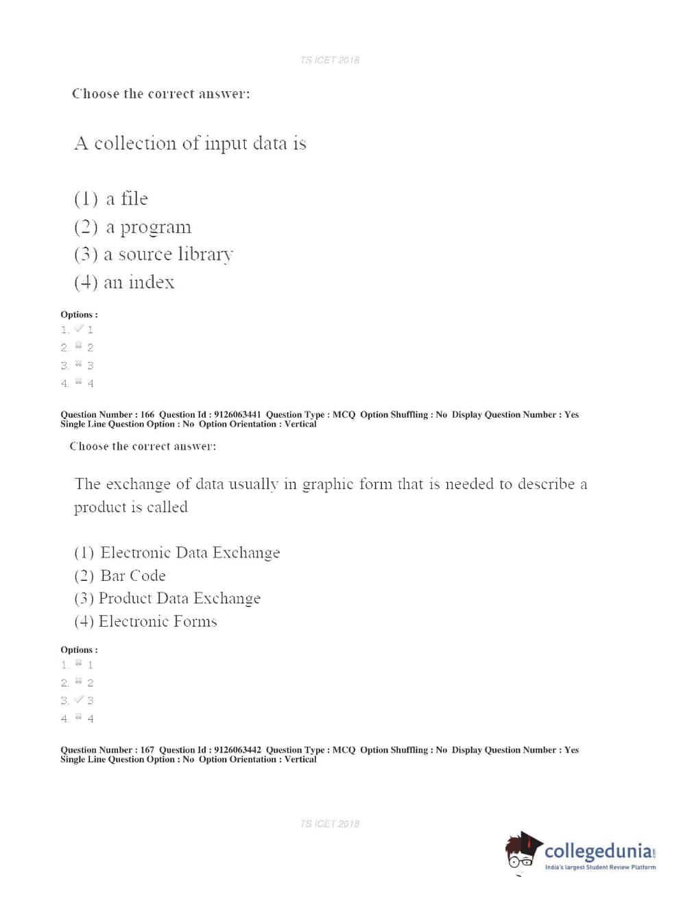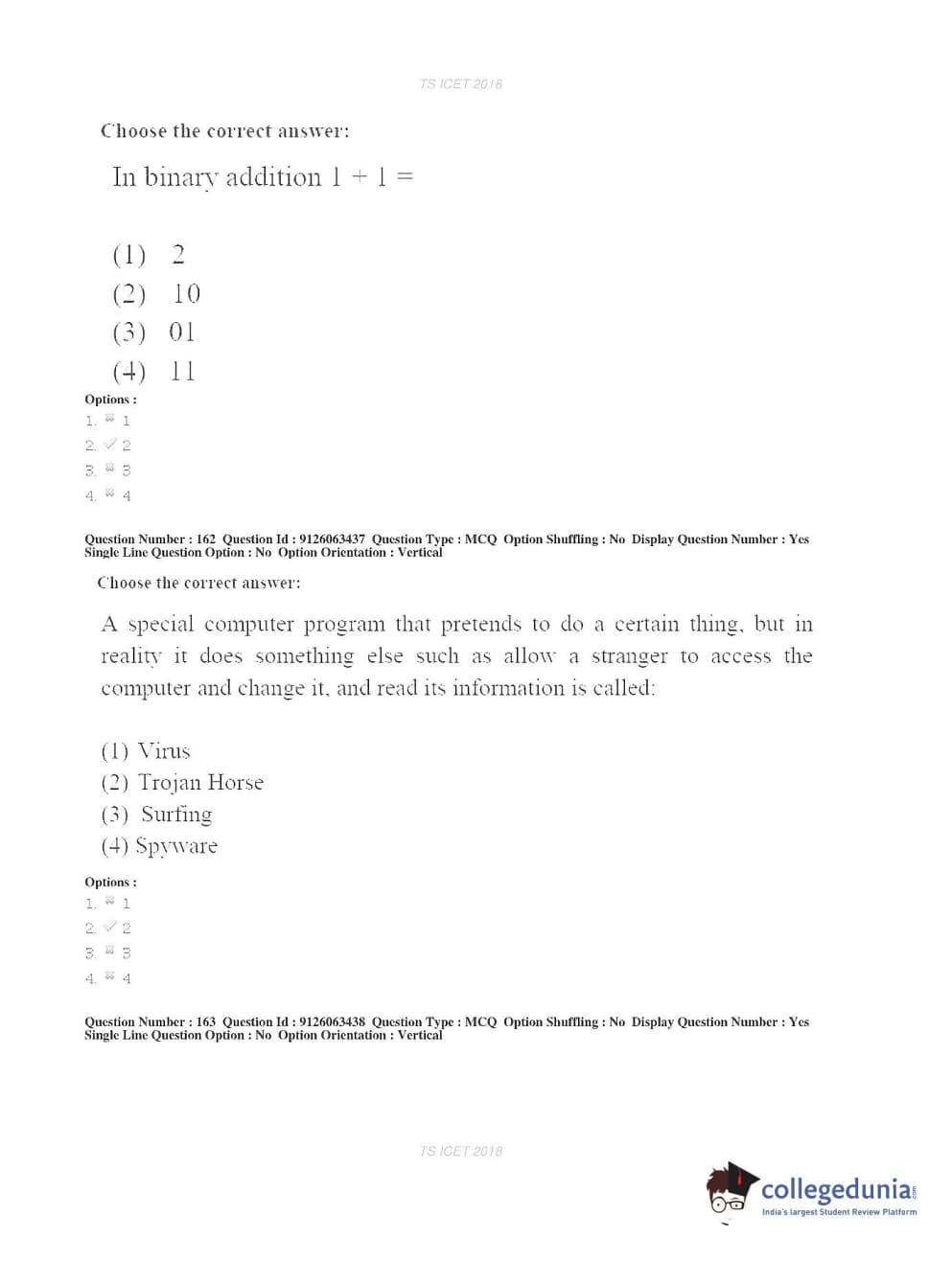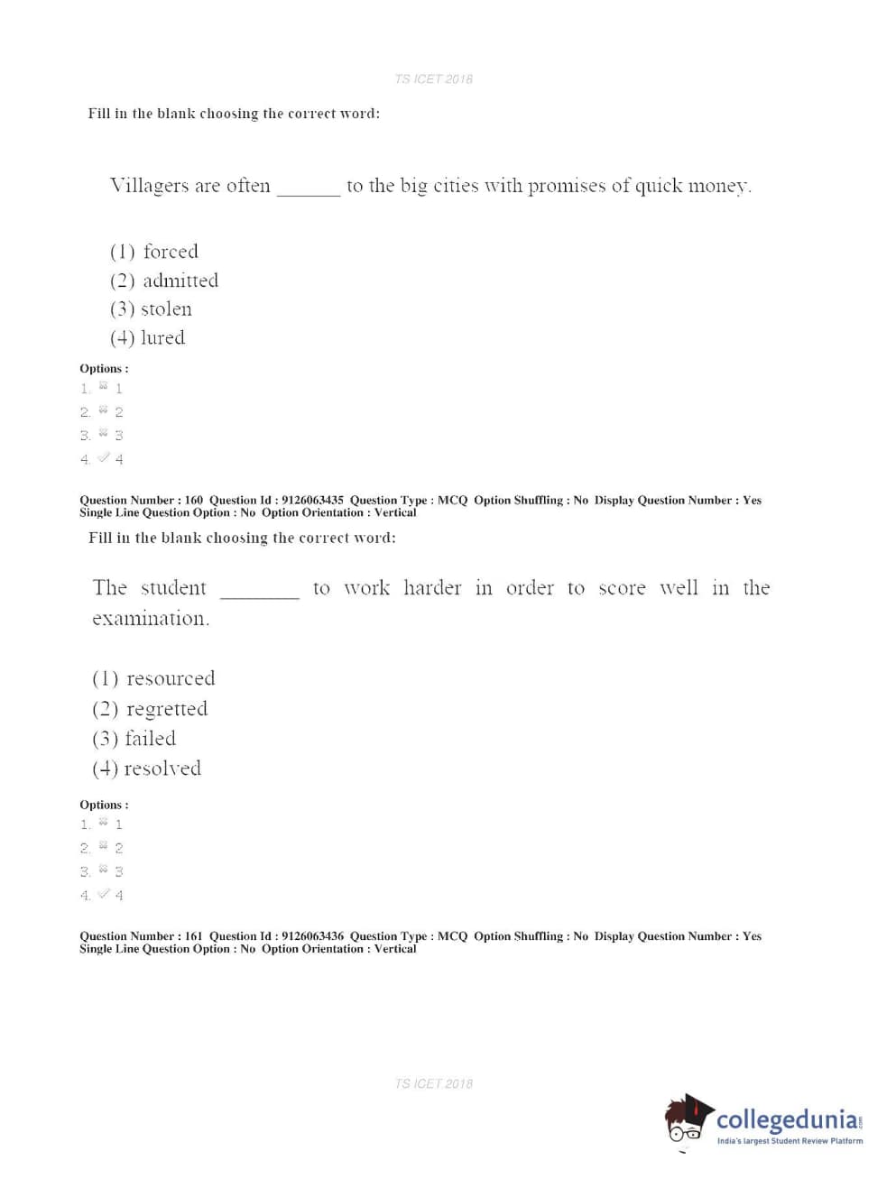 | TSICET 2018 Question Paper PDF | TSICET 2018 Answer Key PDF |