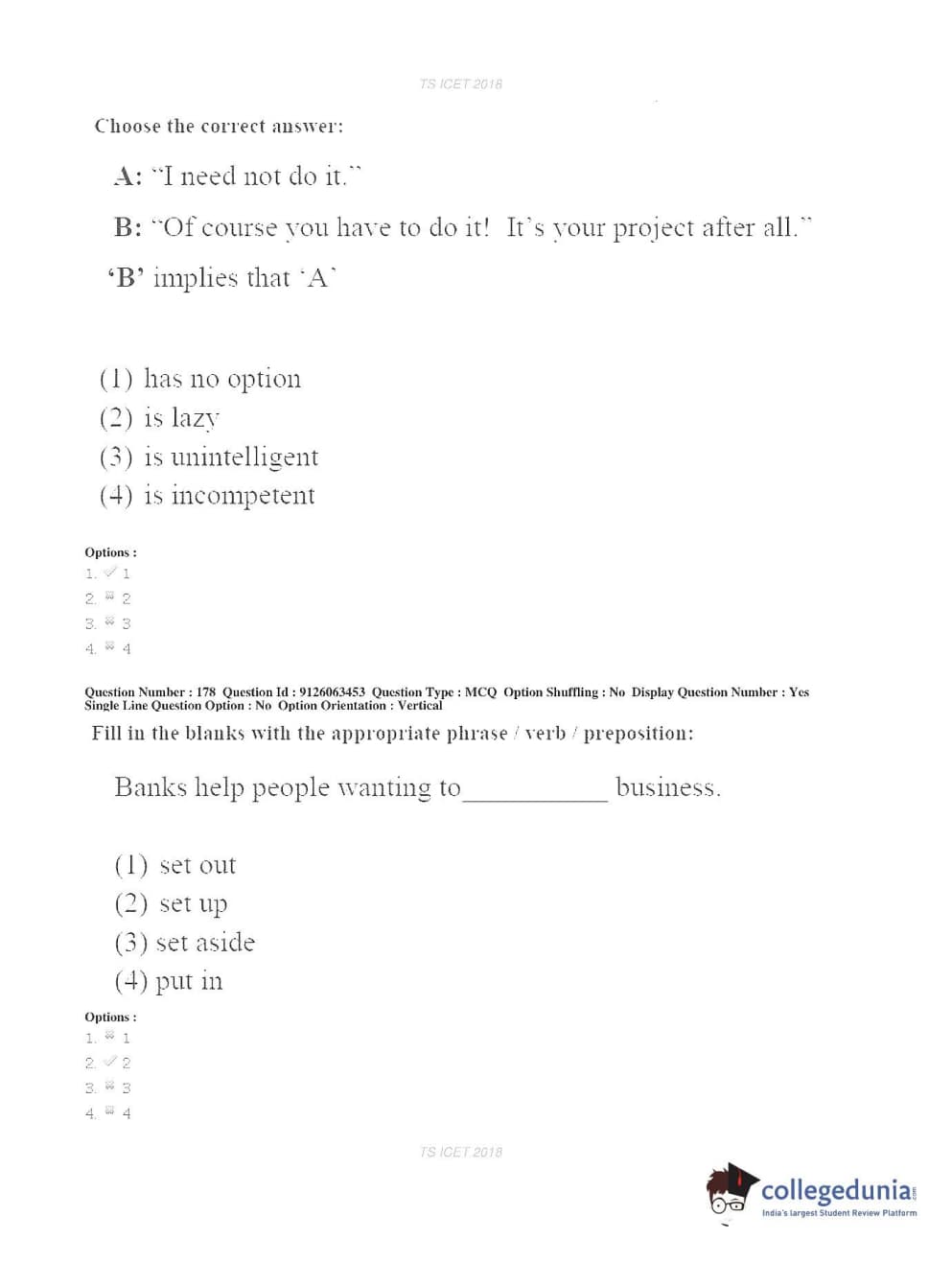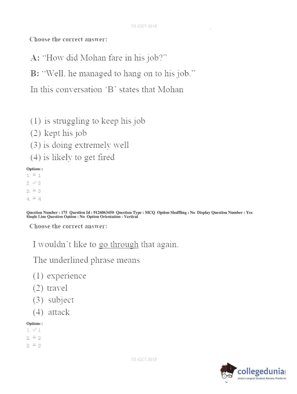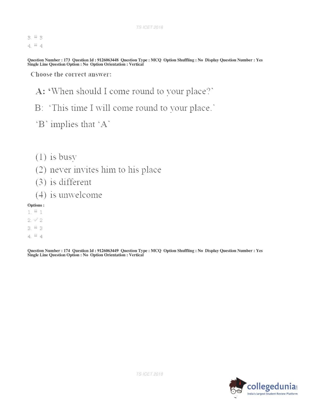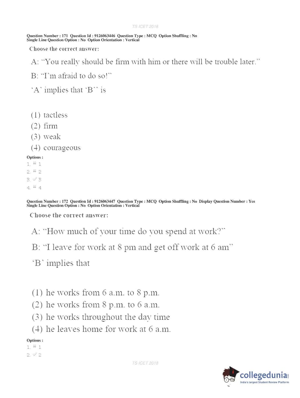 | TSICET 2018 Question Paper PDF | TSICET 2018 Answer Key PDF |