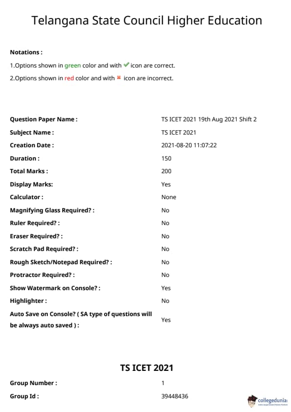 TSICET 2021 Question paper with answer key pdf conducted on August 19, 2021 in Shift 2 is available for download. The exam was successfully organized by Kakatiya University, Warangal. The question paper comprised a total of 200 questions.
