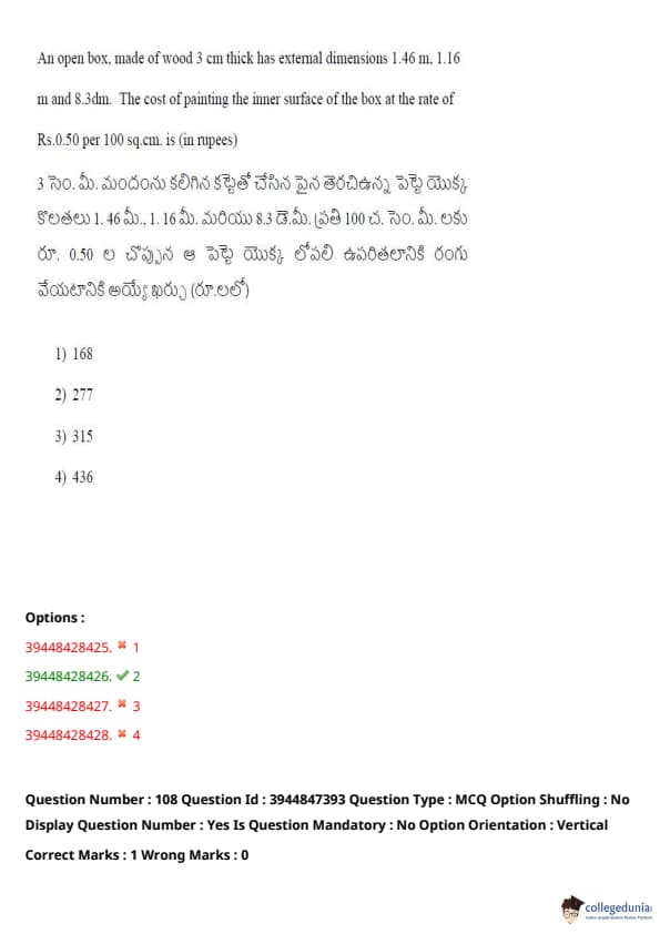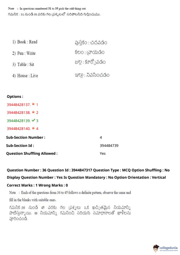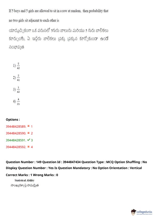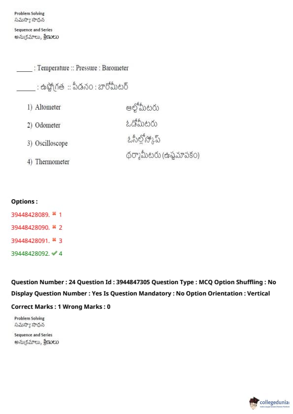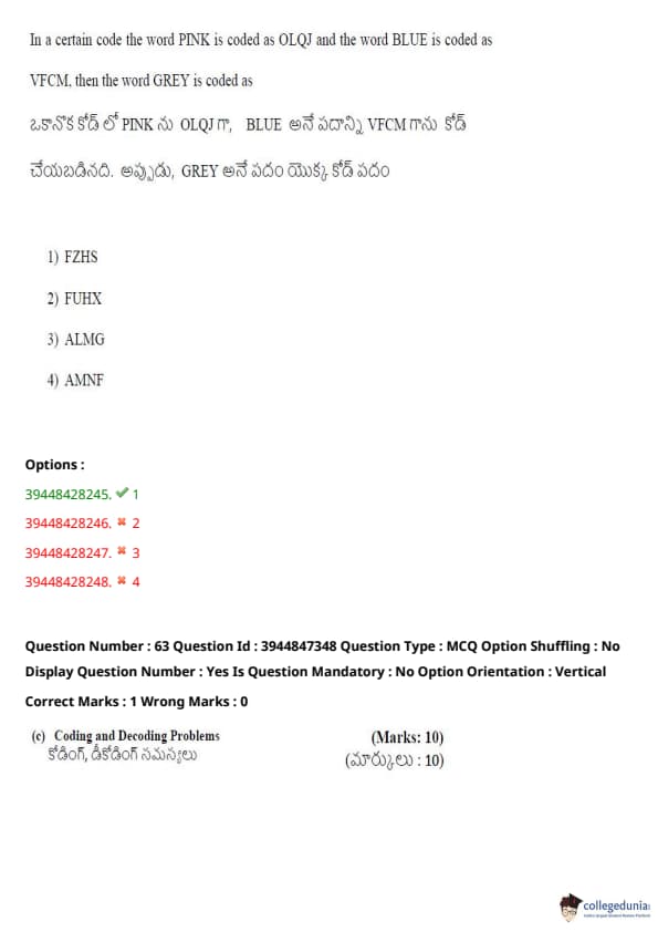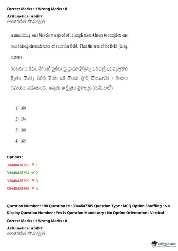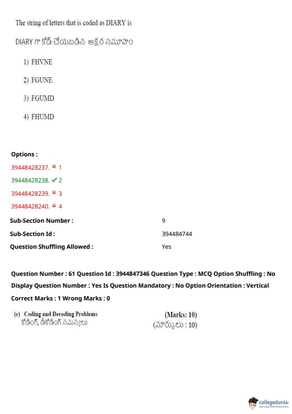 TSICET 2021 Question Paper with Answer Key PDFs Shift 2