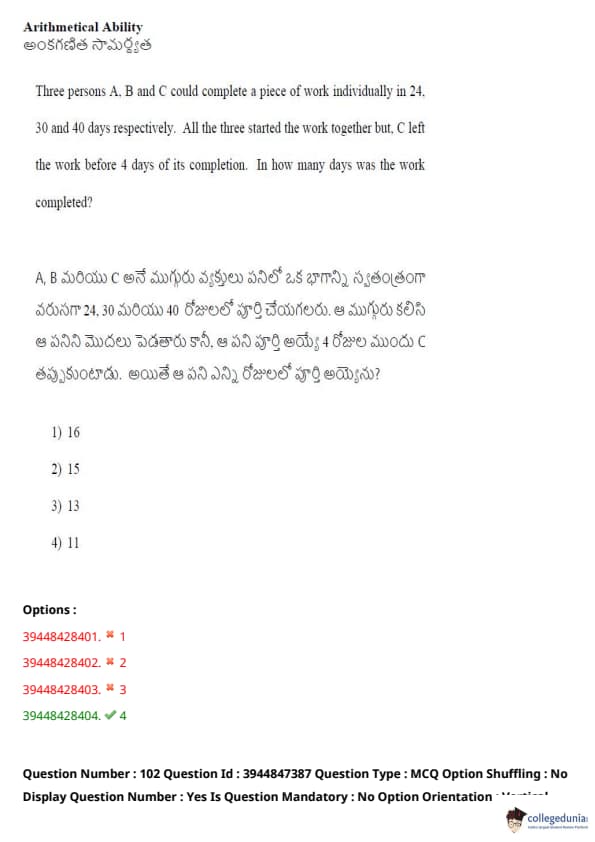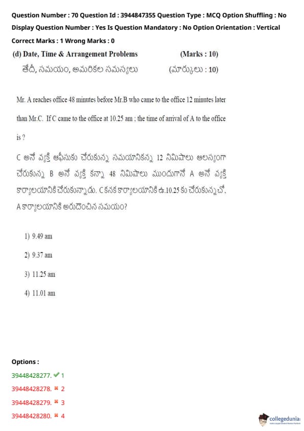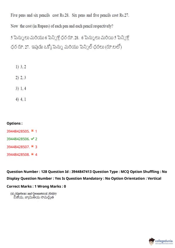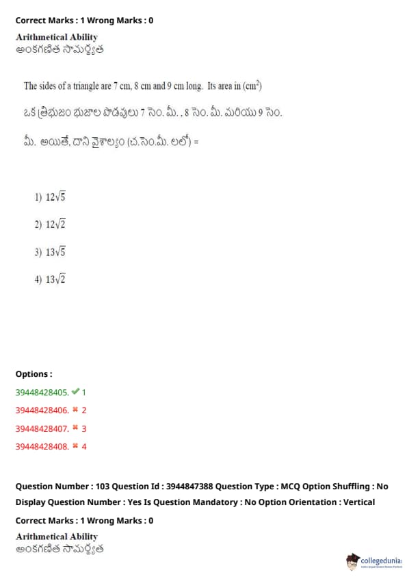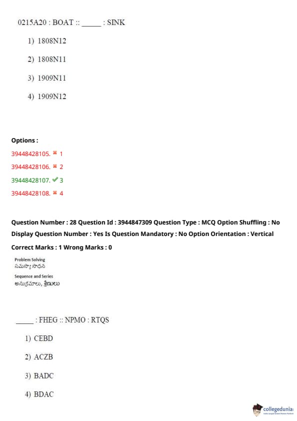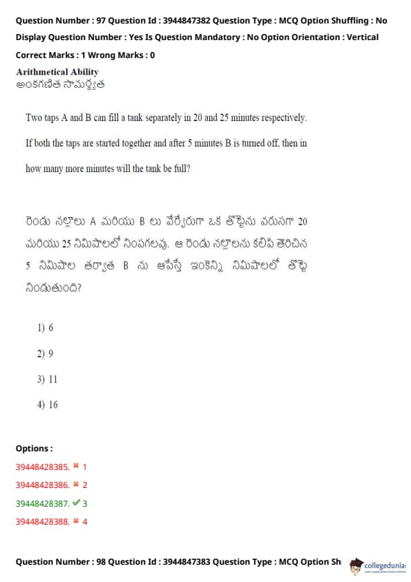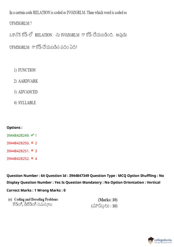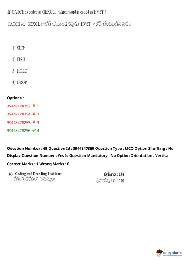TSICET 2021 Question Paper with Answer Key PDFs Shift 2