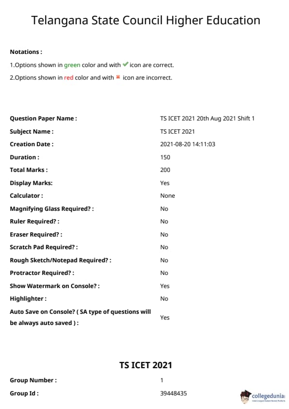 TSICET 2021 Question paper with answer key pdf conducted on August 20, 2021 is available for download. The exam was successfully organized by Kakatiya University, Warangal. The question paper comprised a total of 200 questions.
