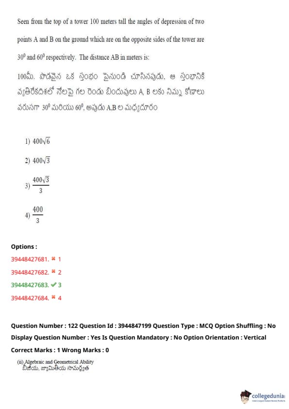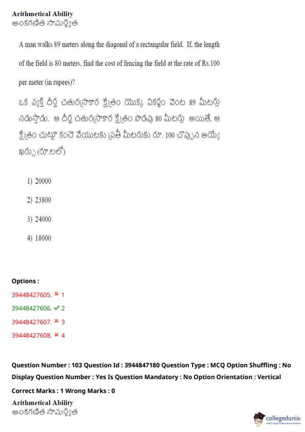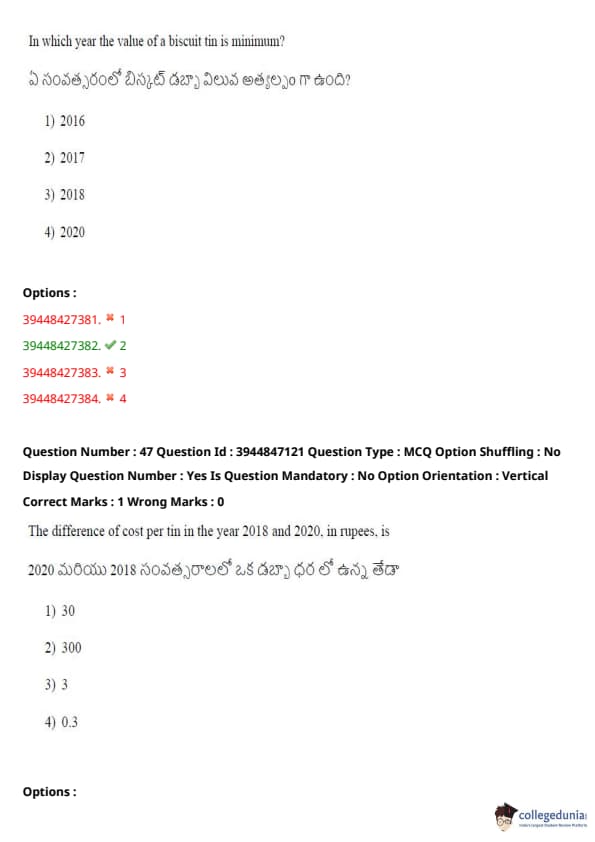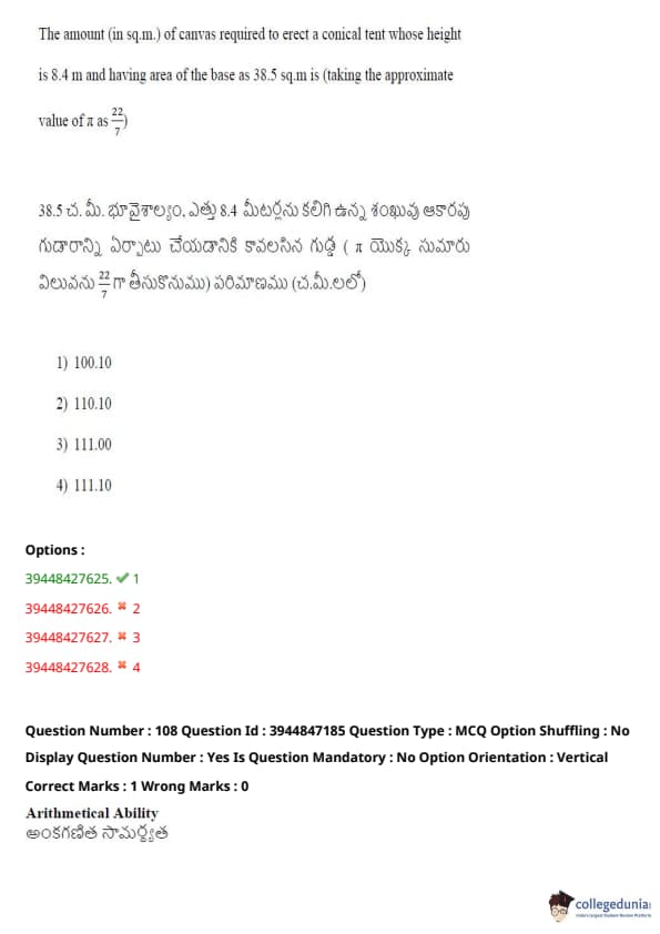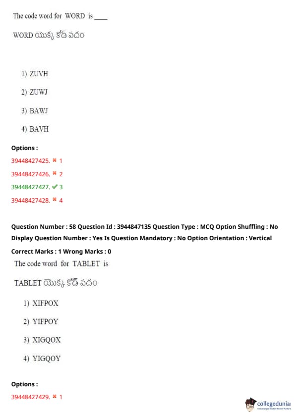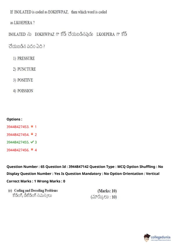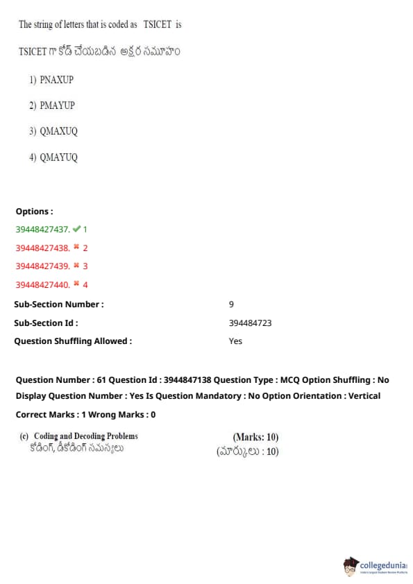 TSICET 2021 Question Paper with Answer Key PDFs
