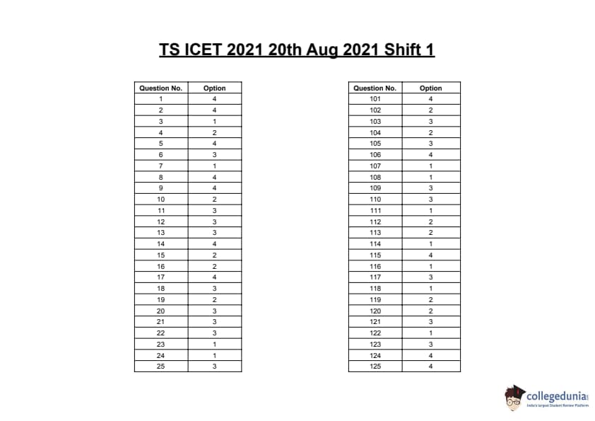 | TSICET 2021 Question Paper PDF | TSICET 2021 Answer Key PDF |