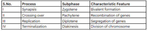 On the other hand, DNA replication occurs during the S-phase before meiosis, not during the meiotic subphases listed. Similarly, crossing over is a characteristic event of the pachytene stage, not the stages mentioned in the incorrect options.