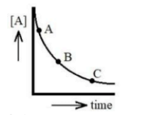 First order reaction (A→P) with slopes mA, mB, mC at points A, B, C. Identify correct order.