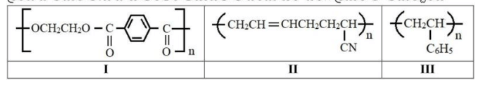 Polymers with phenyl groups have strongest Van der Waals forces due to bulky aromatic rings. Ester linkages allow moderate hydrogen bonding. C=C polymer has weakest intermolecular forces. Hence II \(<\) I \(<\) III.