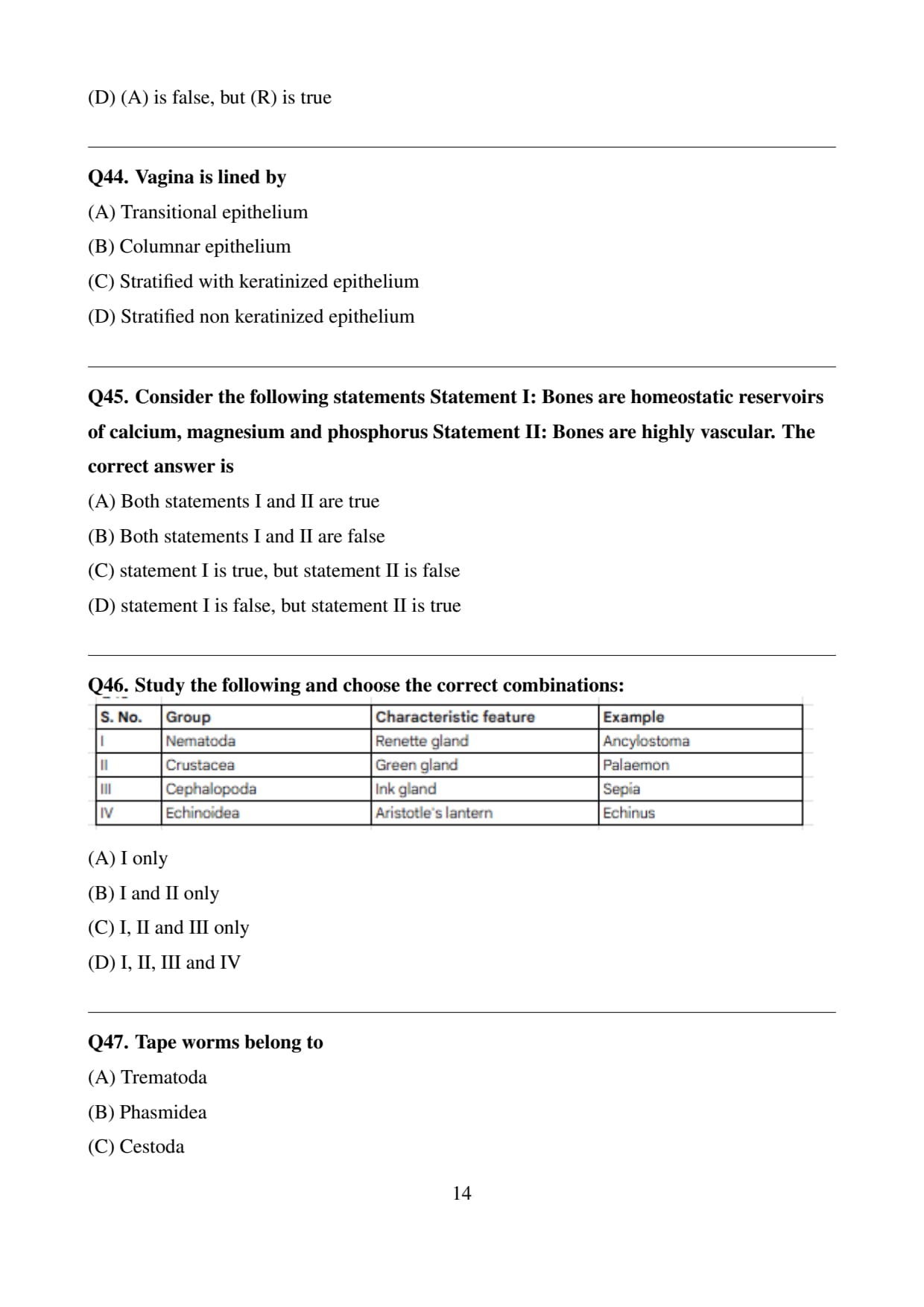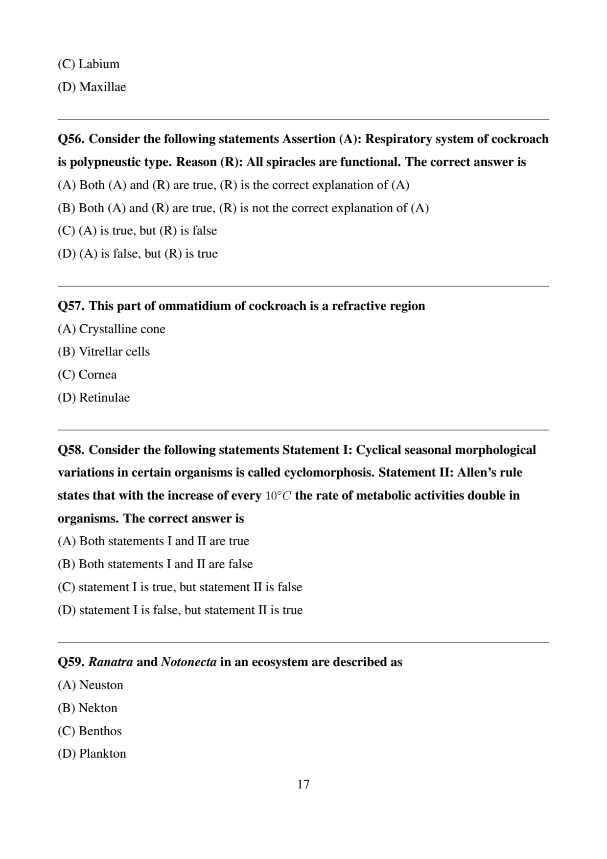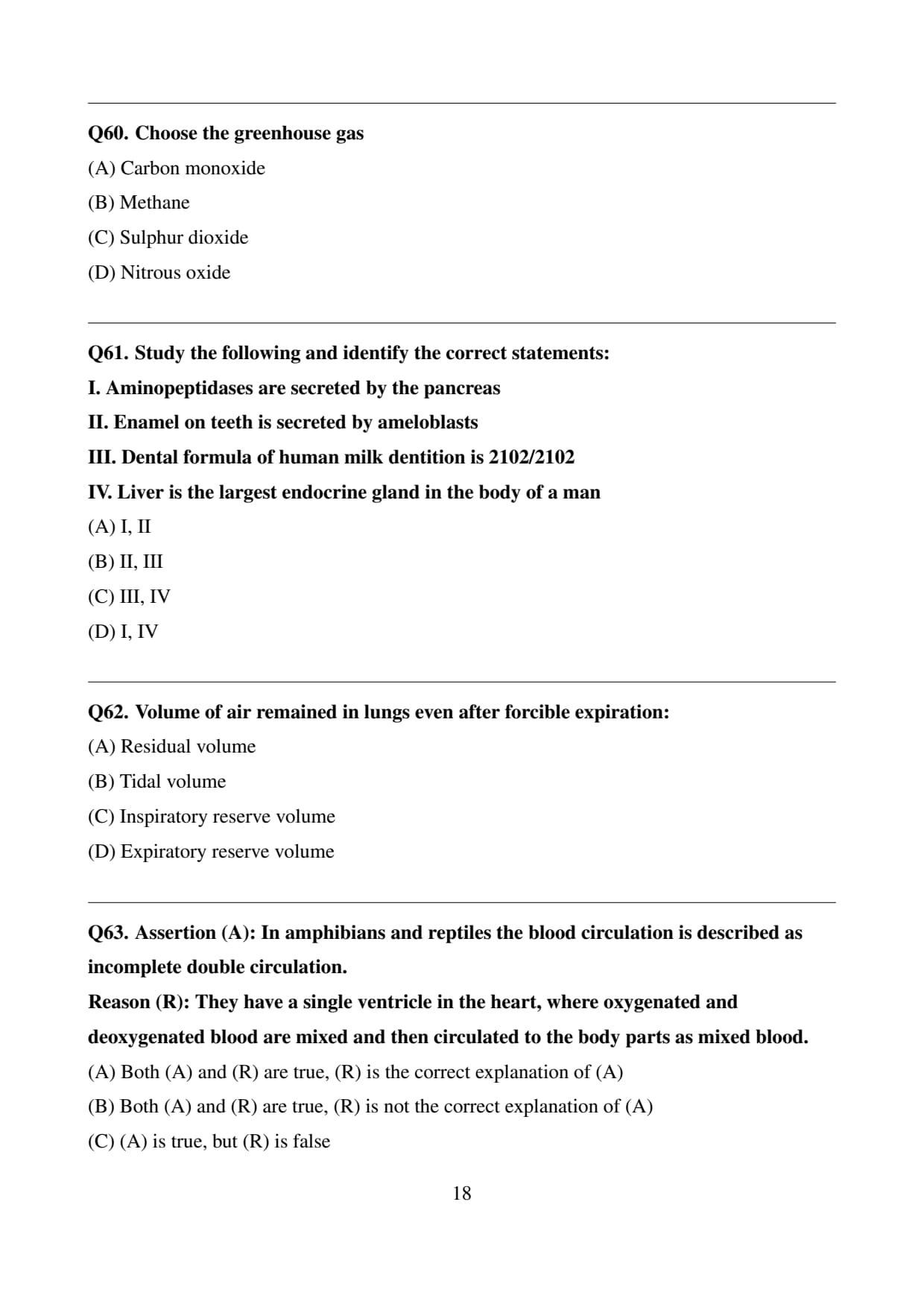 | Zoology | Moderate | Human Physiology, Reproduction, Genetics, Structural Organisation in Animals |