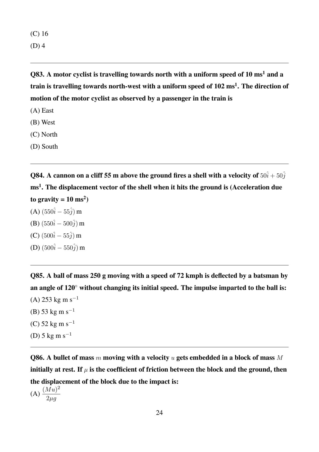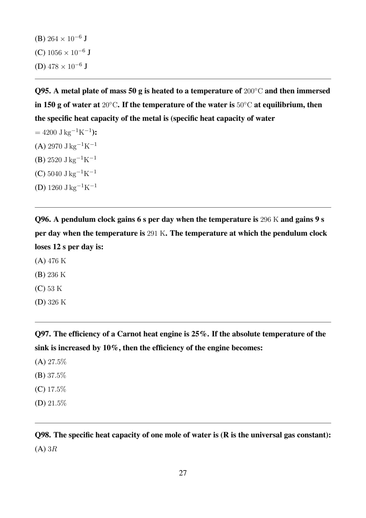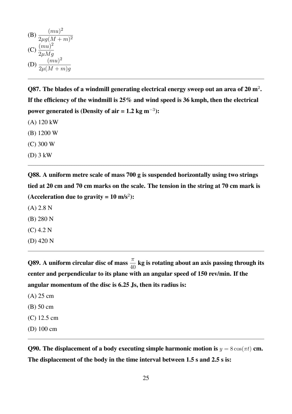 | Physics | Moderate to Tough | Thermodynamics, Work-Energy-Power, Laws of Motion, Oscillations |