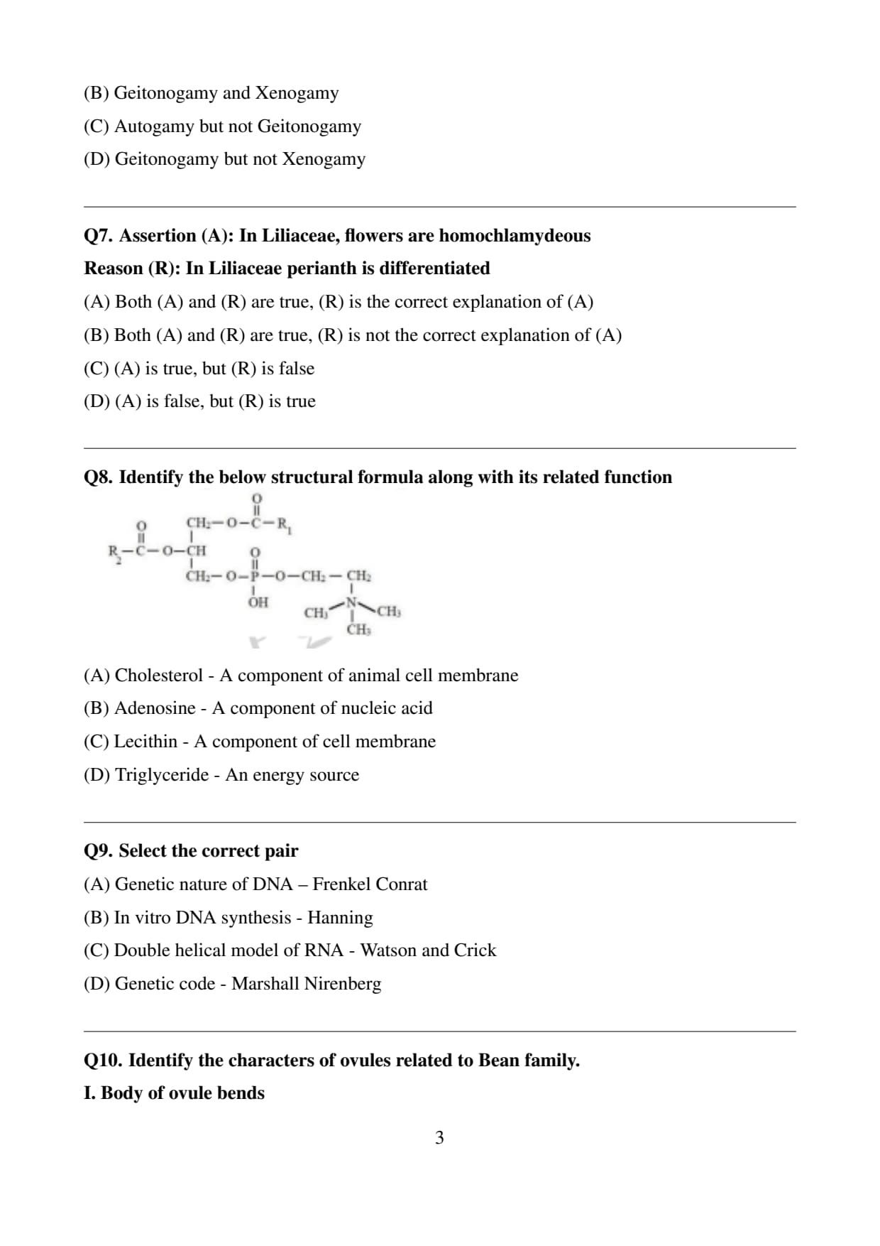 3. However, the structural formula most classically shown in such MCQs for "identify the below structural formula" and "component of cell membrane" is usually a phospholipid (lecithin). Therefore the best choice matching a typical membrane phospholipid structural formula is lecithin.