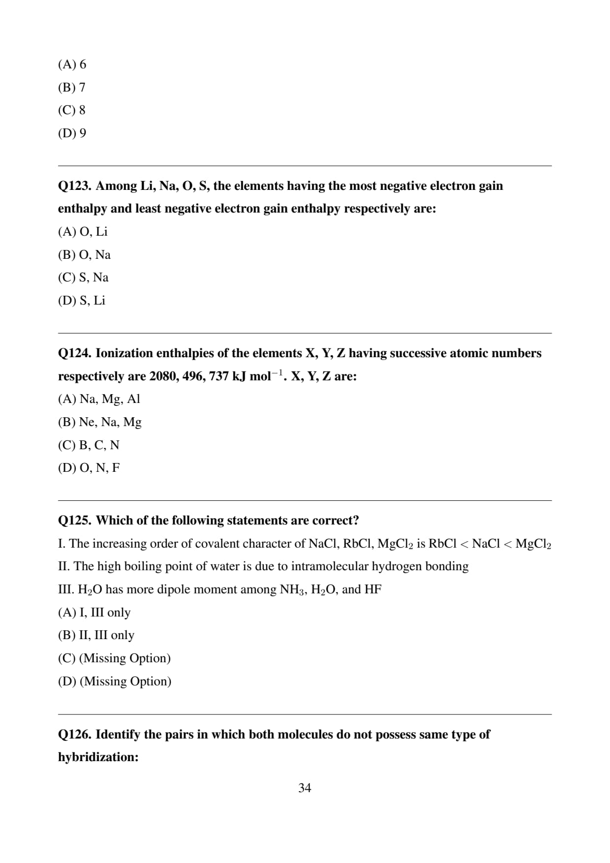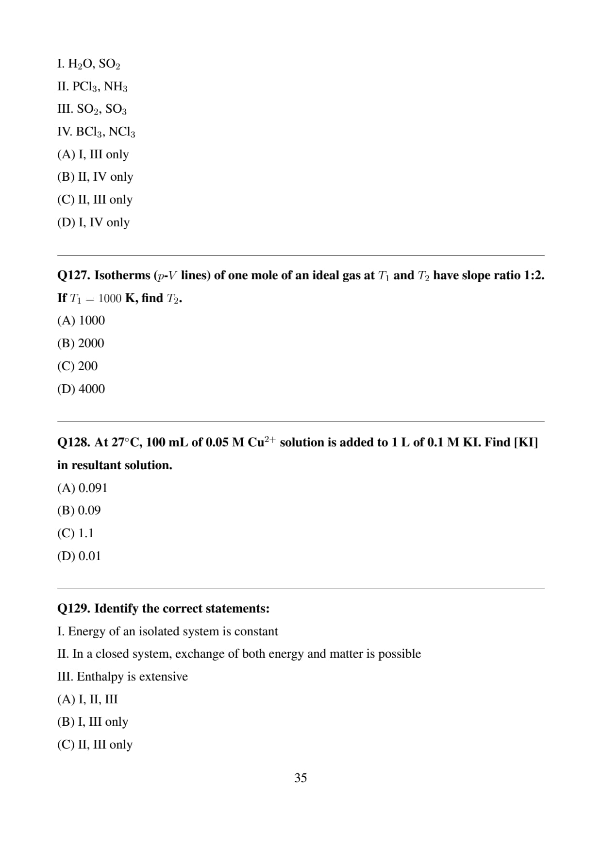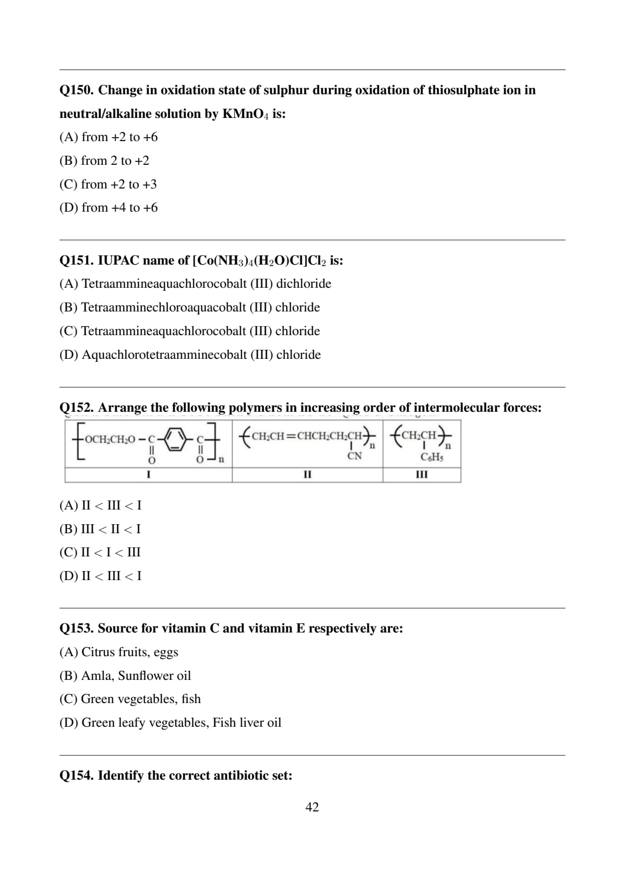 | Chemistry | Easy to Moderate | Atomic Structure, Chemical Bonding, Thermodynamics, Organic Chemistry (Hydrocarbons, Alcohols, Phenols) |